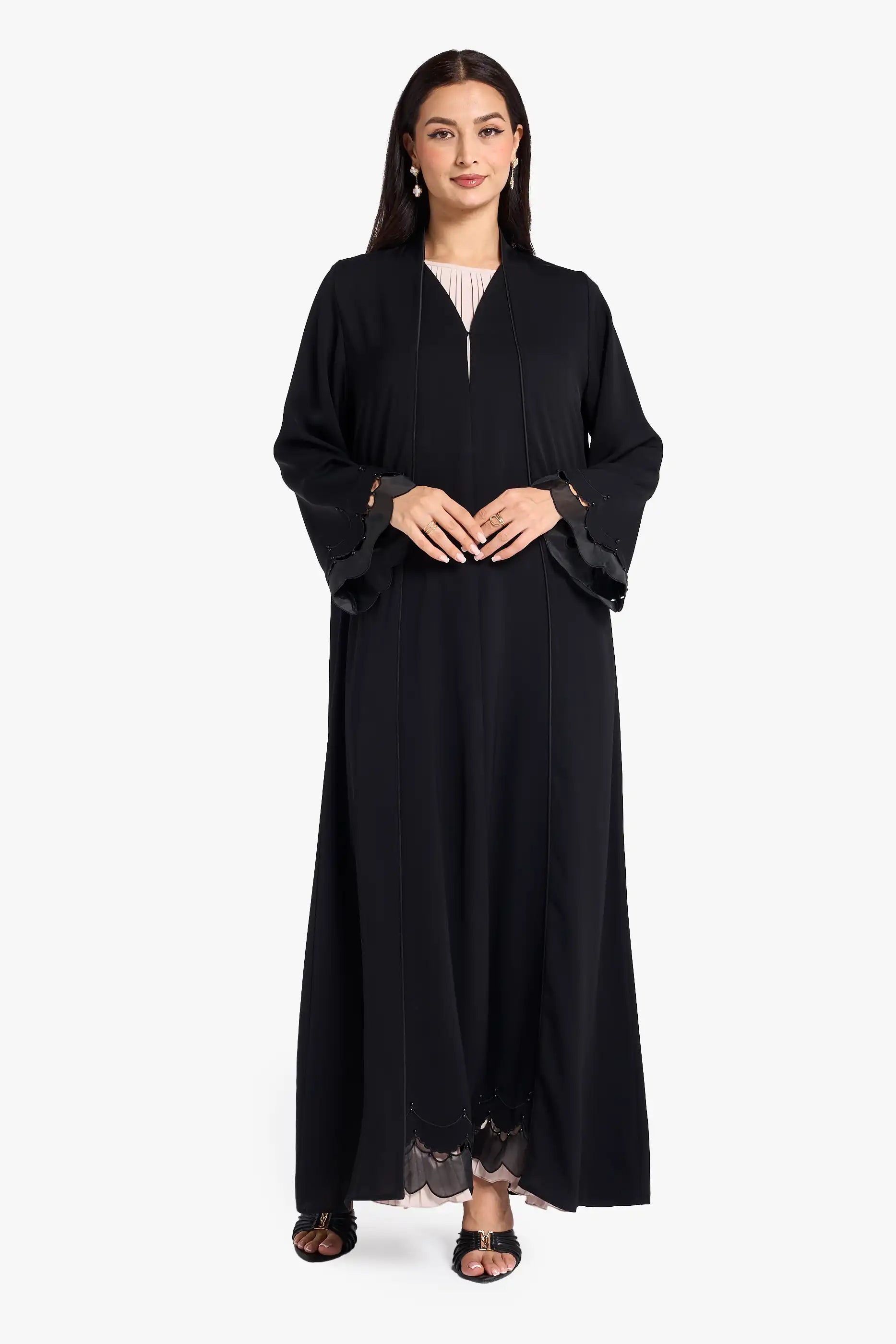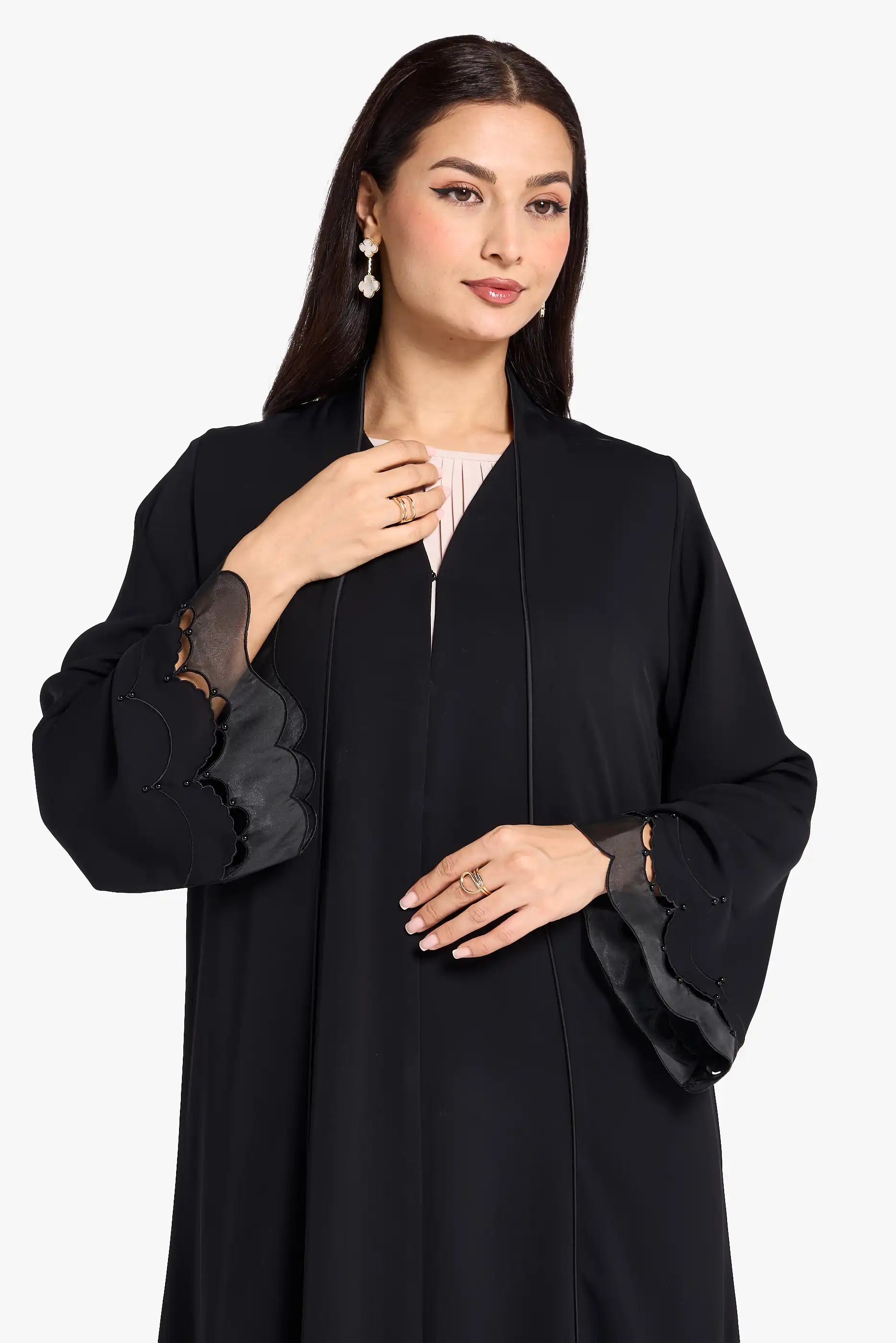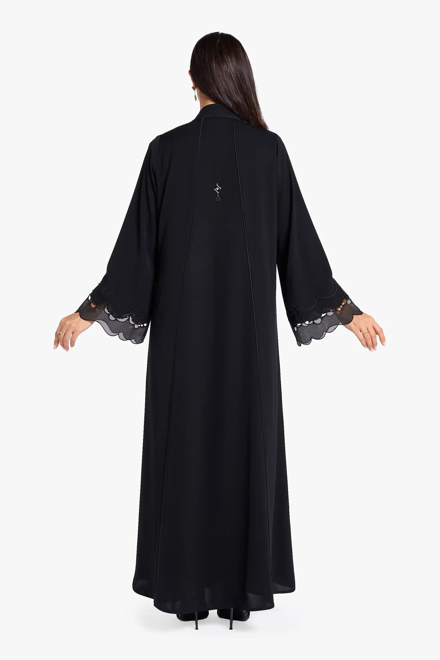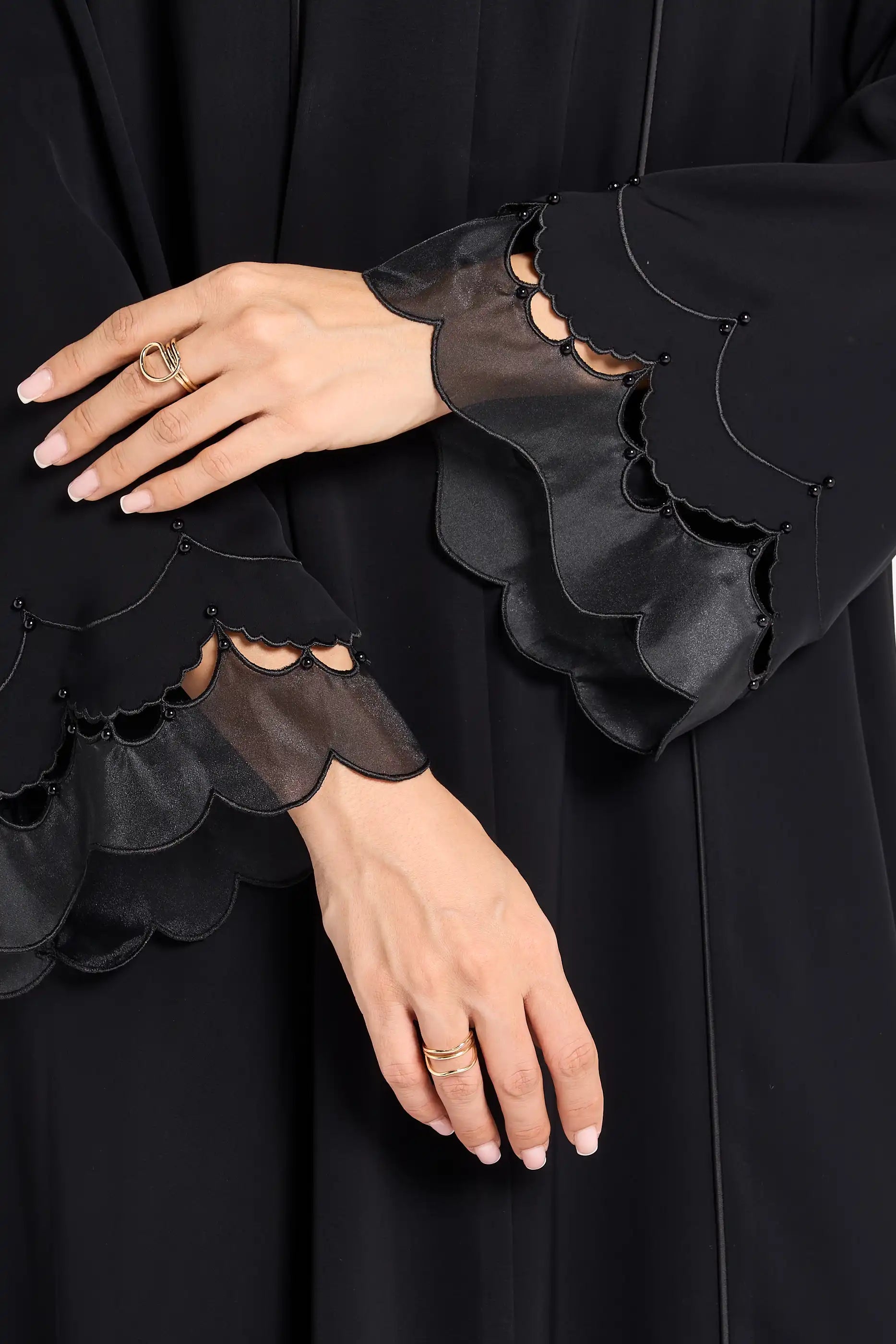 عباية لوزان مصنوعة من قماش النيدا والأورجانزا مع طبقات من الأورجانزا المزخرفة