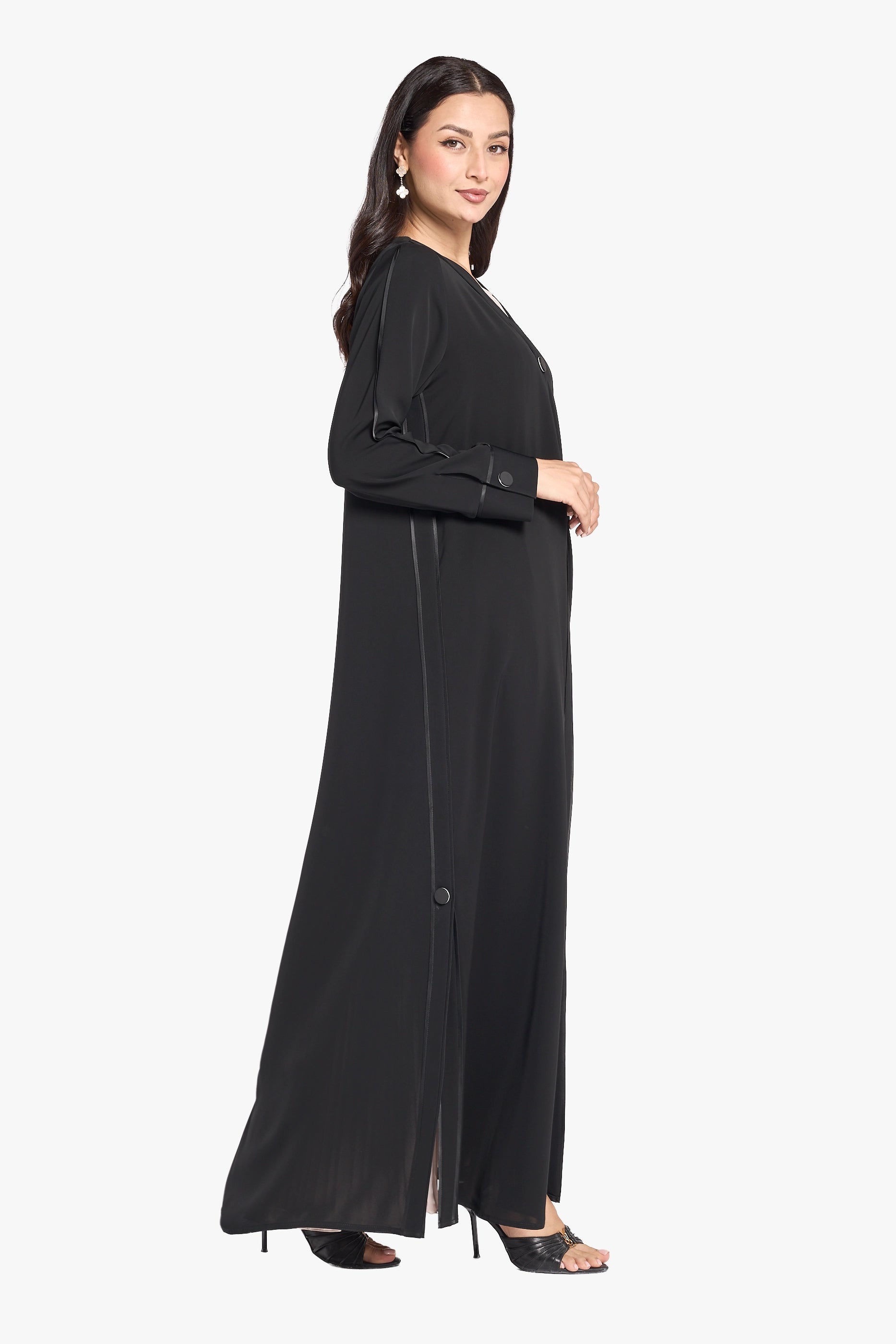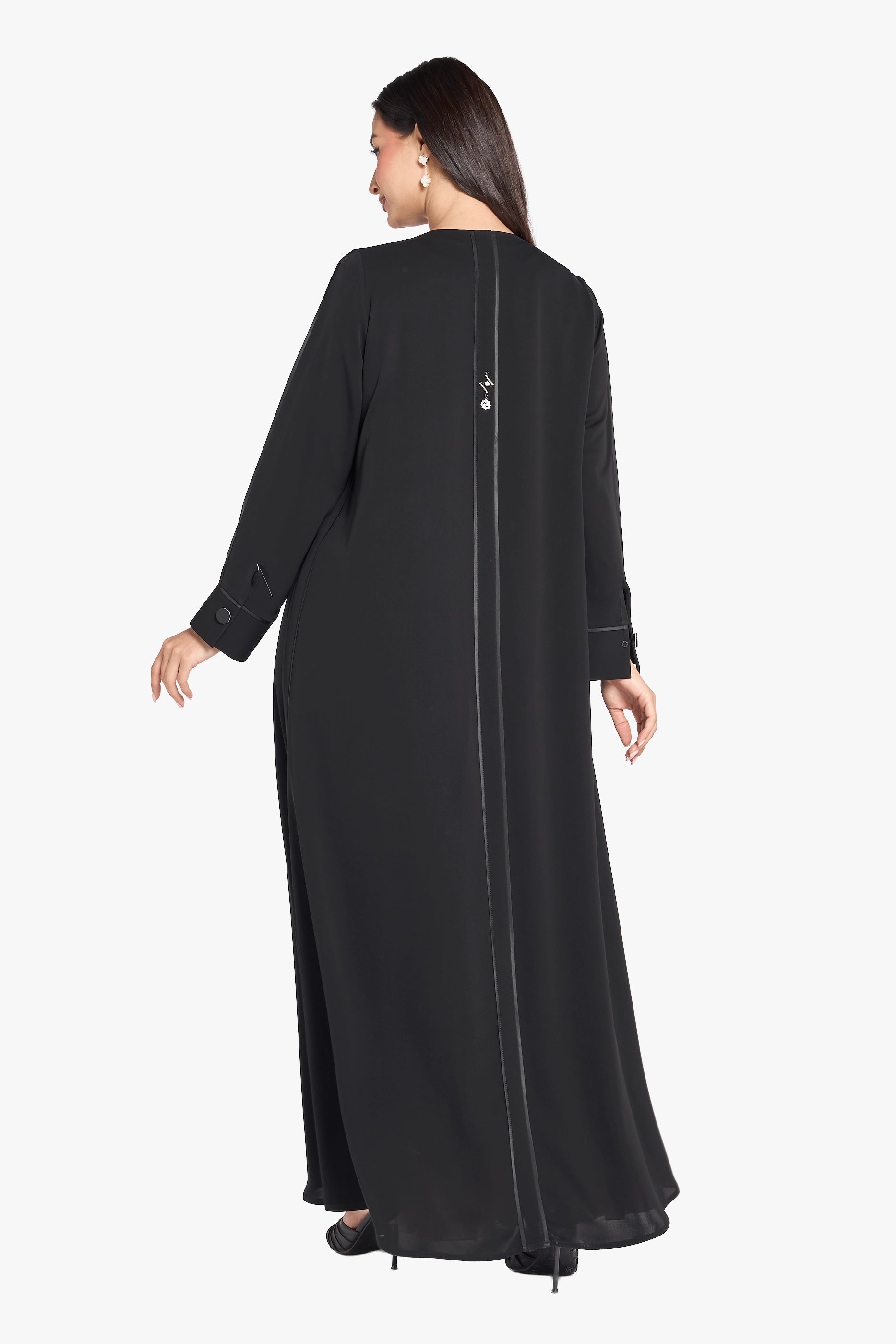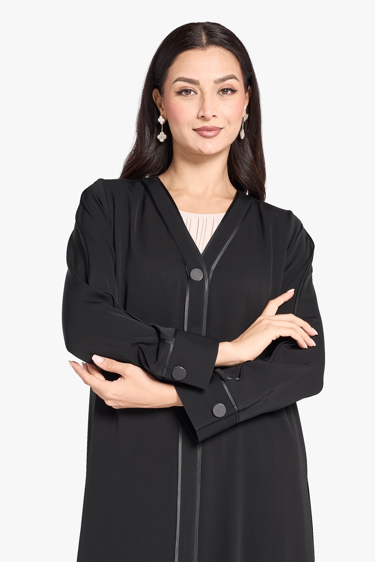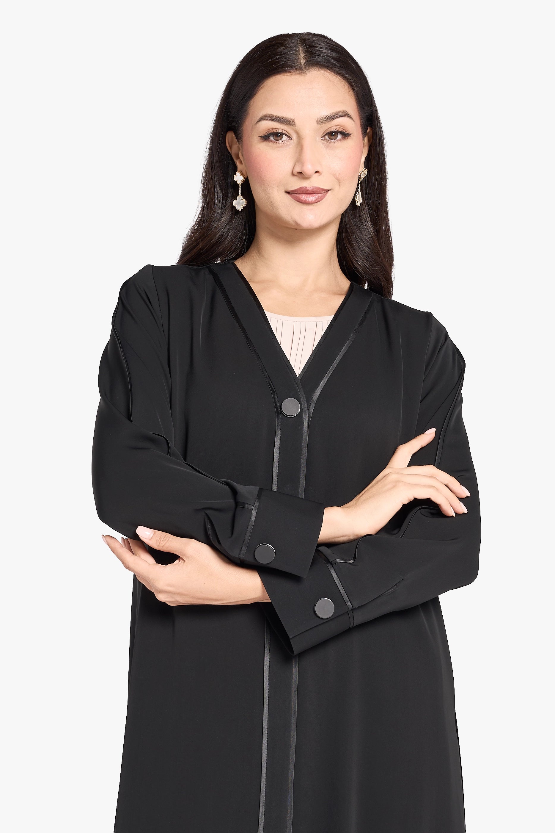 عباية لوزان – قماش نيدا مع تفاصيل حواف من الساتان