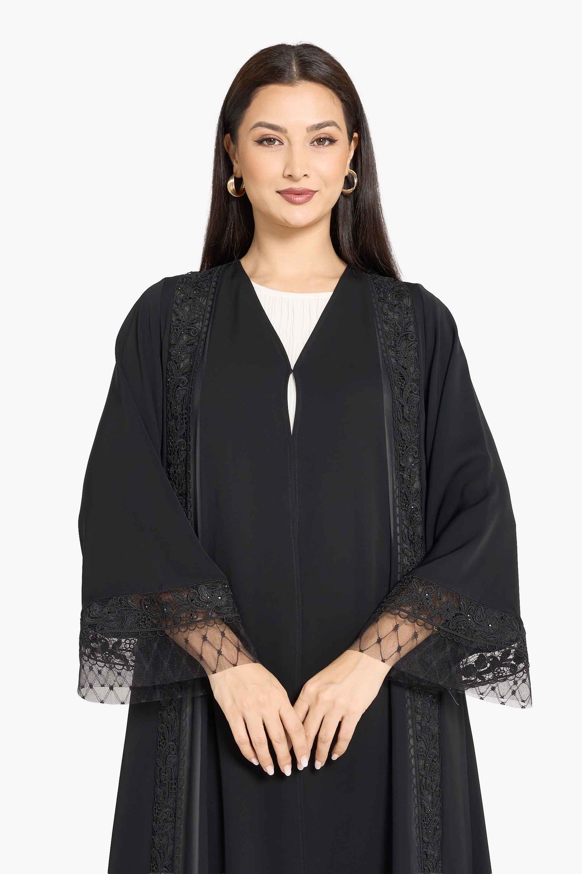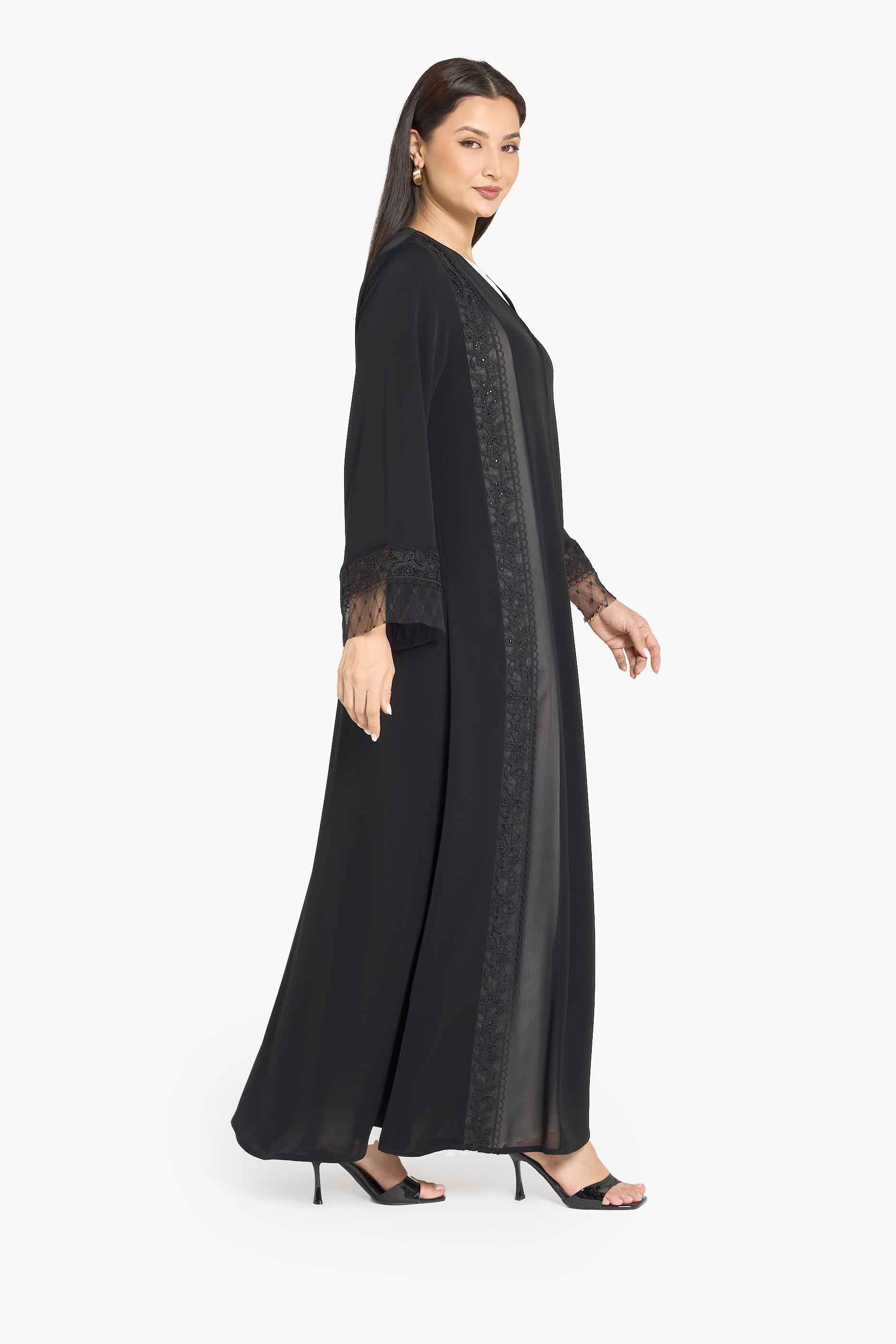 عباية لوزان ذات لوحة دانتيل مطرزة