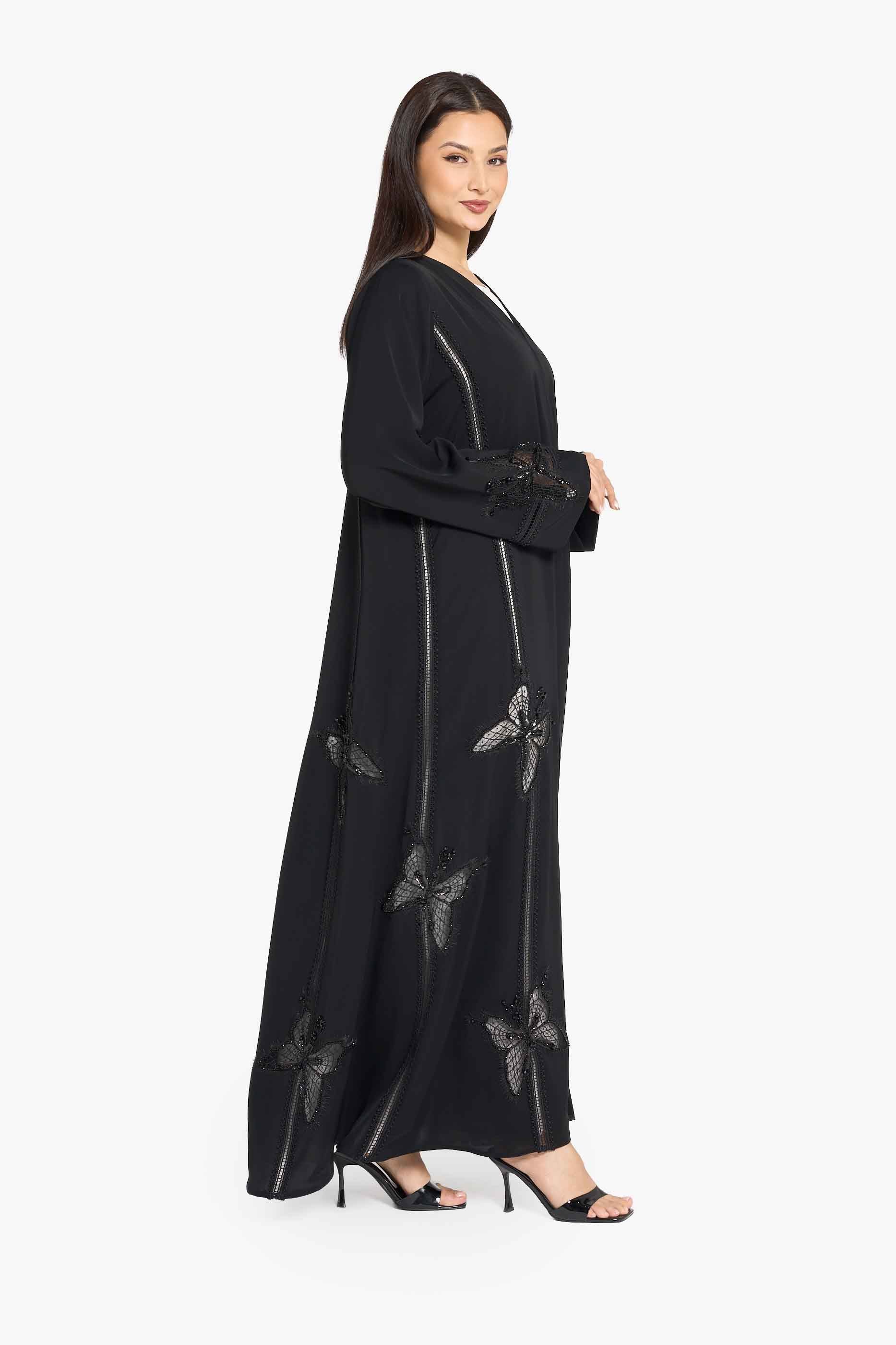 عباية لوزان المزينة بلوحة من الدانتيل الزهري