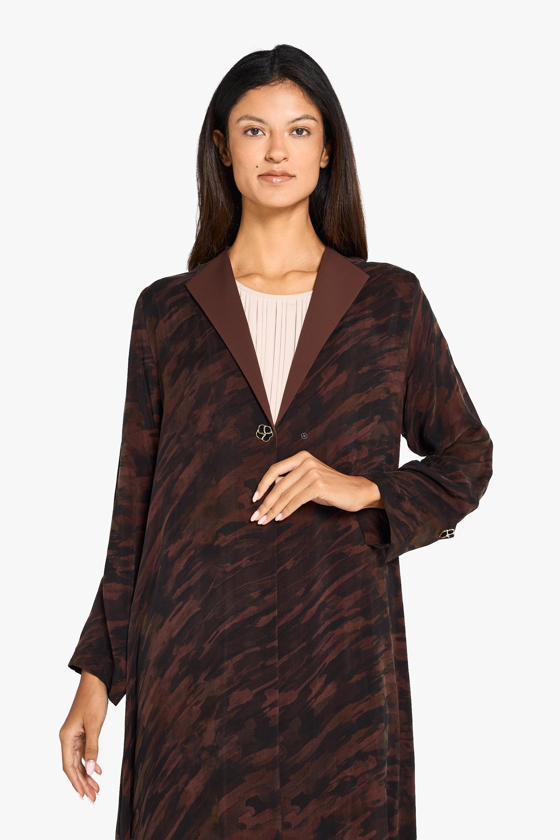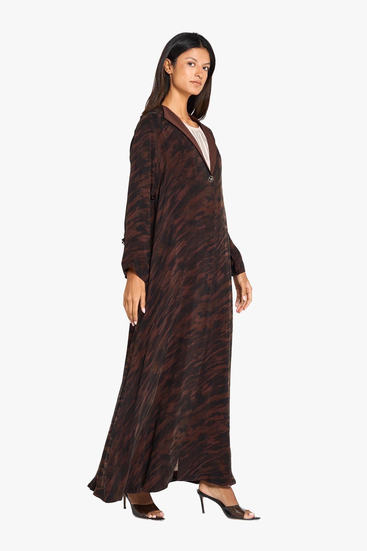 اكتشفي أناقةً خالدةً مع عباية لوزان هذه، حيث تلتقي الطباعة المبتكرة بتقنية تاي داي بحرفيةٍ فاخرة. قماش الكوبرو الناعم ينساب بسلاسة، بينما يُضفي النيدا الملون عمقًا هيكليًا وجاذبيةً بصرية. ياقة شال أنيقة تُحيط بالوجه برشاقة، بينما تُضفي أزرارها المعدنية المميزة لمسةً من الأناقة والرقيّ. مثالية لمن تبحث عن عباية عصرية تُوازن بين الجماليات العصرية والاحتشام التقليدي. قطعة استثمارية تُناسب جميع المناسبات اليومية والمناسبات الخاصة بسلاسة.