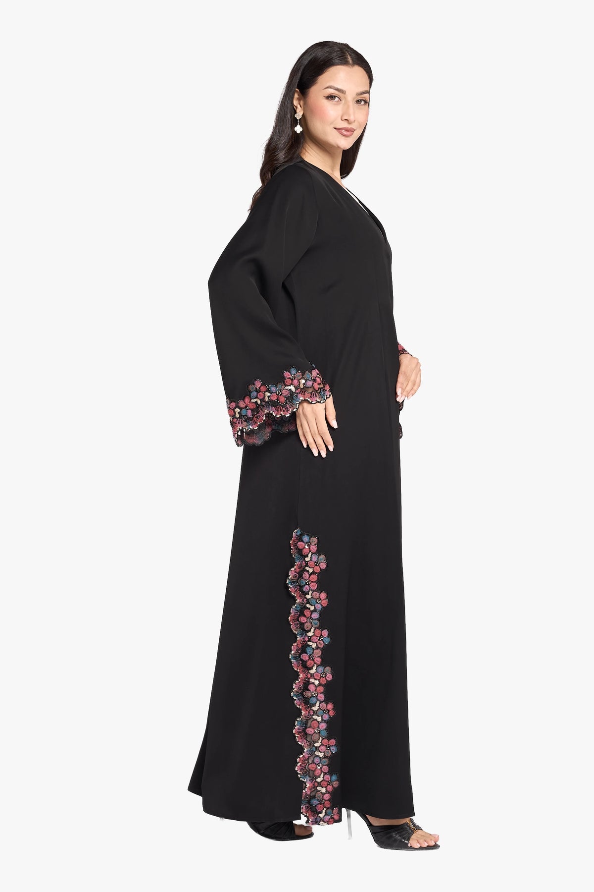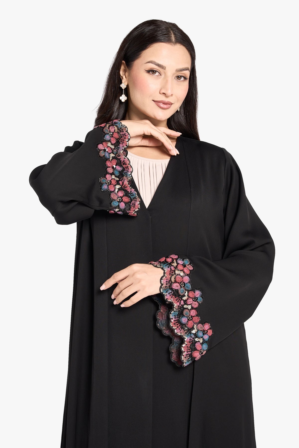 عباية أوشا OS-387 مصنوعة من قماش نيدا فاخر، مما يضمن ارتداءً ناعمًا وجيد التهوية، مثاليًا لراحة طوال اليوم. مصممة باحترافية، مزينة بتفاصيل دانتيل ملونة رقيقة على الجانبين والأكمام، مما يضفي عليها أناقة راقية دون المساس بالاحتشام. تجمع هذه العباءة بين التقاليد والأناقة الرقيقة، وهي مثالية لكل من تبحث عن لمسة من الفخامة غير المتكلف.