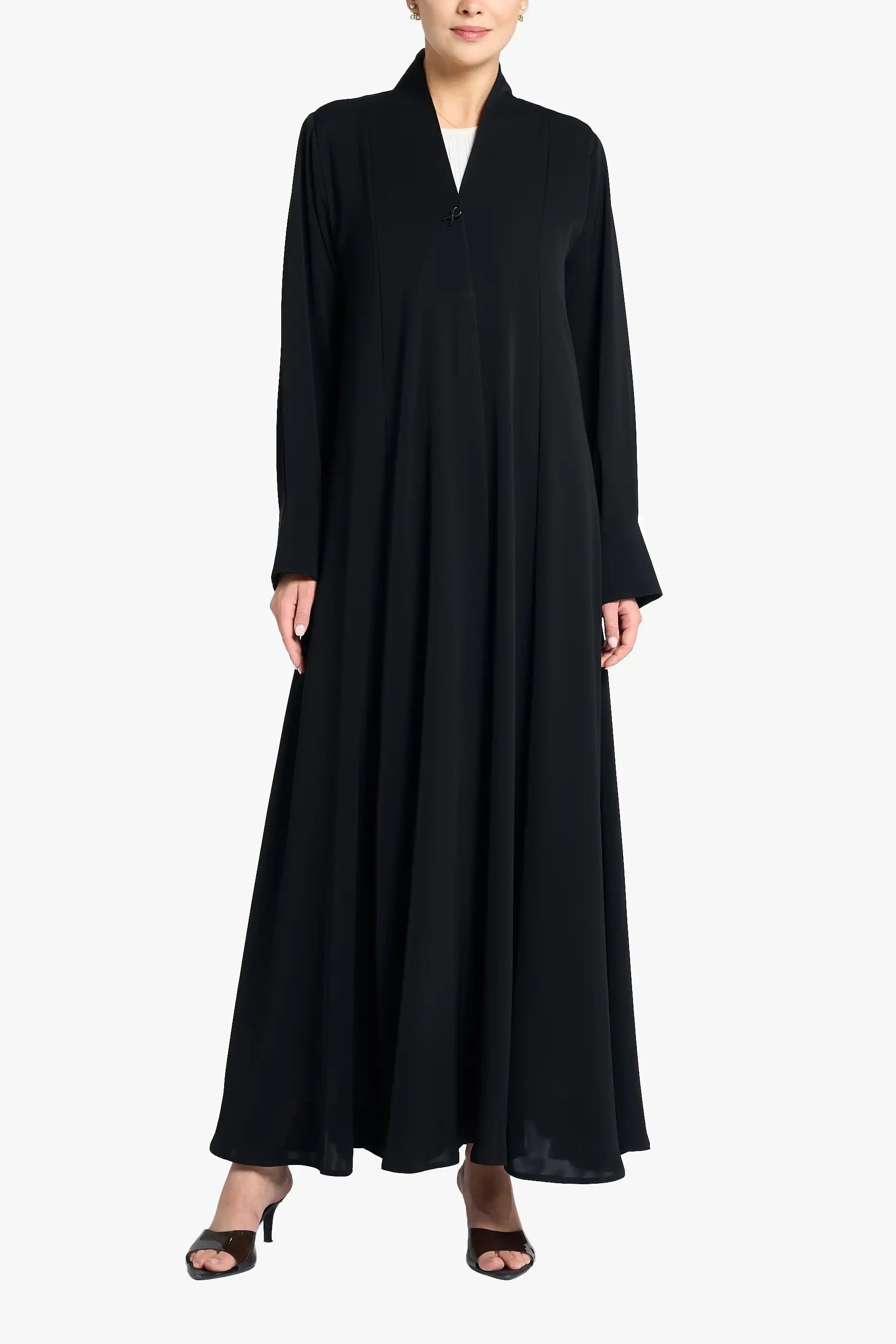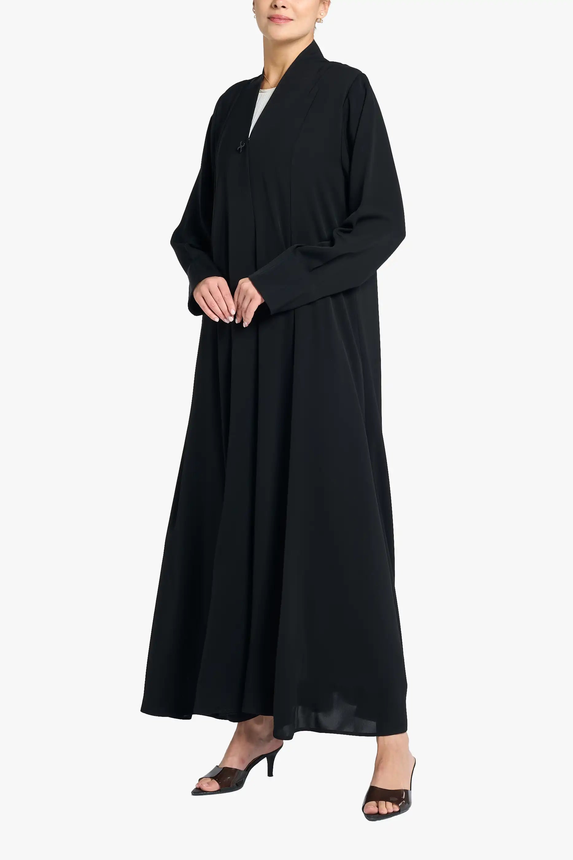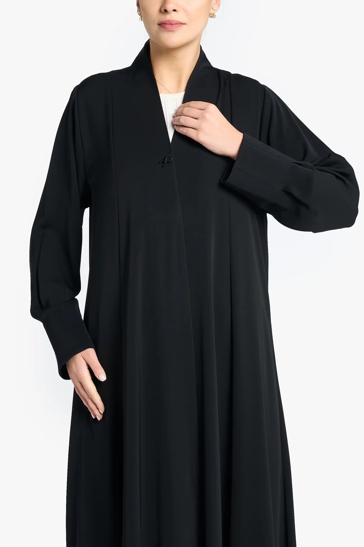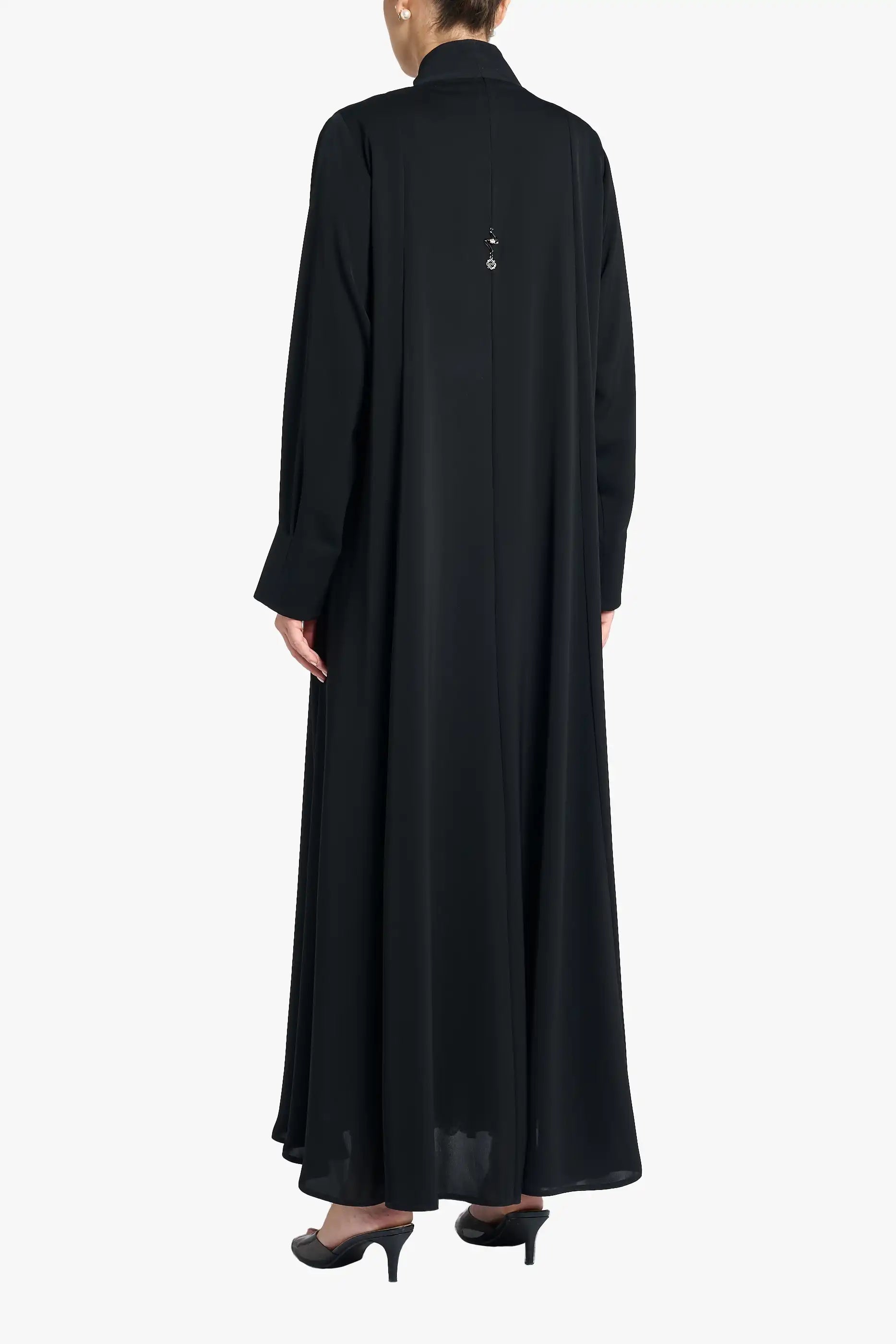 عباية لوزان مصنوعة من قماش النيدا بتصميم متداخل في الأمام وتفاصيل أكمام مطوية.