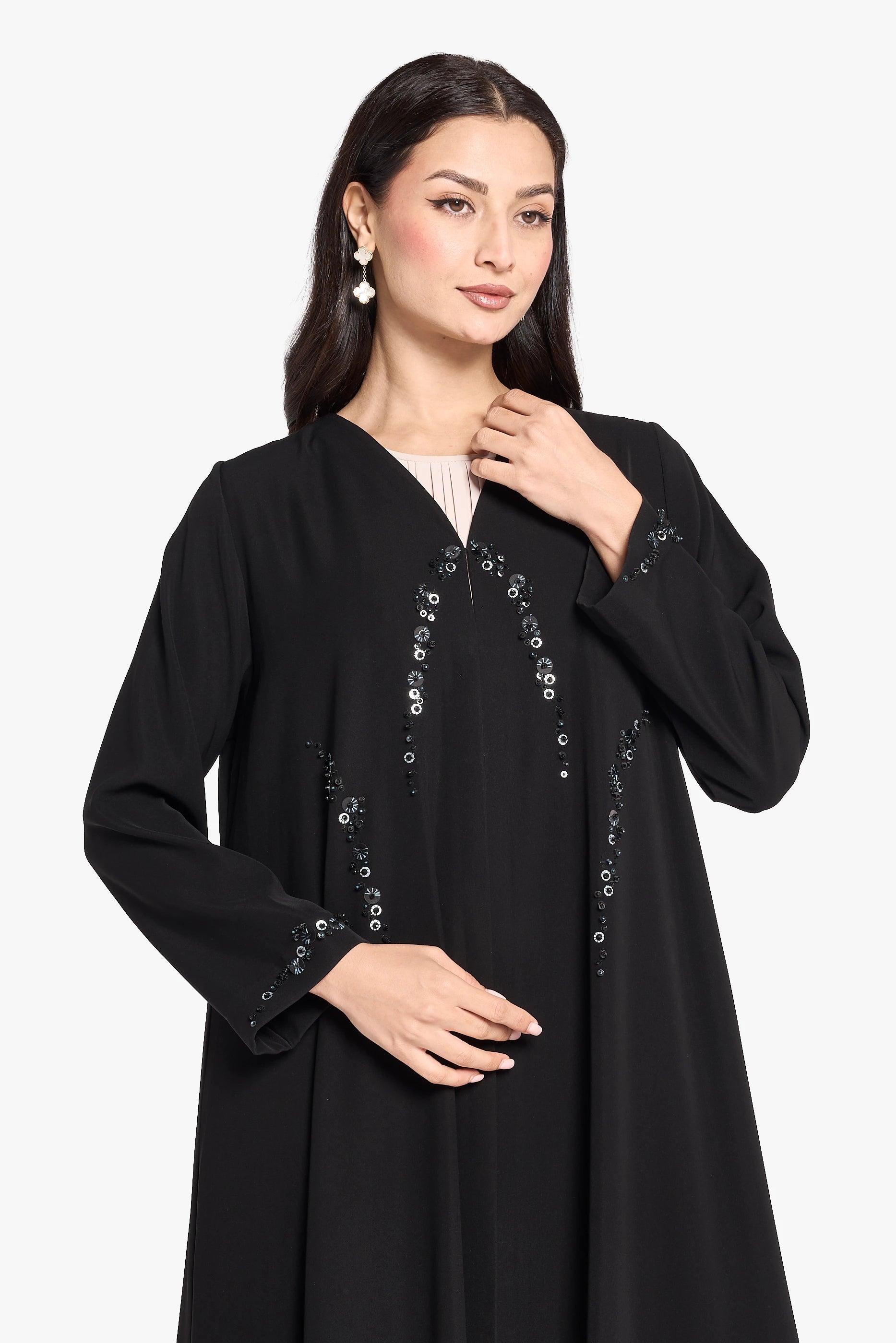 تتميز عباية أوشا بتصميمها الرسمي الأنيق، الذي يُبرز حرفيةً راقية وأناقةً خالدة. تجمع هذه العباءة بين التفاصيل الدقيقة والتصميم الكلاسيكي، ما يجعلها الخيار الأمثل للمناسبات المميزة والإطلالة الأنيقة.