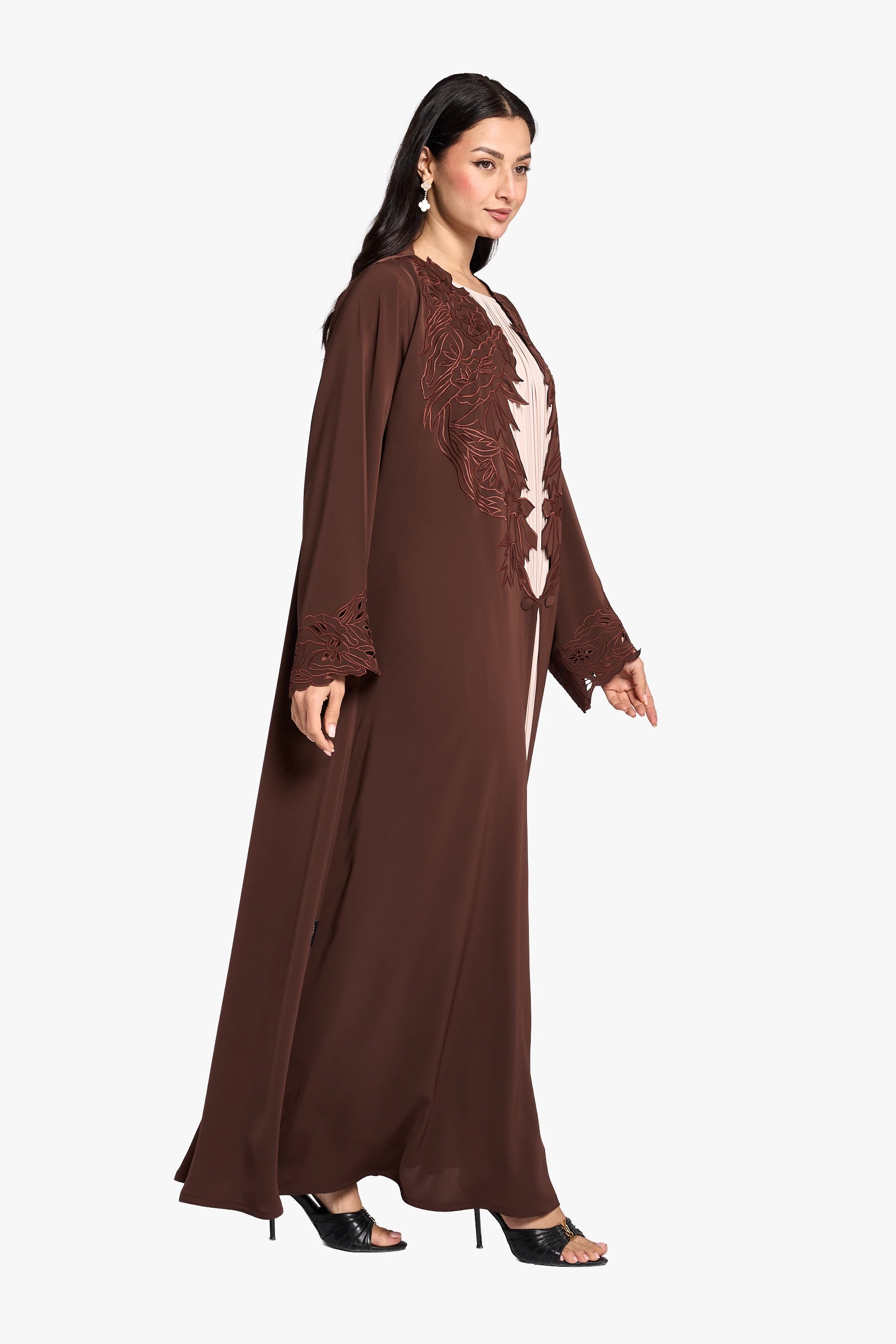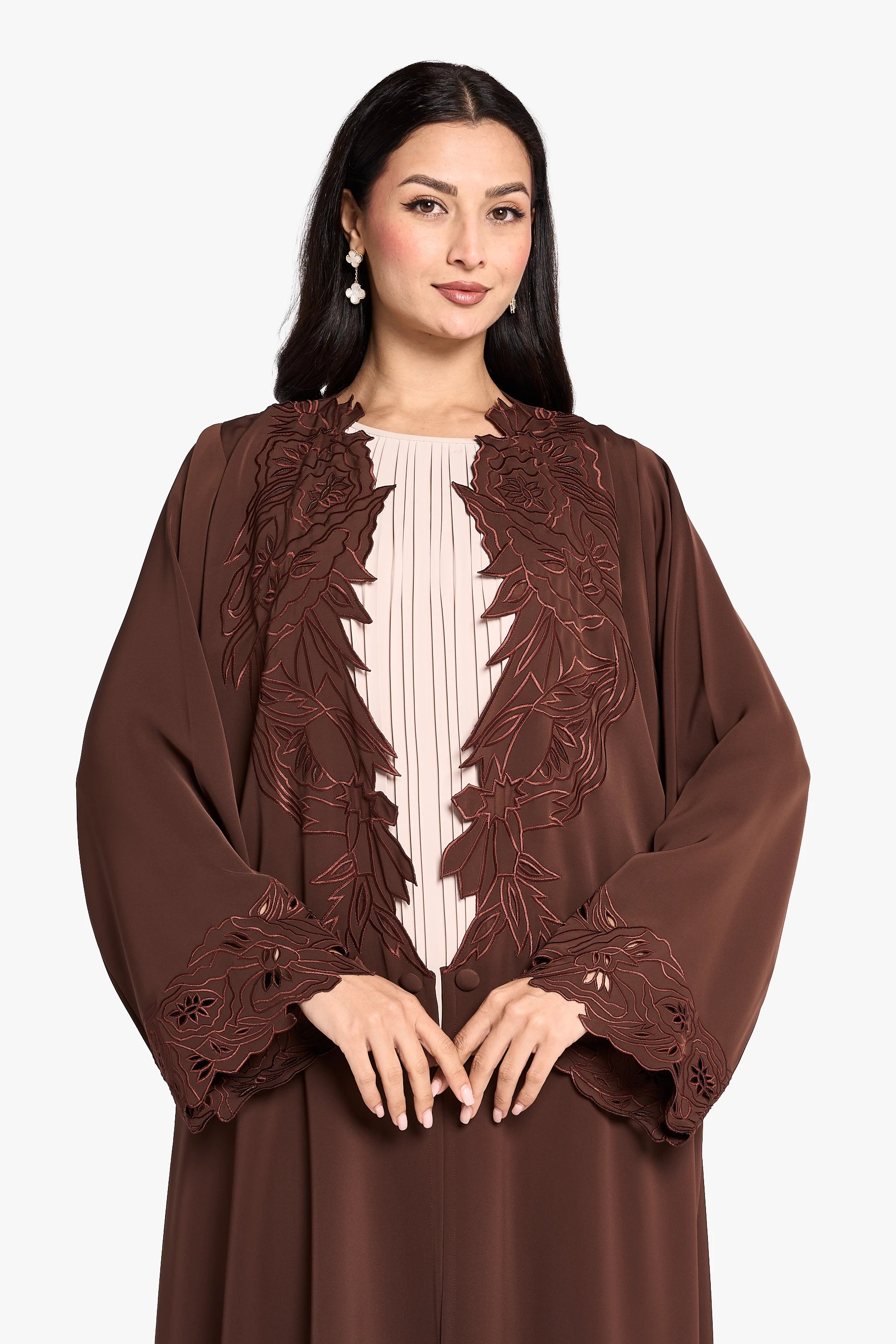 تتميز عباية أوشا بتطريزها الأنيق، الذي يُظهر براعة الصنعة ودقة التفاصيل. يُضفي هذا التصميم الراقي لمسةً عصريةً على العباءة، مُقدمًا ثوبًا أنيقًا وفخمًا، مثاليًا للمناسبات الخاصة أو لتعزيز أناقتك اليومية.