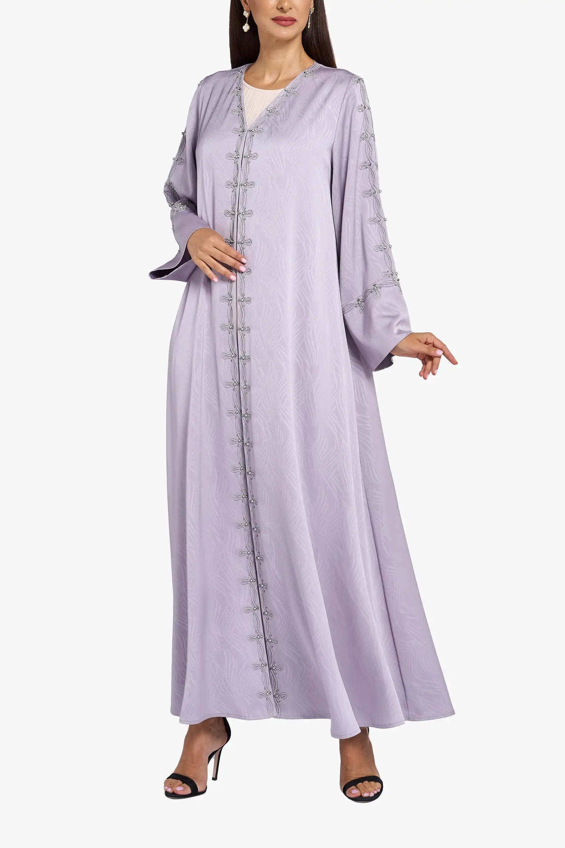 عباية لوزان الأنيقة هذه، مصنوعة يدويًا بإتقان وقماش فاخر لامع، مثالية للمناسبات الخاصة. تضمن حرفيتها الراقية إطلالة راقية مع توفير الراحة والأناقة. مثالية لمن تبحث عن قطعة مميزة تجمع بين الأصالة والأسلوب المعاصر.