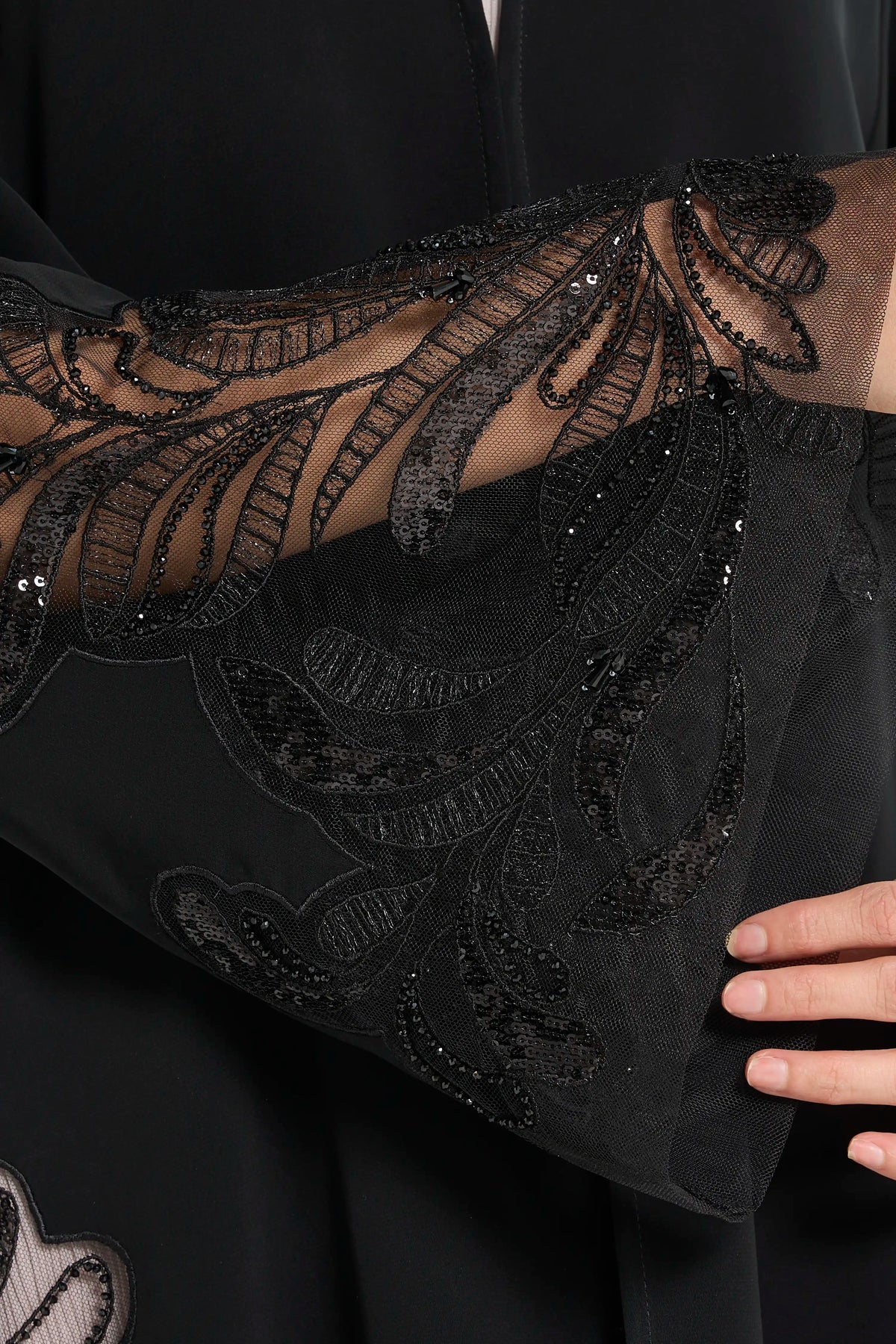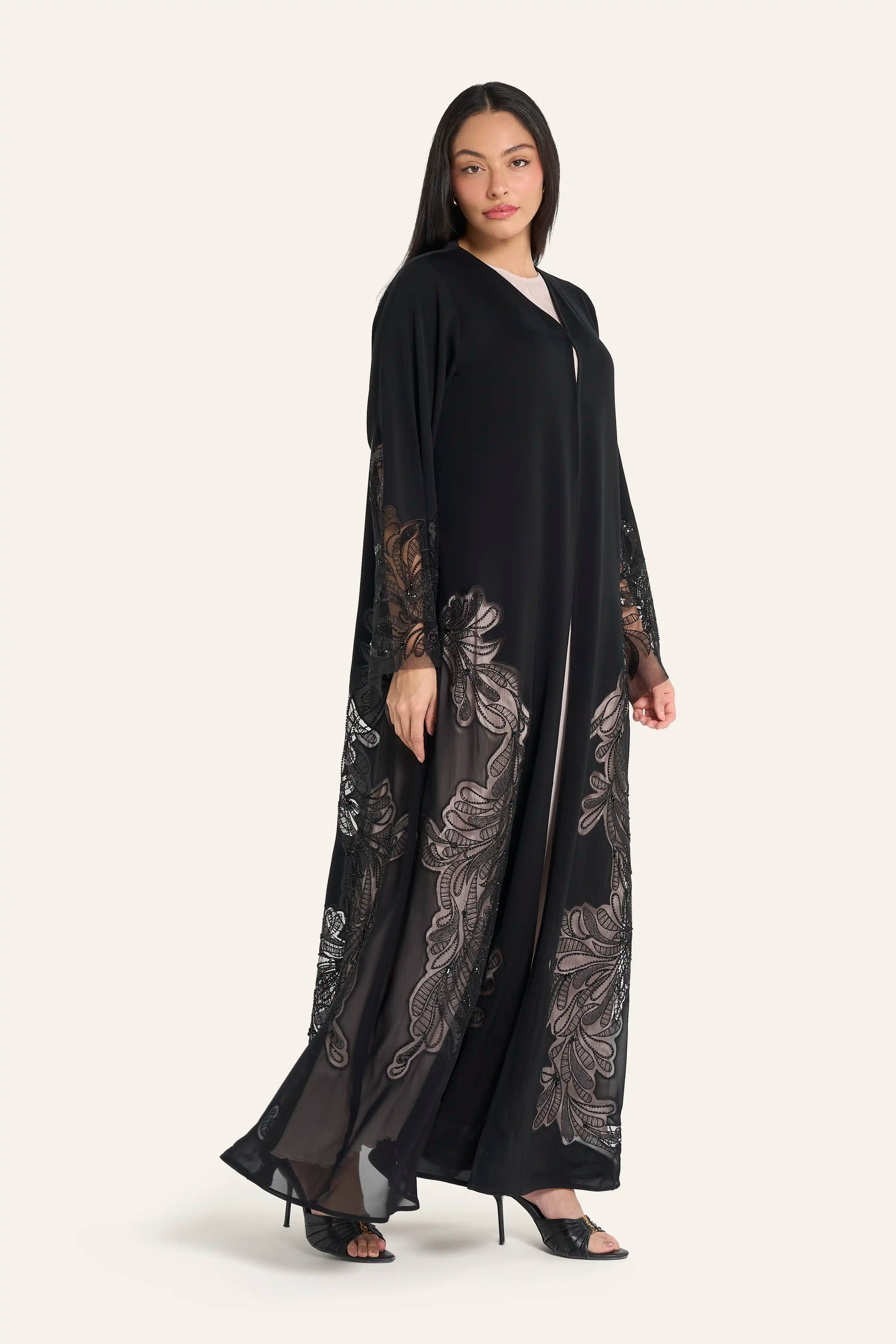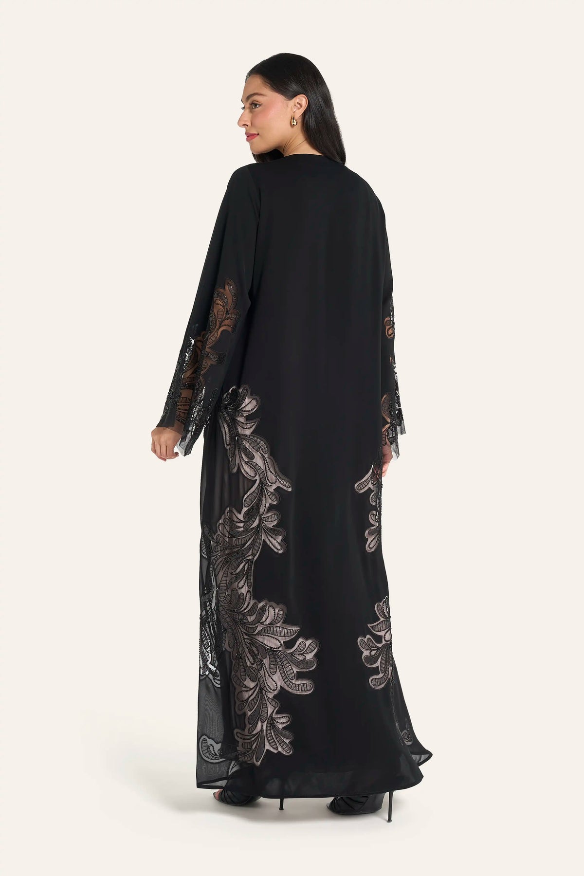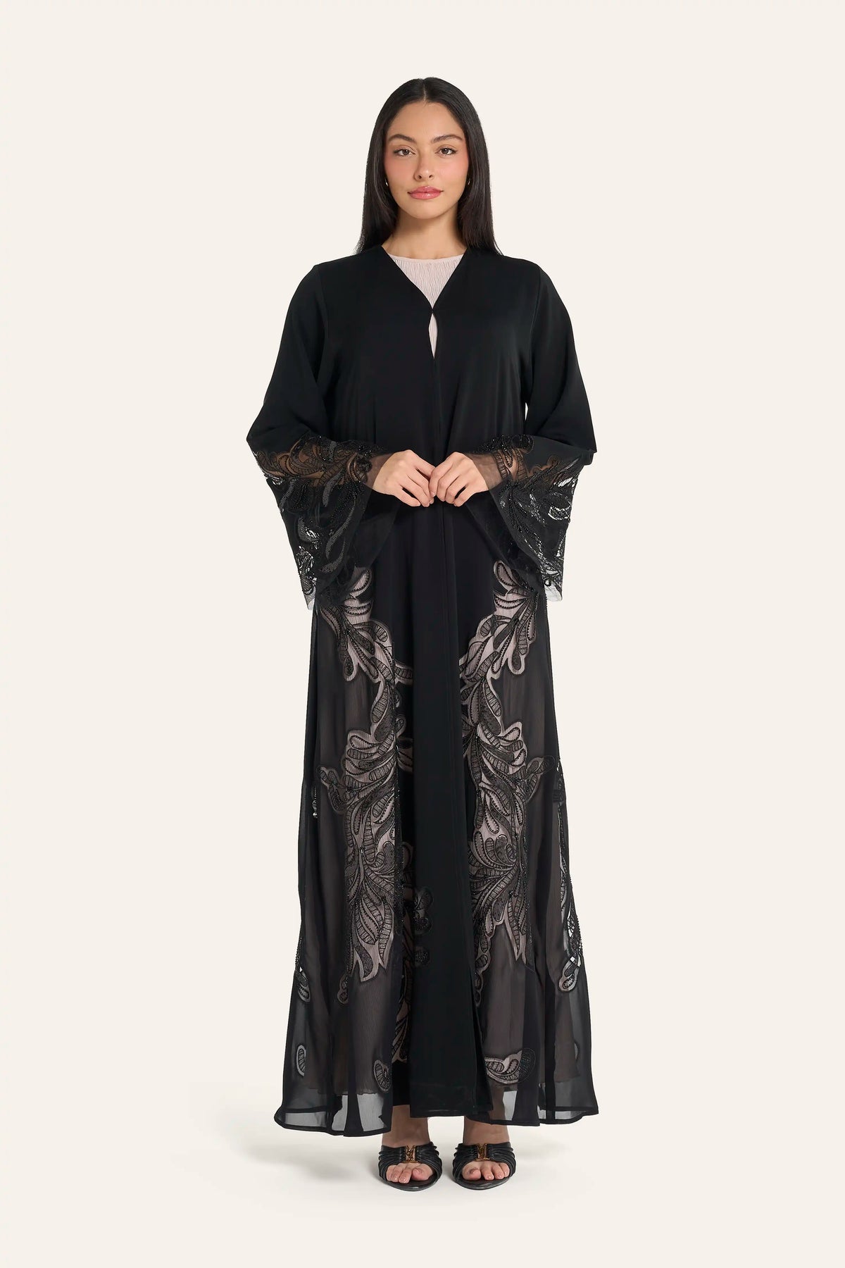 عباية لوزان سوداء | تطريز تجريدي مع لمسات كريستالية