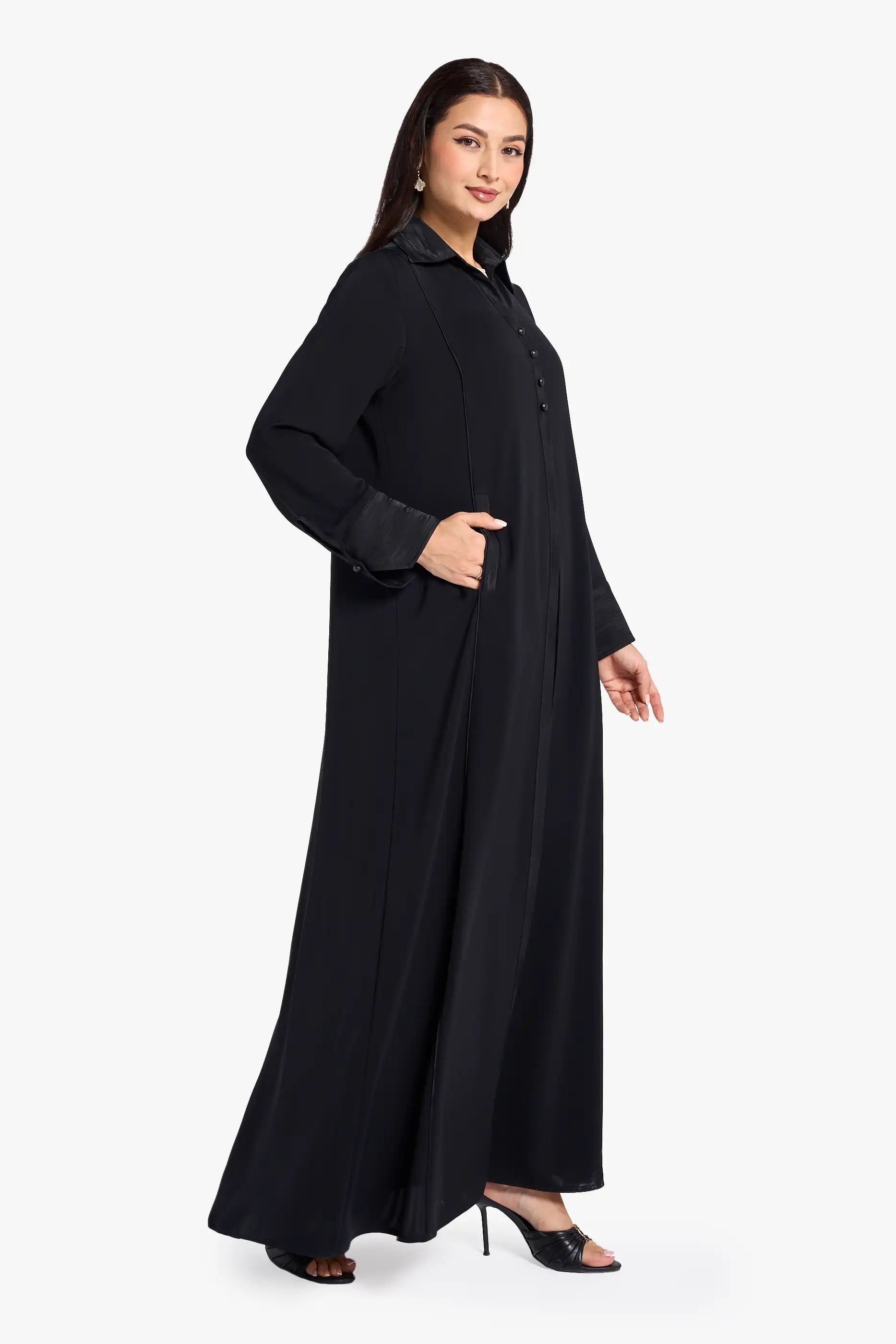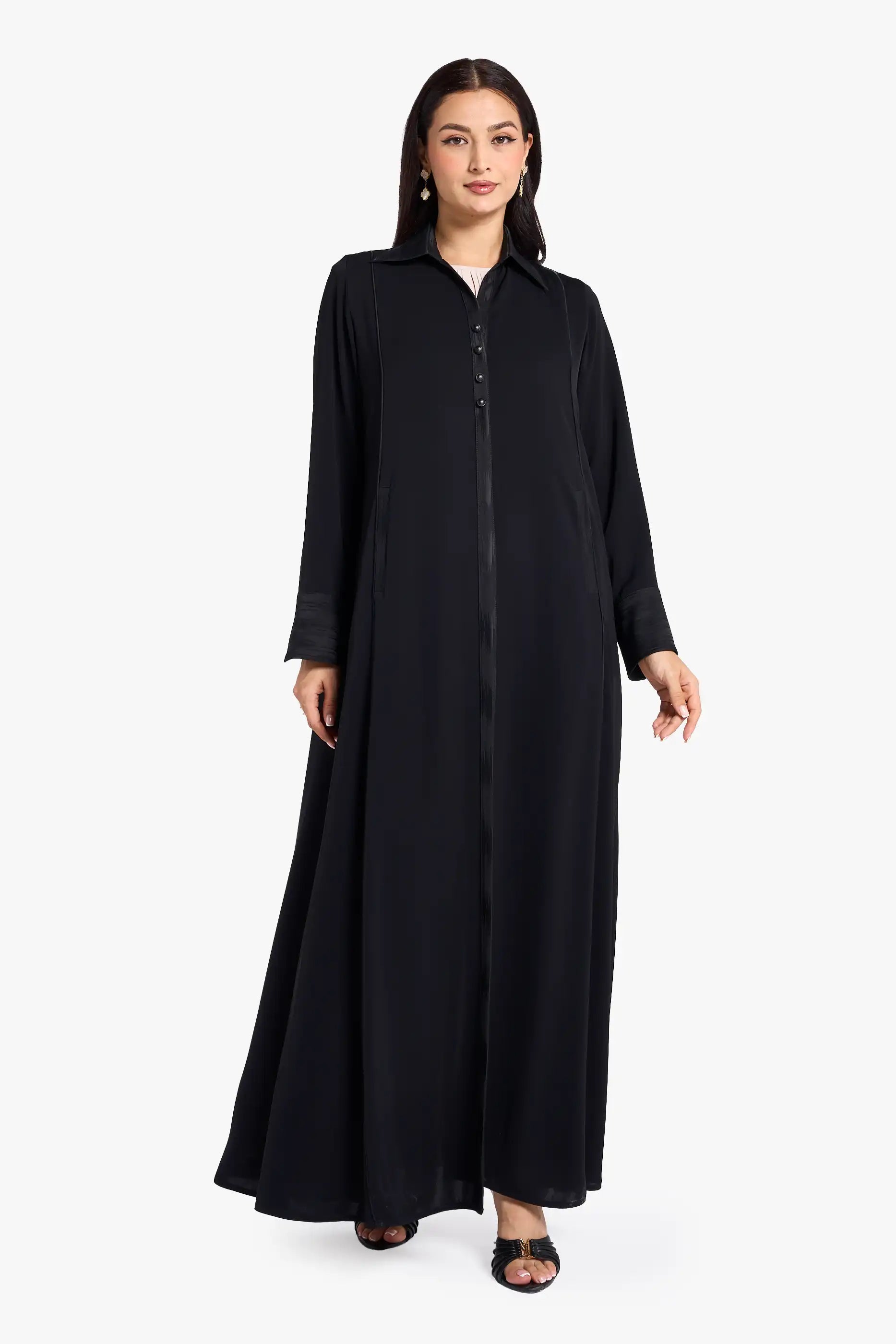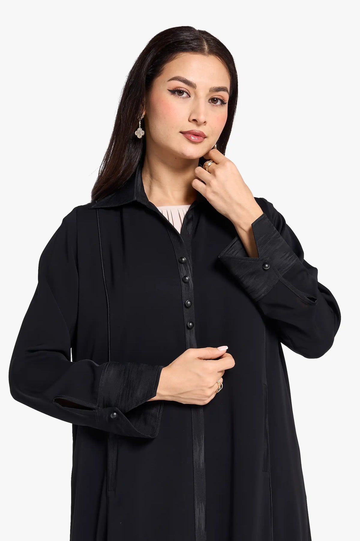 Louzan Casual Abaya Is Crafted In Premium Nida Wtih Soft Jacquard Collar