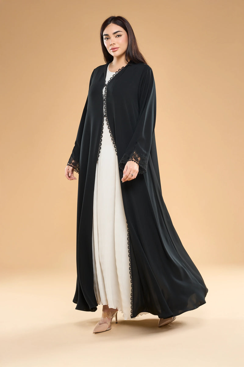 Ousha Panel Lace Detailed Nida Abaya