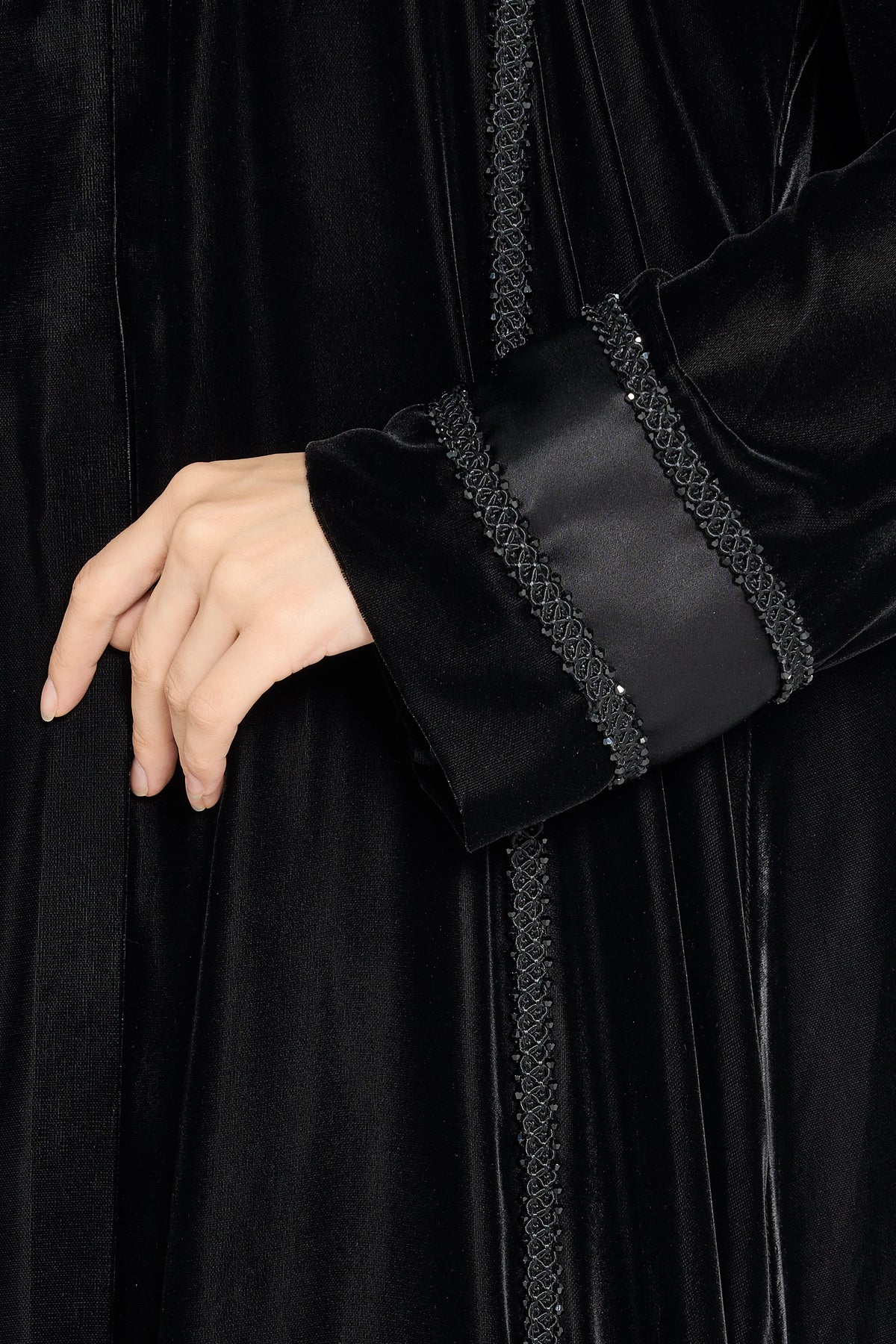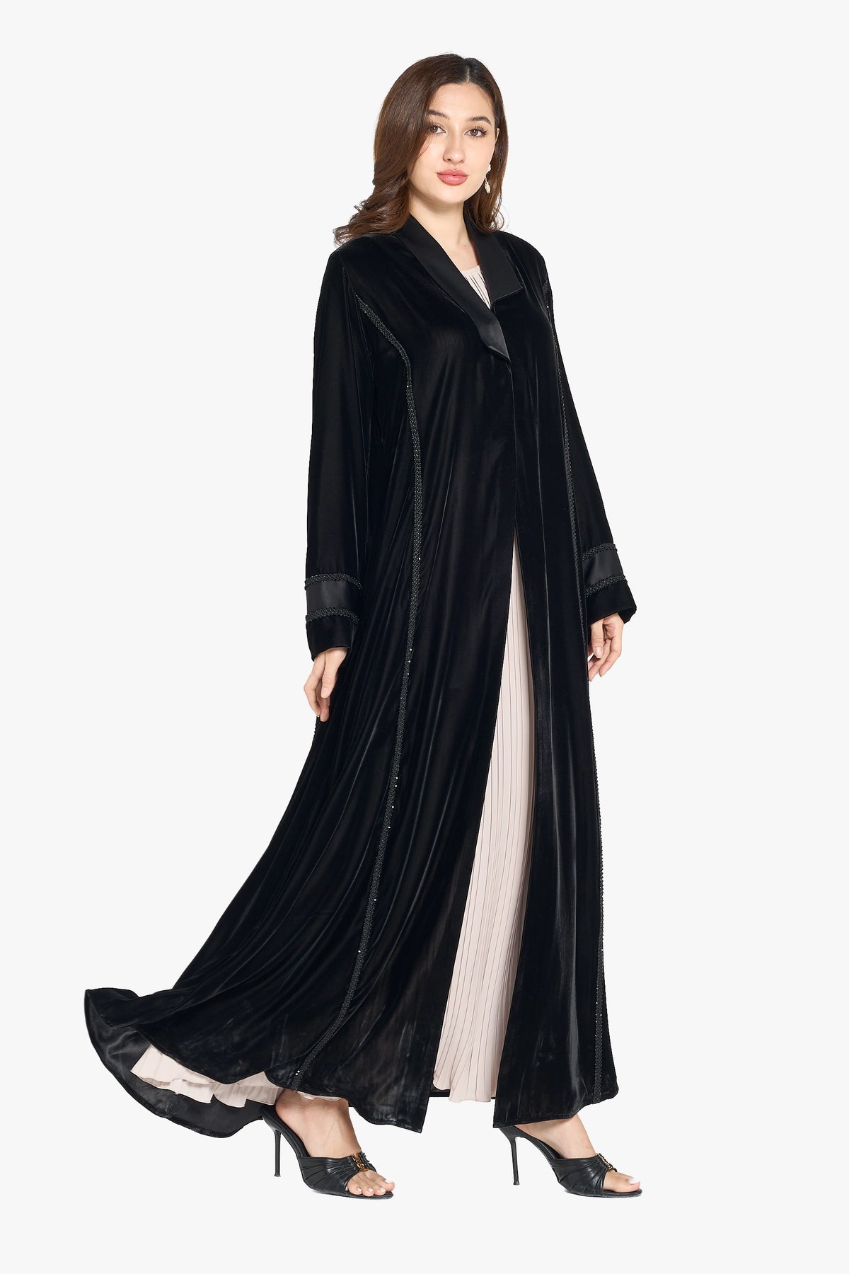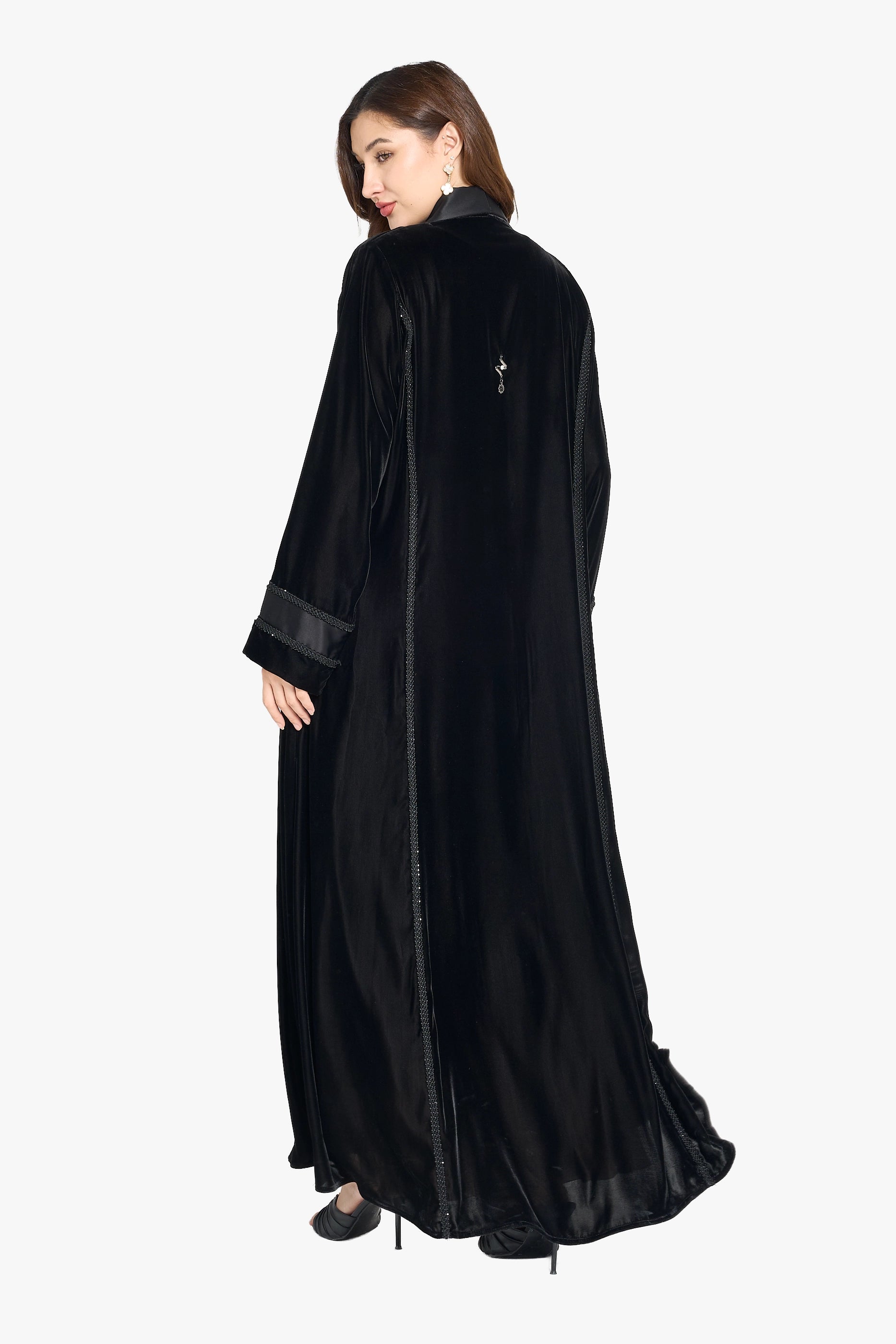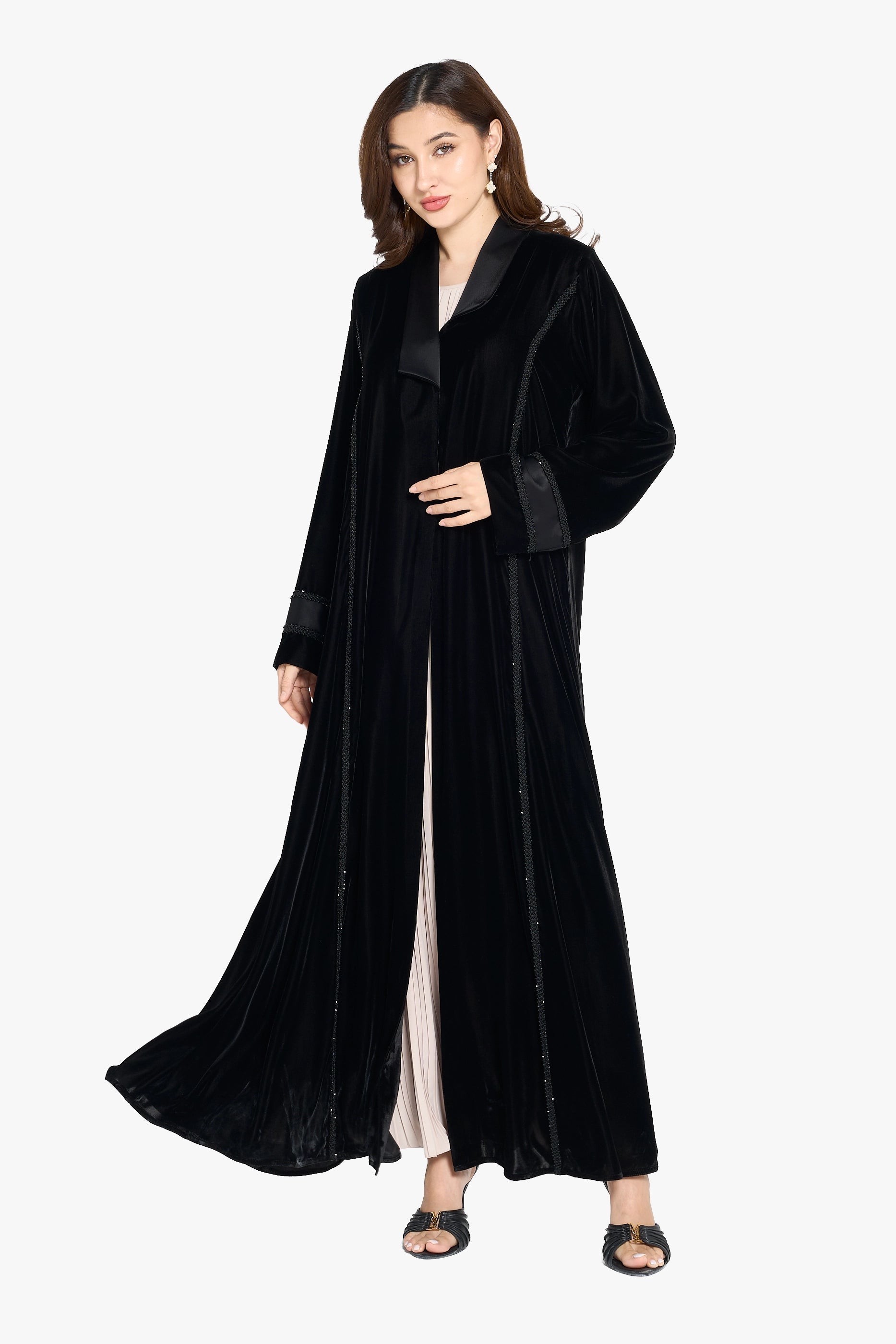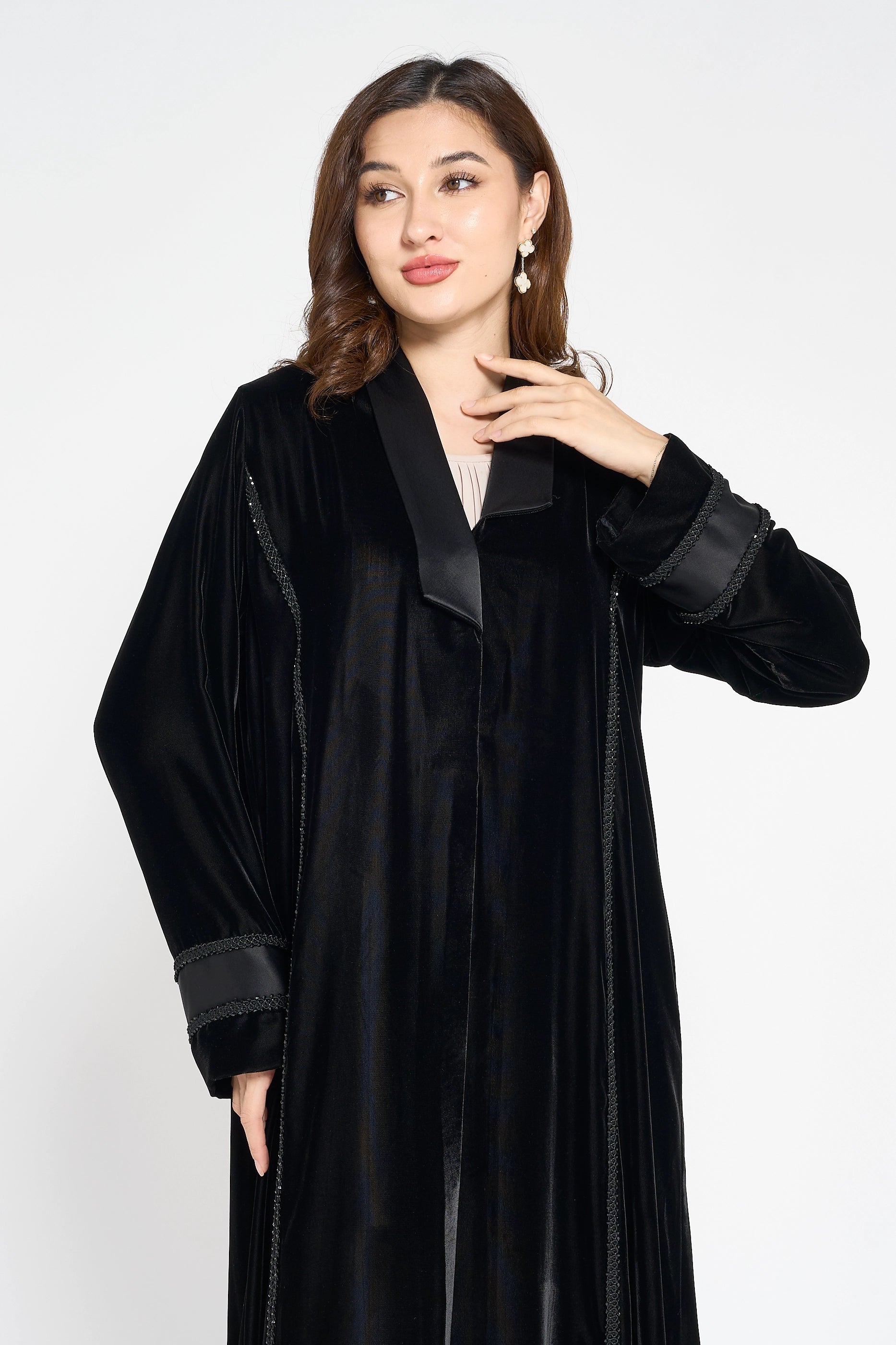 Louzan Abaya SP98 – Elegant Velvet & Satin Fusion Abaya