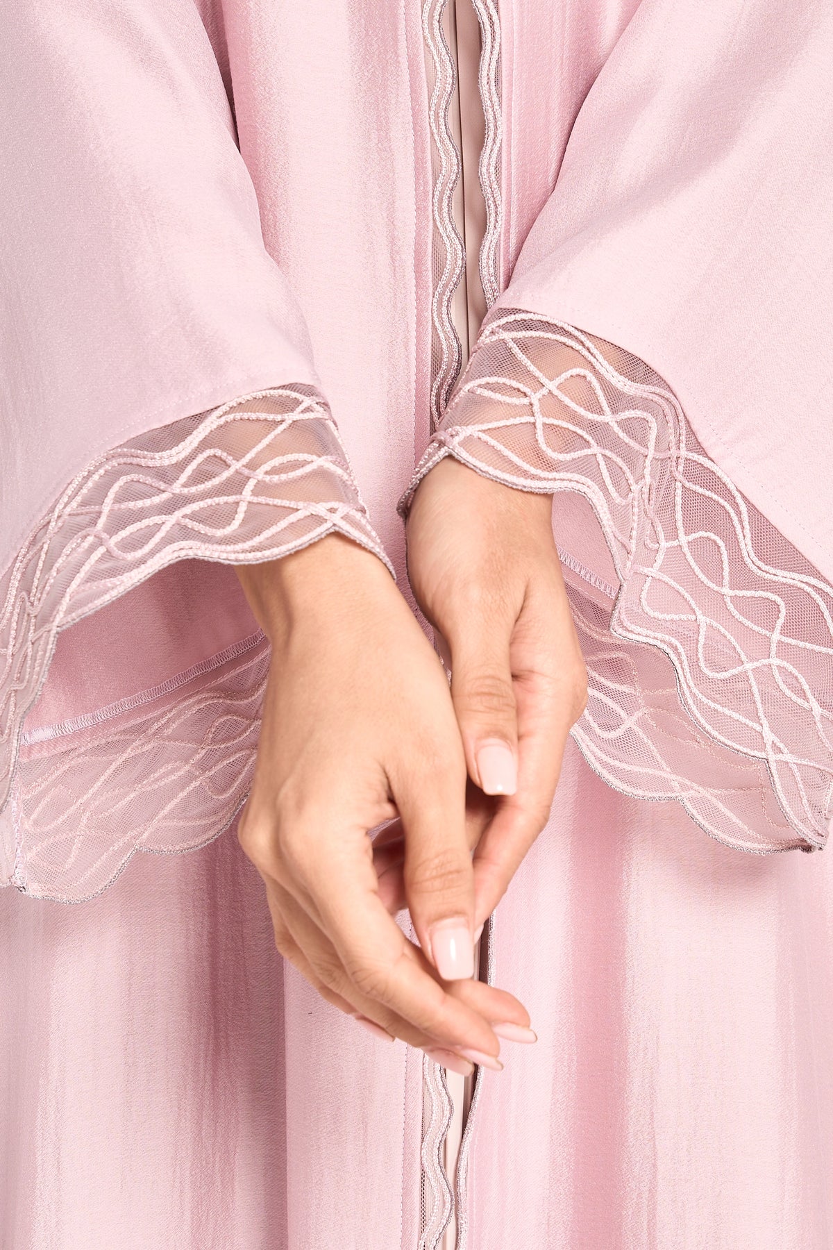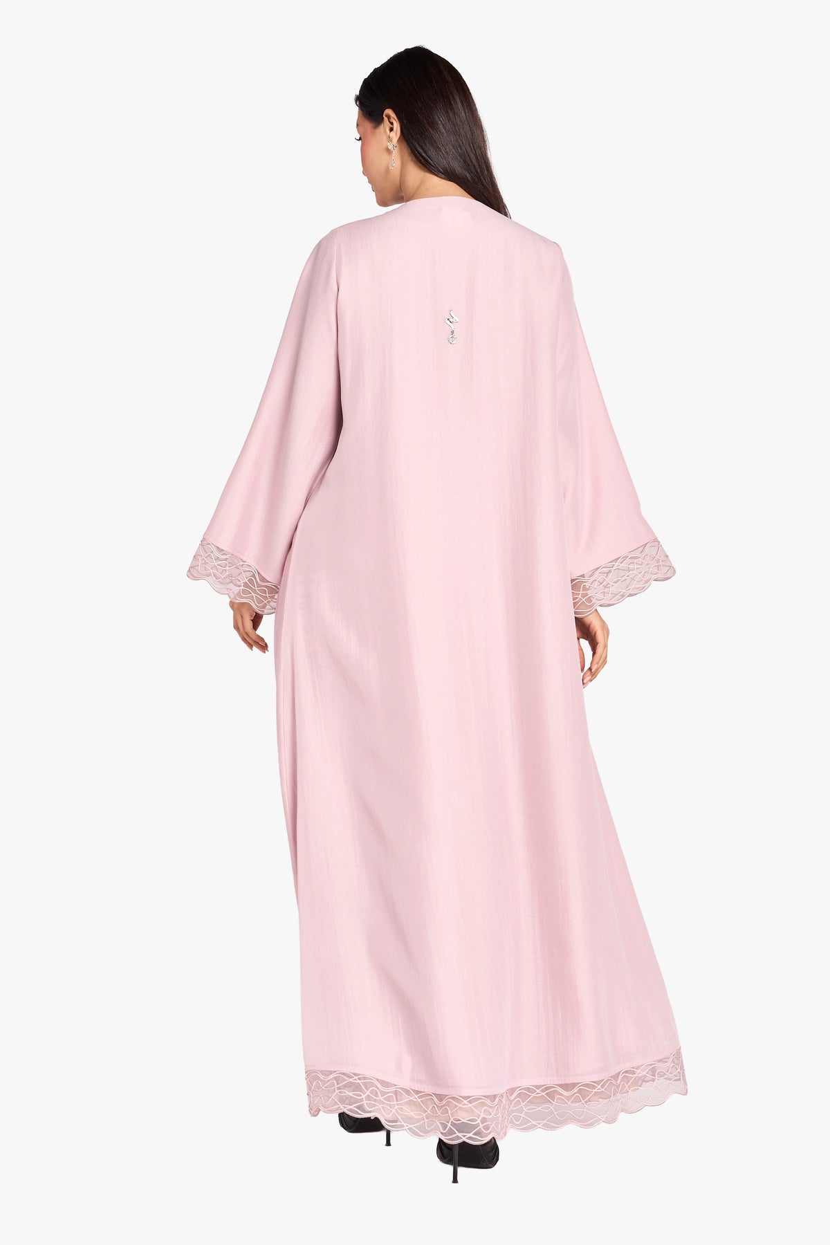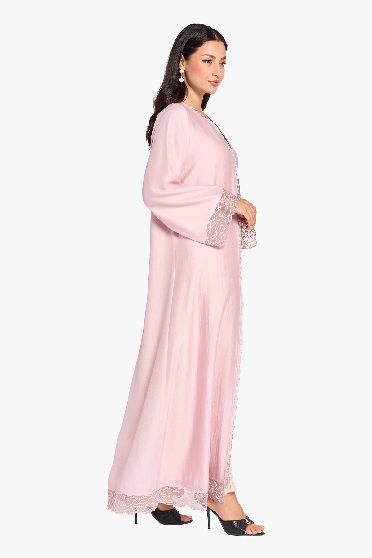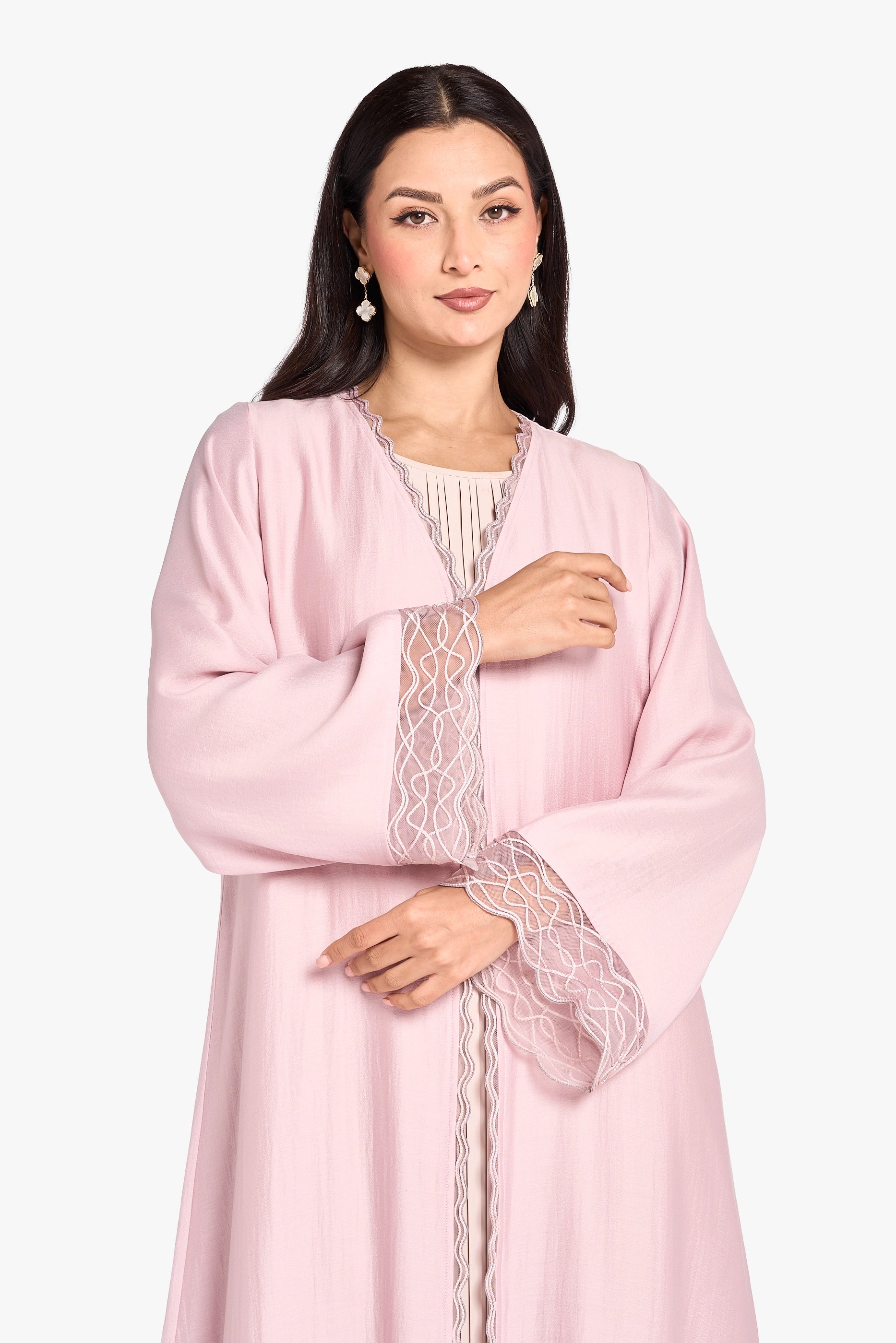 Louzan Abaya – Linen Organza Double Layer in Pink