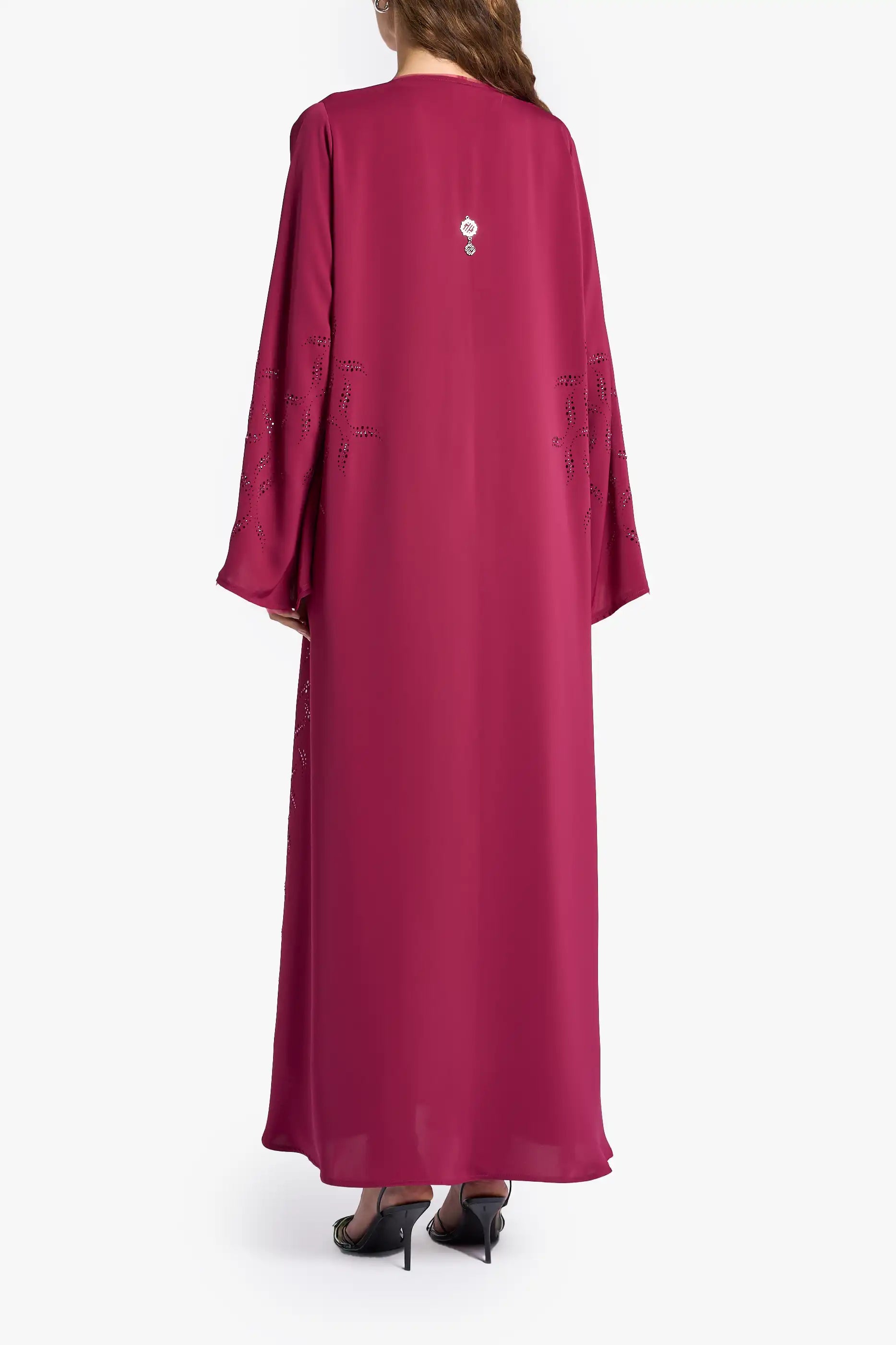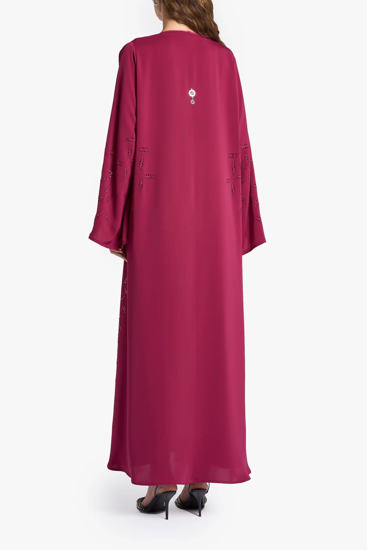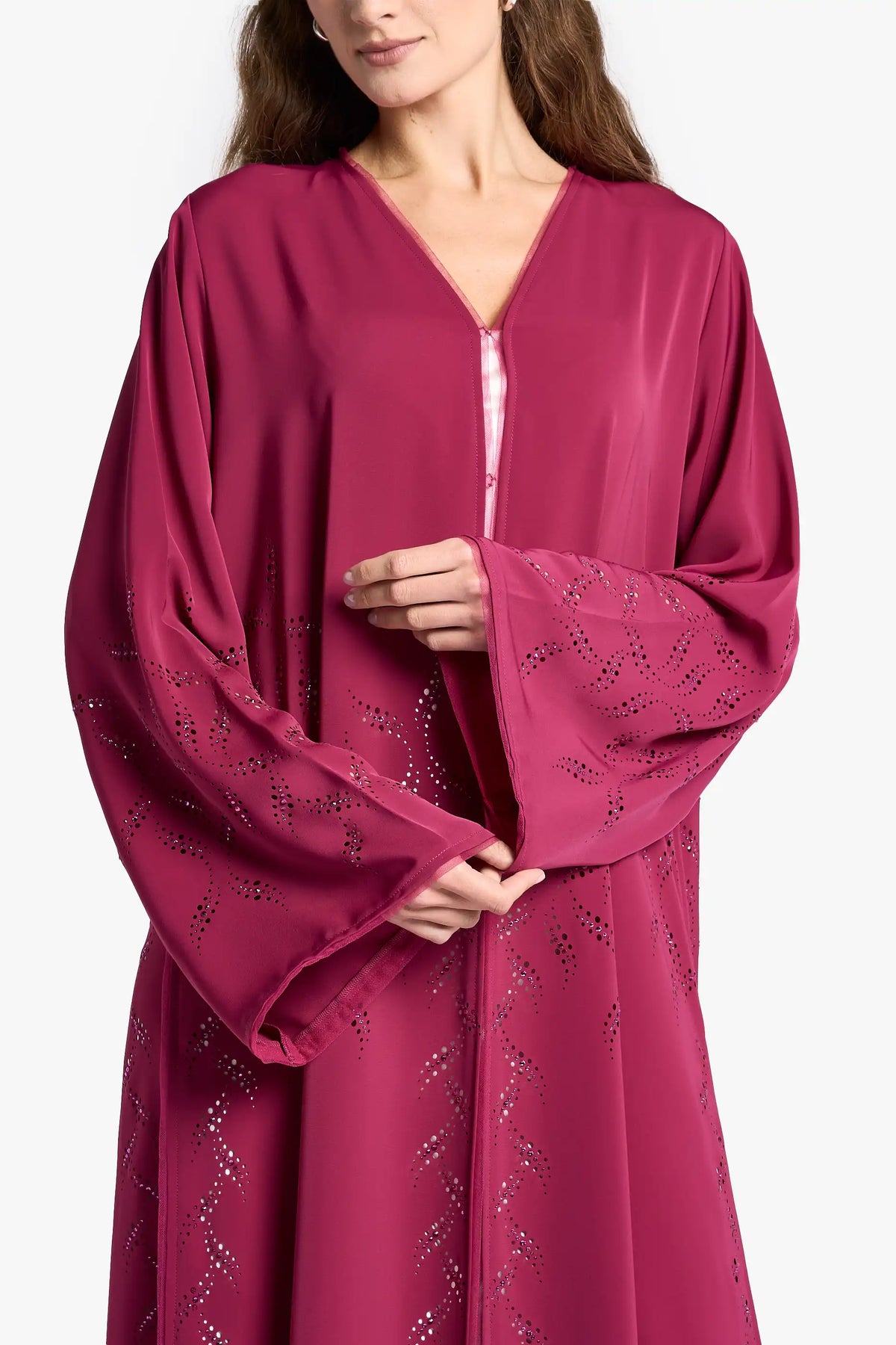 This classic Louzan abaya features a graceful shawl collar and elegant princess panels, enhanced by a shiny dori trim that adds a subtle touch of sophistication. Designed to offer both comfort and style, it’s a perfect choice for those seeking timeless elegance with refined details.