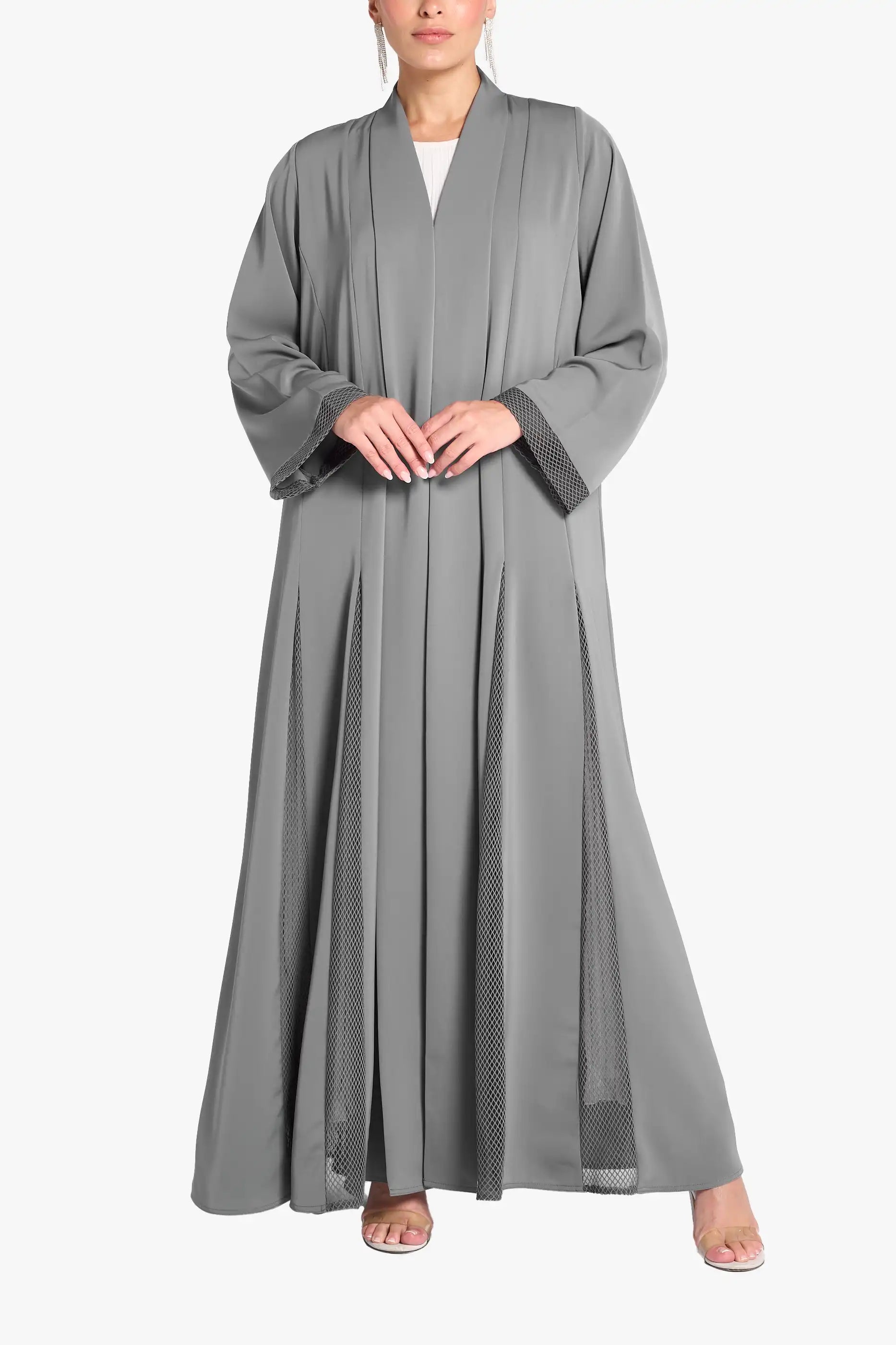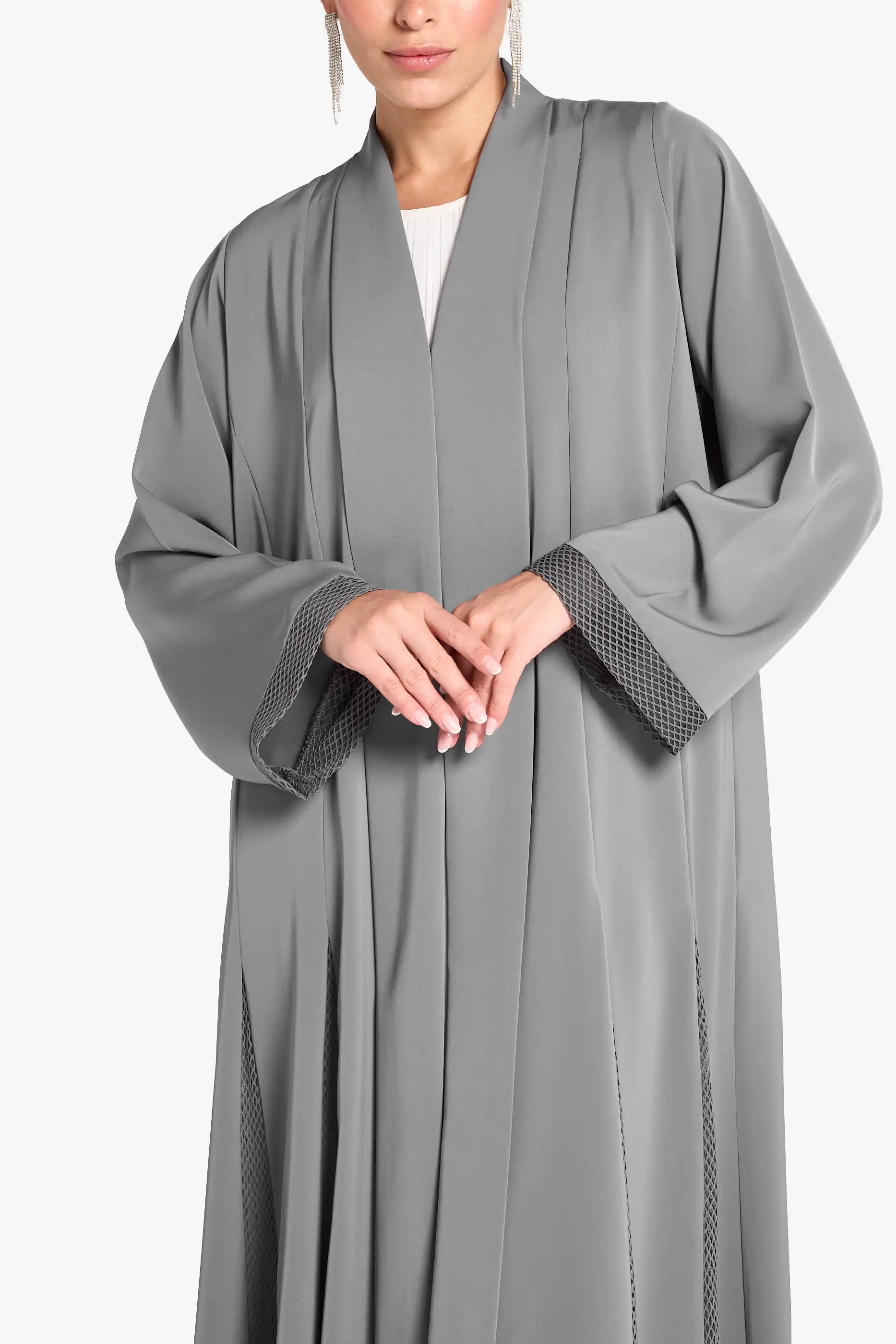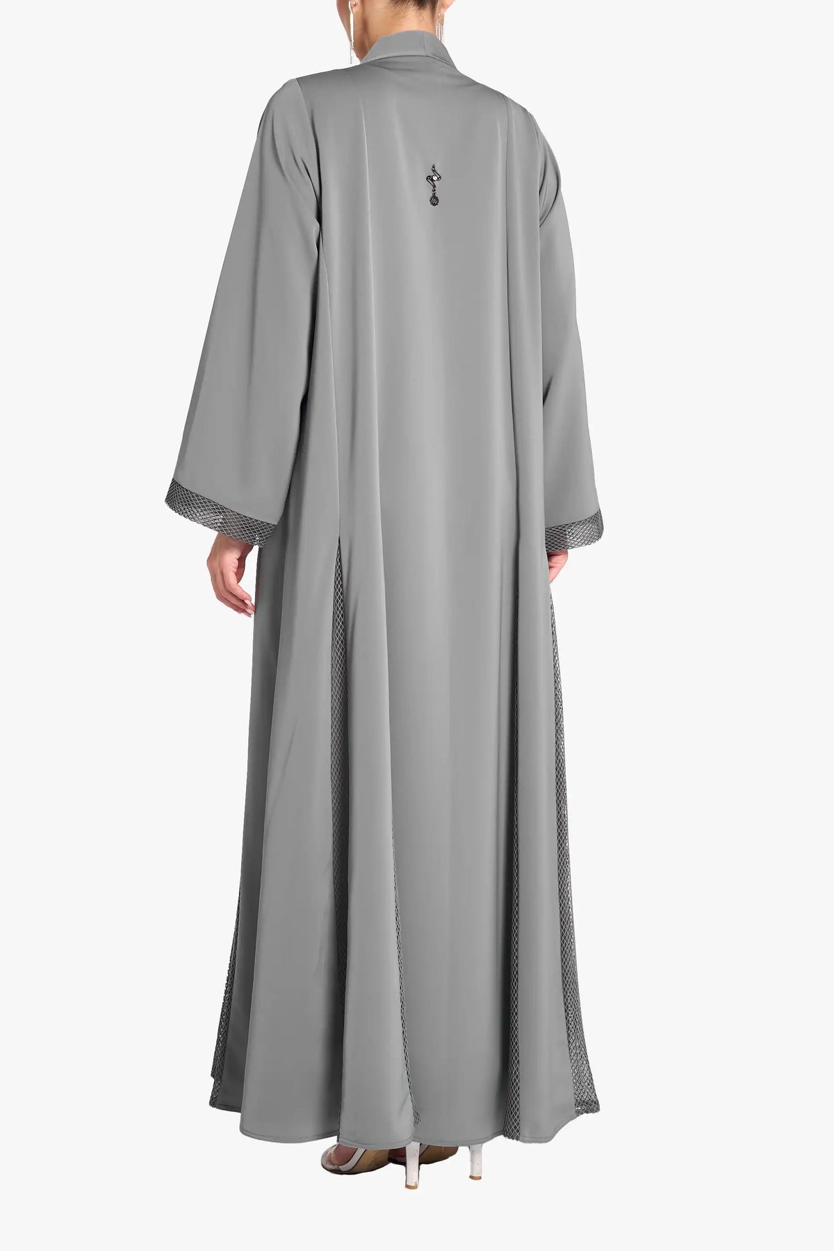 Louzan classic shawl collar abaya crafted in nida and mesh fabric gusset with flared hem.
