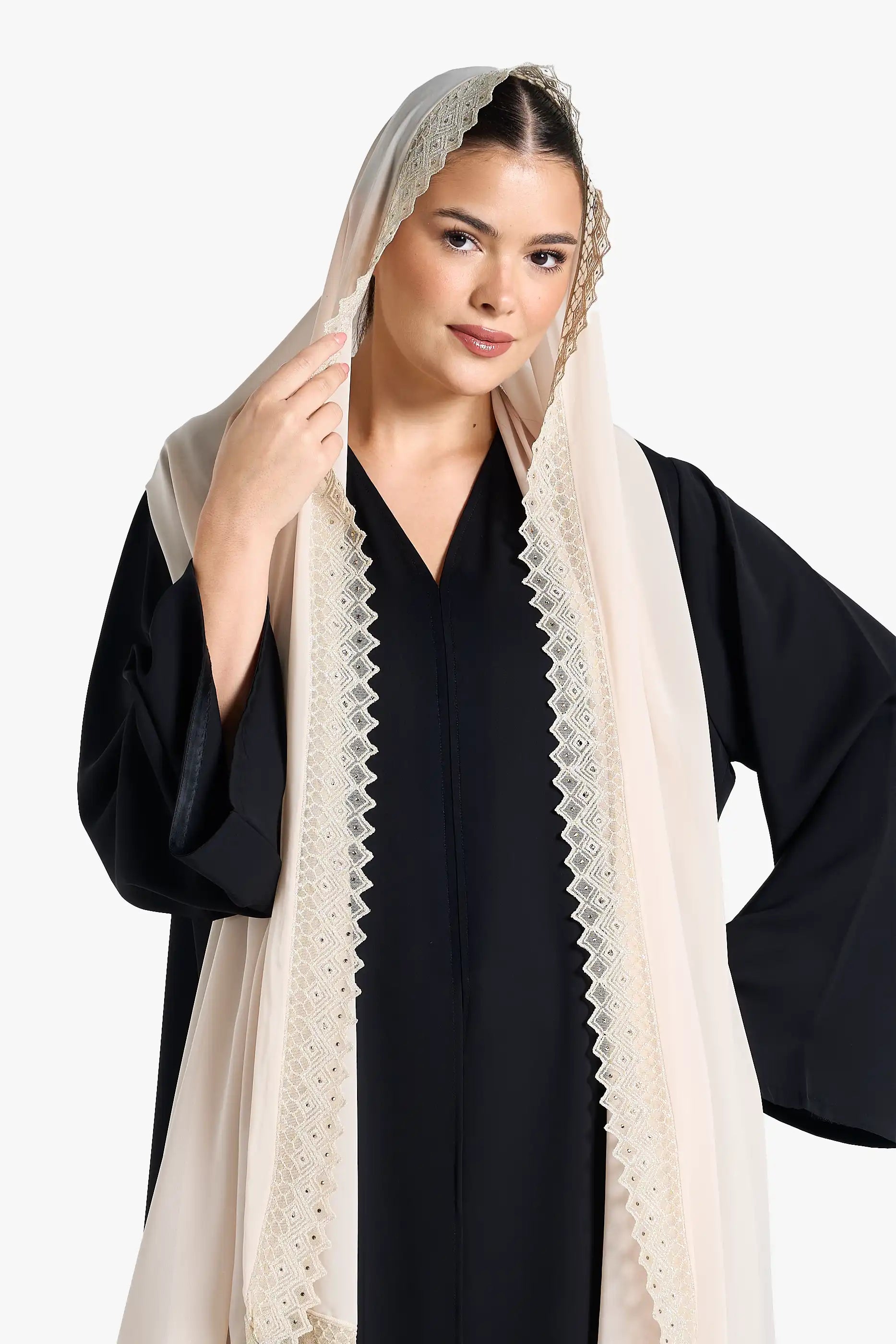 Elevate your look with the LOUZAN ABAYA. Featuring a unique DUJA LAIL hand-made design and a colorful SHEILA, this stunning abaya adds a personal touch to your outfit and creates a bold and elegant look. Hand-crafted for you, make a statement with this exclusive piece.