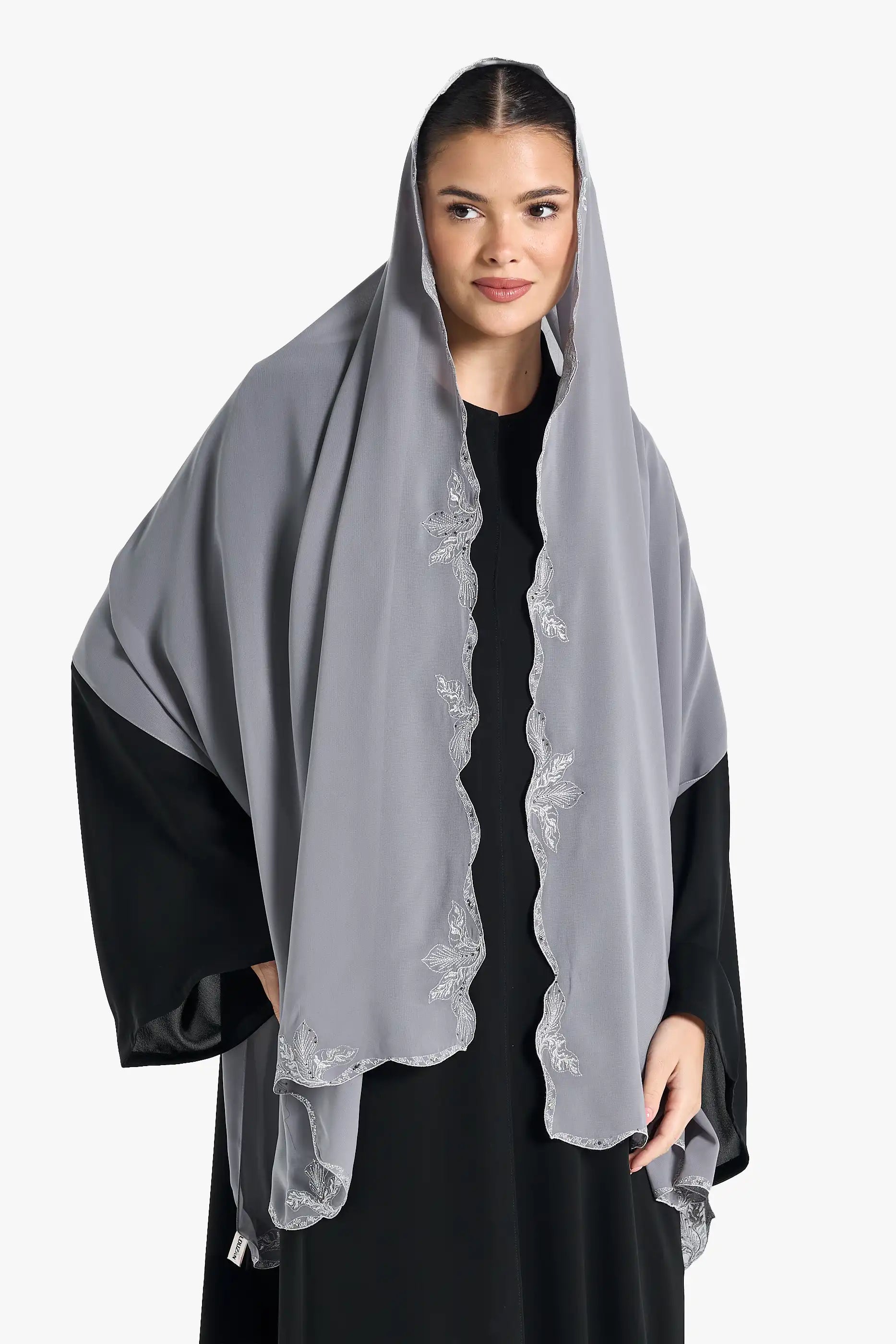 Elevate your look with the LOUZAN ABAYA. Featuring a unique DUJA LAIL hand-made design and a colorful SHEILA, this stunning abaya adds a personal touch to your outfit and creates a bold and elegant look. Hand-crafted for you, make a statement with this exclusive piece.