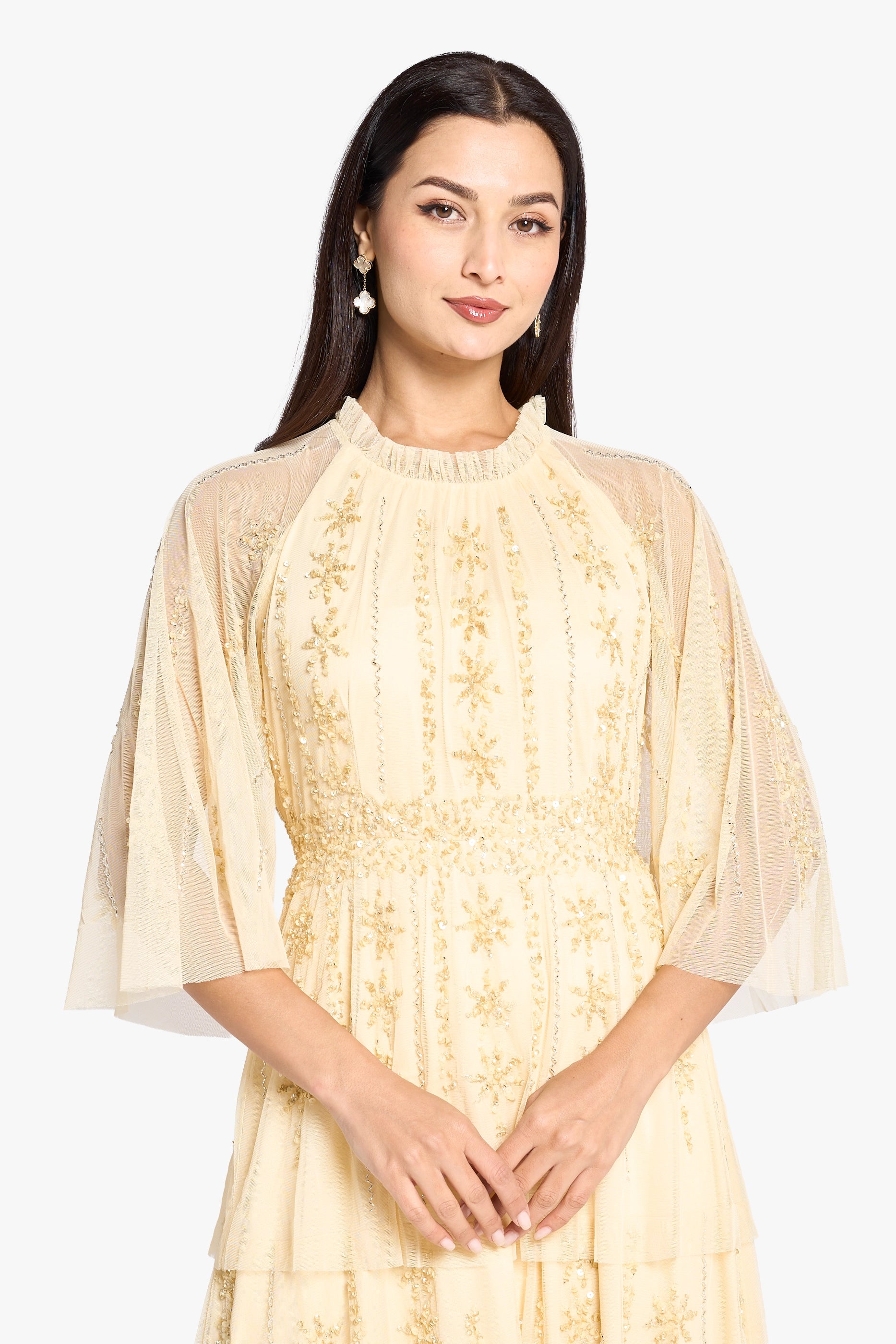 This yellow night dress from Toor and Folak combines elegant design with comfortable wearability. Its vibrant color adds a cheerful touch to nighttime attire, while the fabric ensures softness against the skin. Expertly crafted, it provides a flattering fit that allows ease of movement, making it an ideal choice for restful and stylish nights.