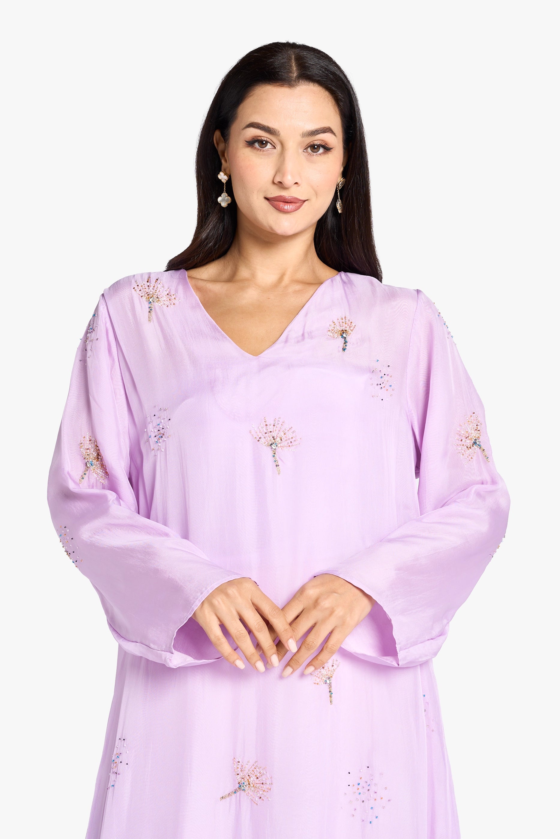 Louzan Jalabiya Organza Handwork Kaftan – Lavender