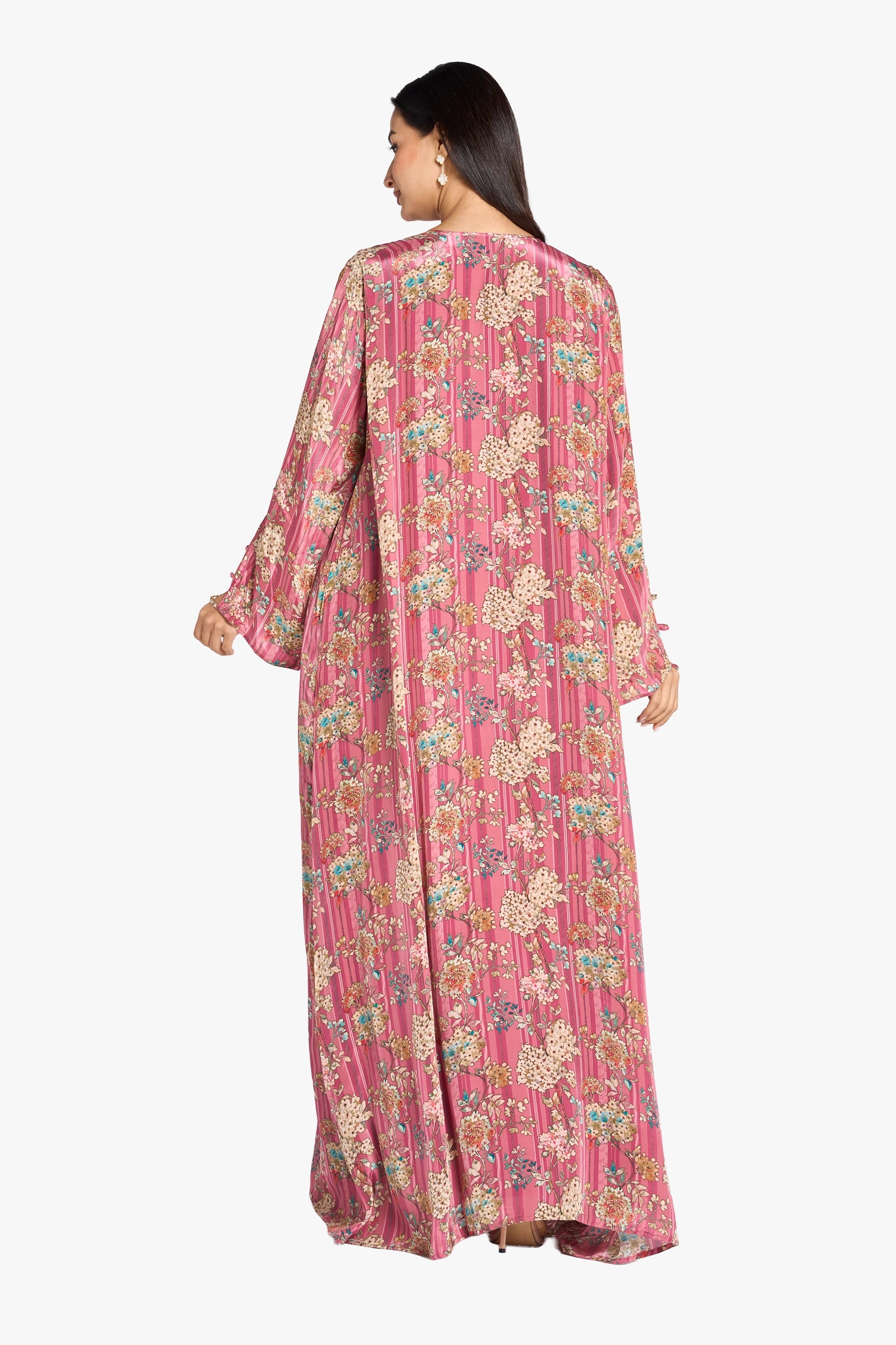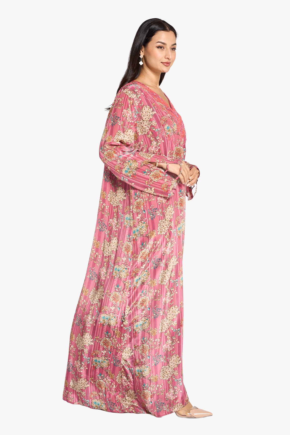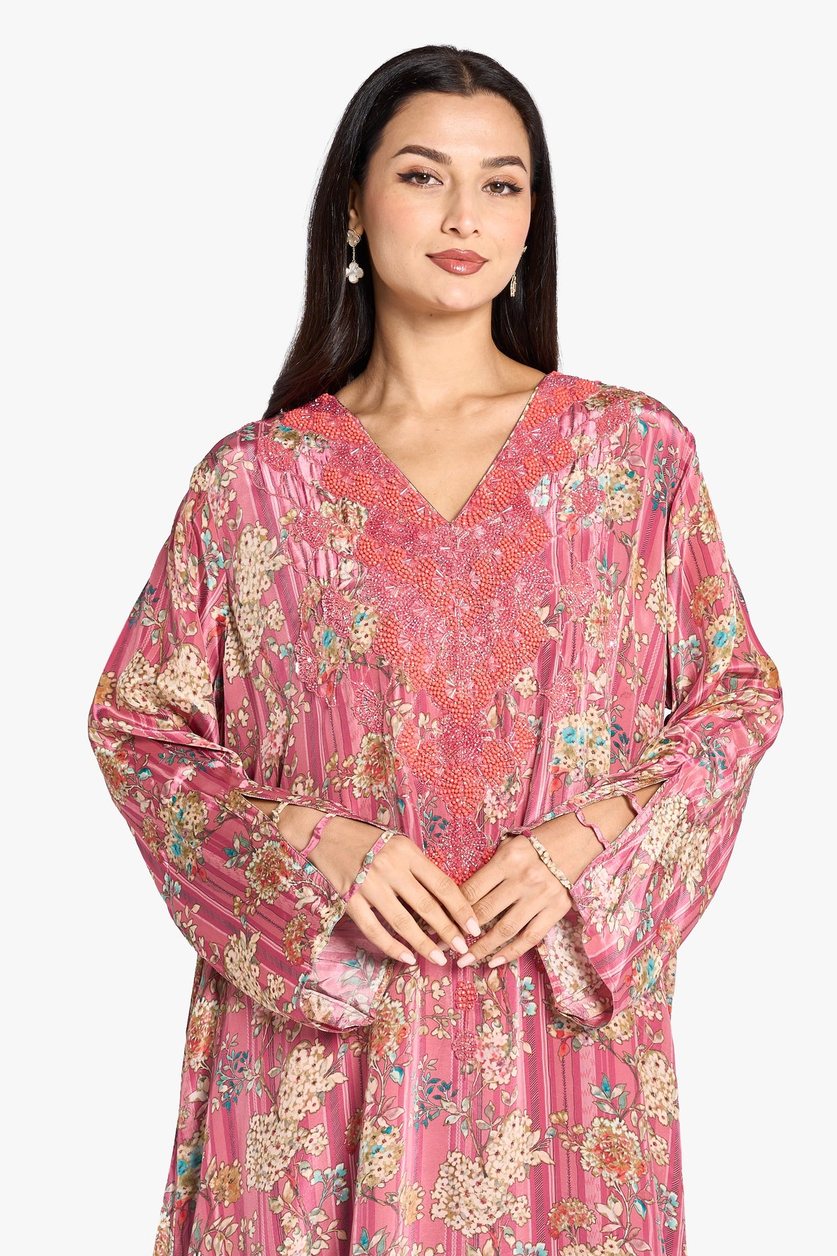 Louzan Jalabiya Crepe Hand Beading Kaftan – Pink