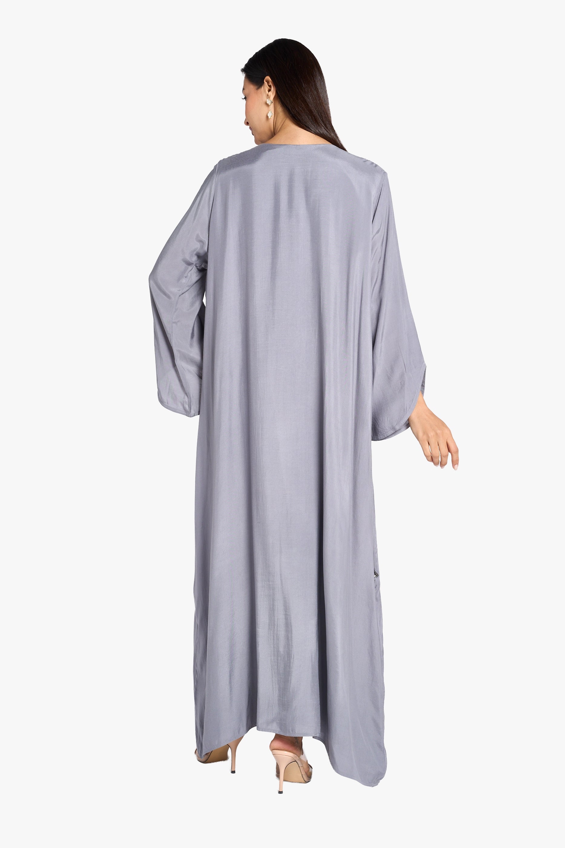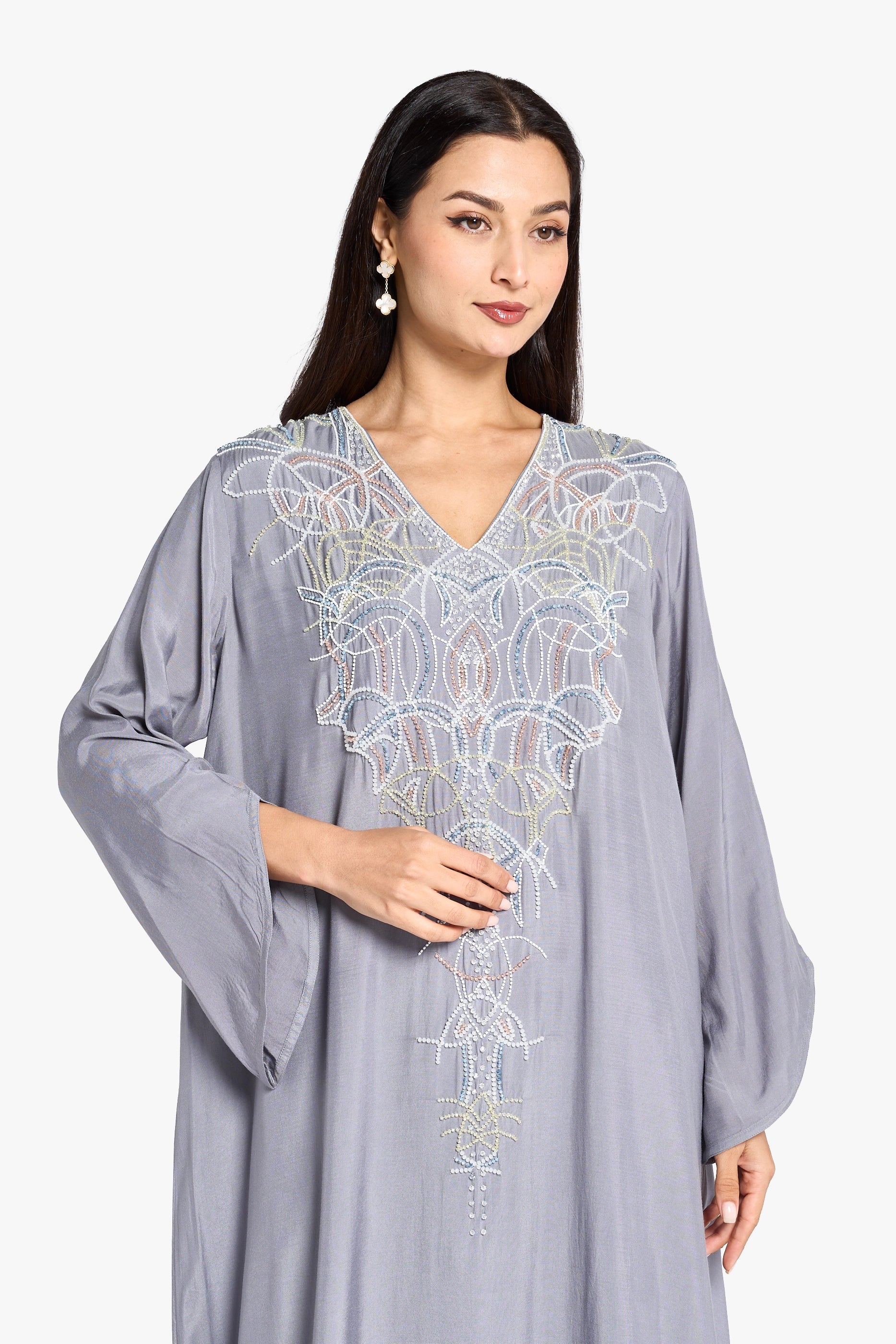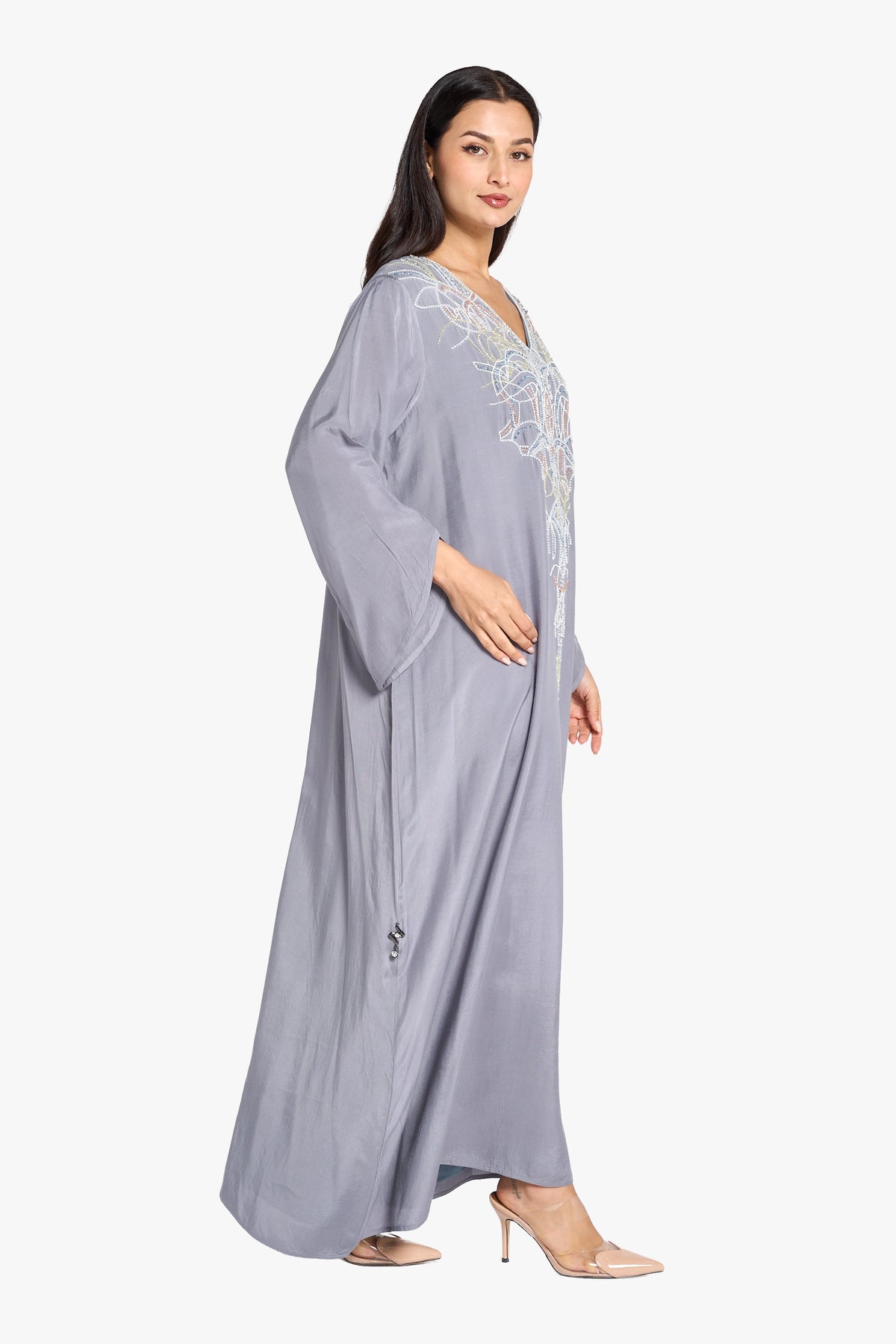 Louzan Jalabiya Linen Hand Beading Kaftan – Grey