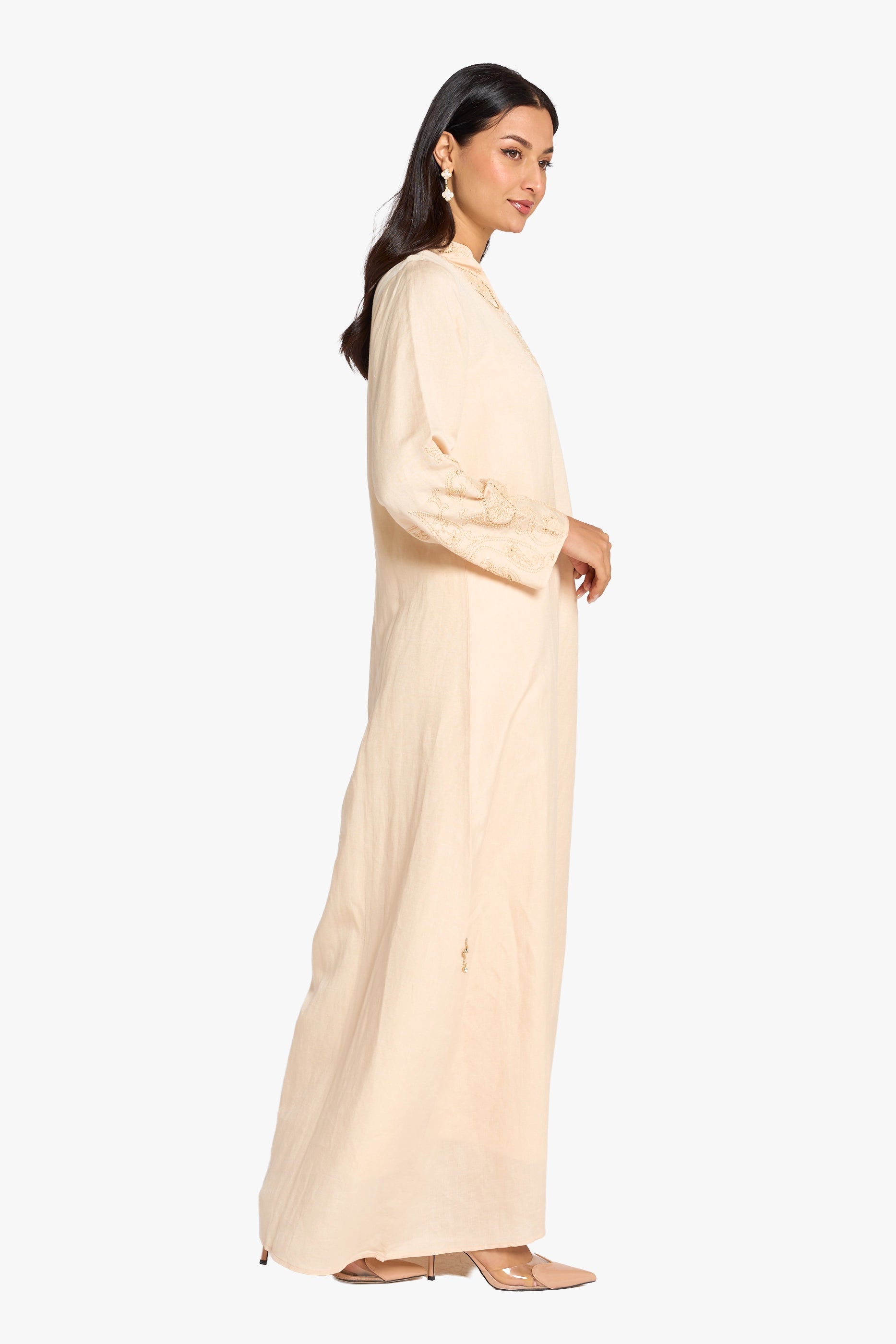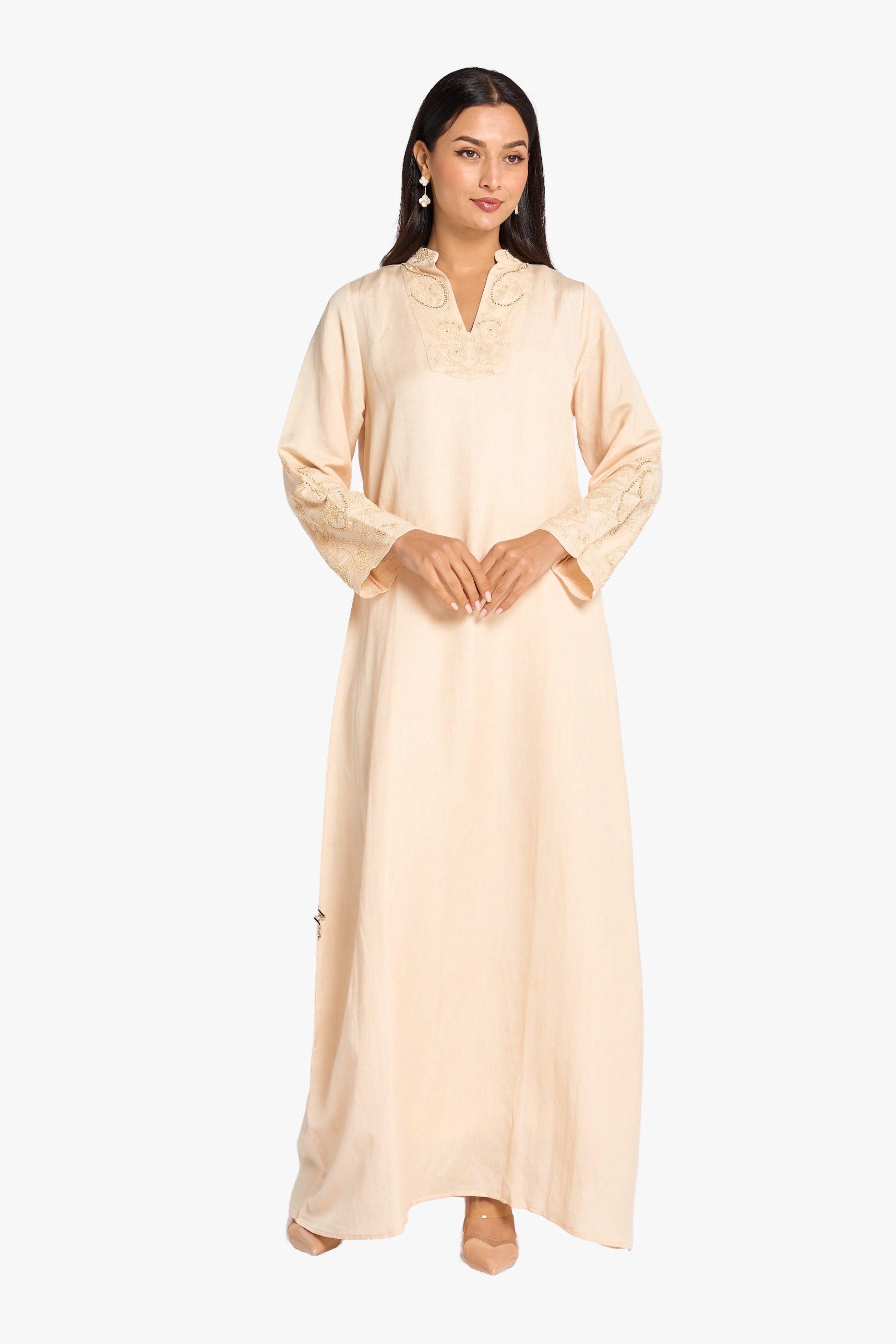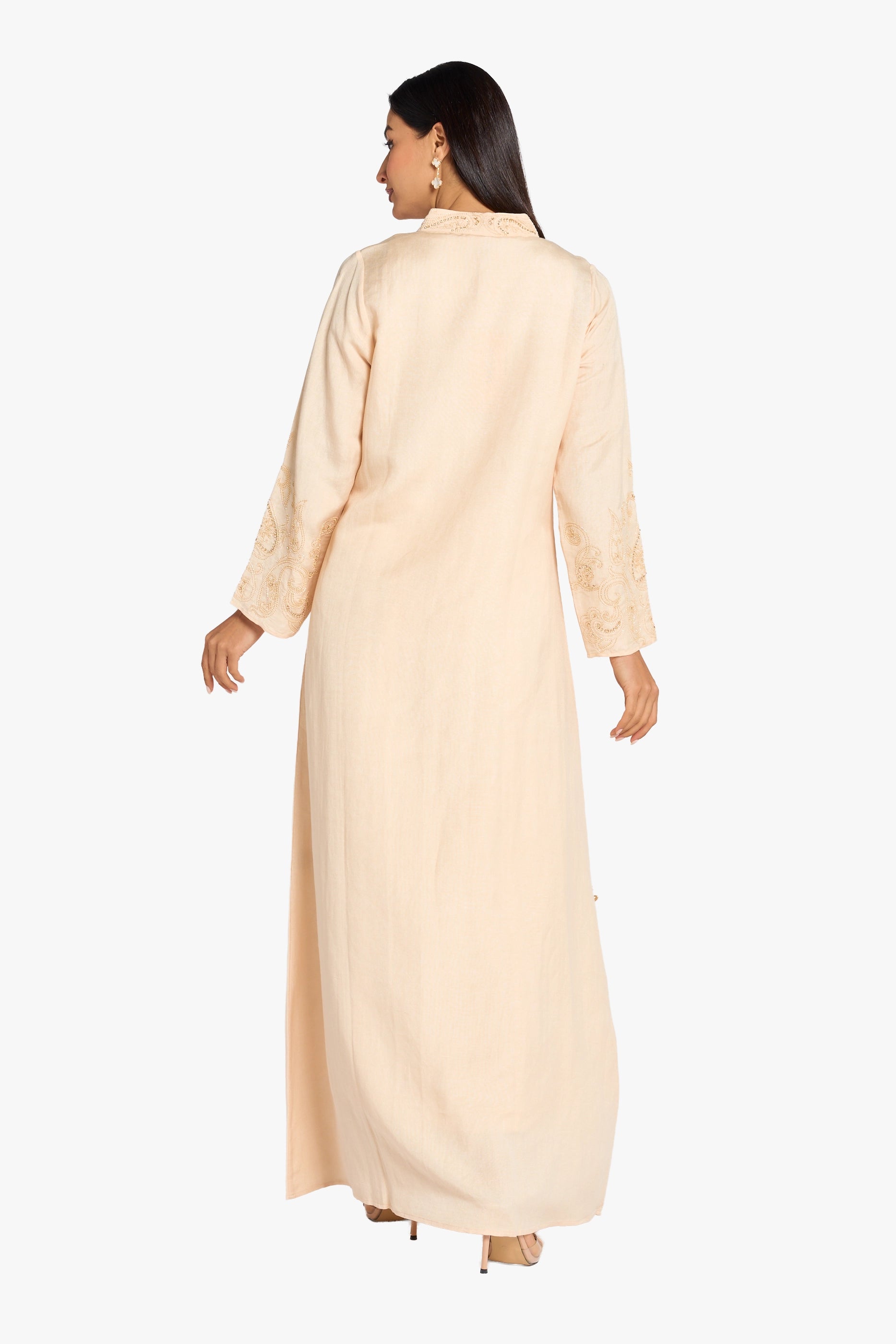 Louzan Jalabiya Linen Handwork Kaftan – Peach