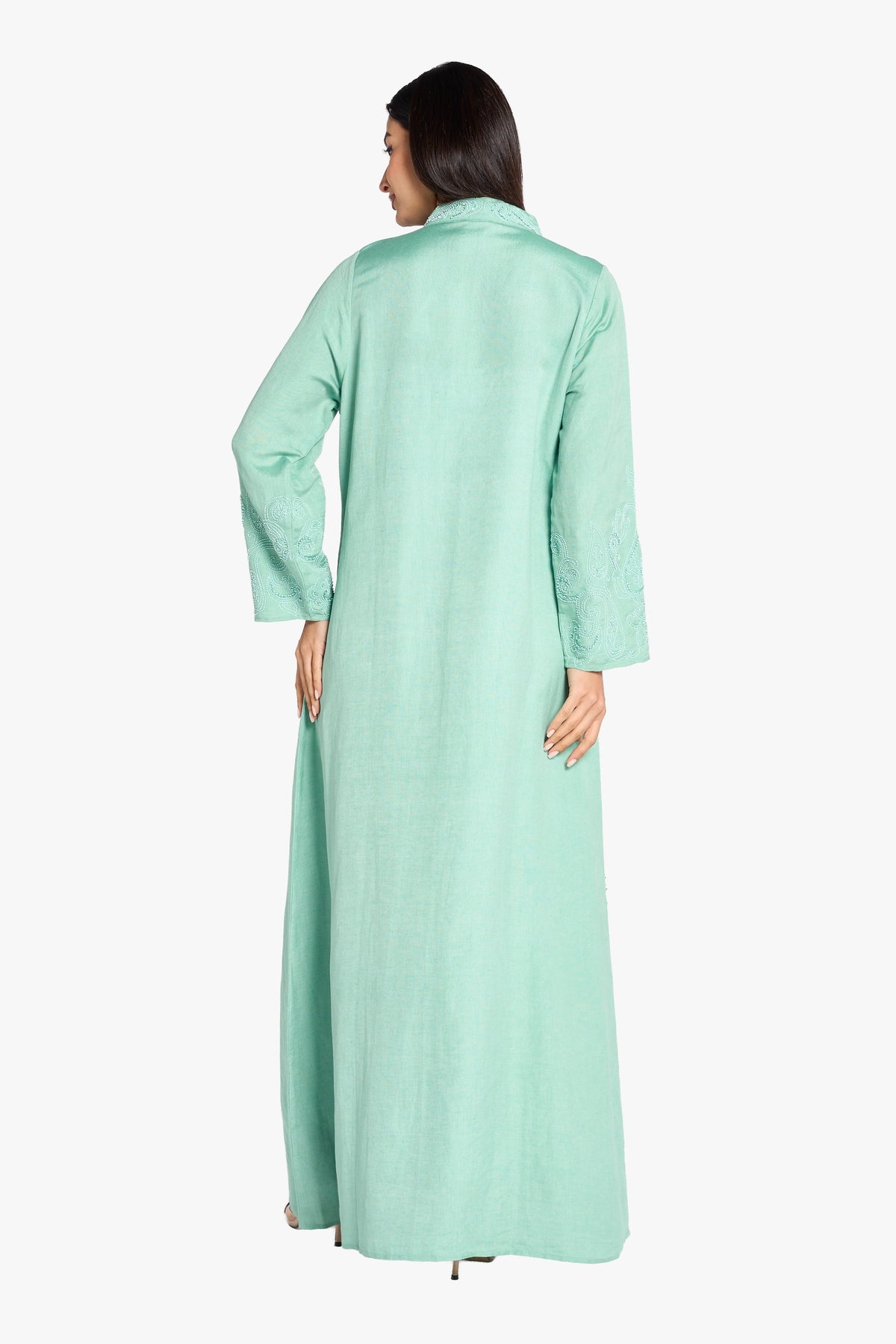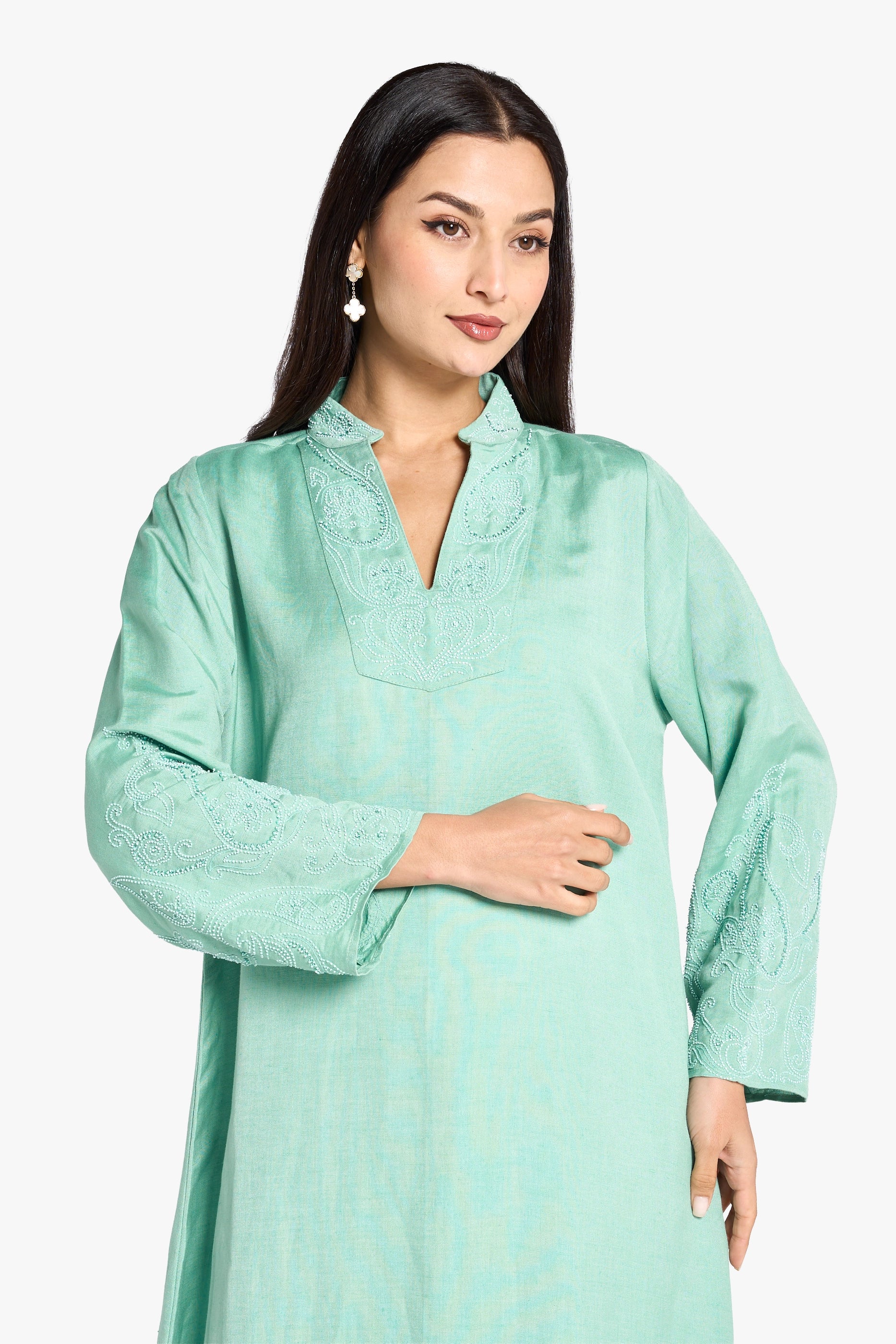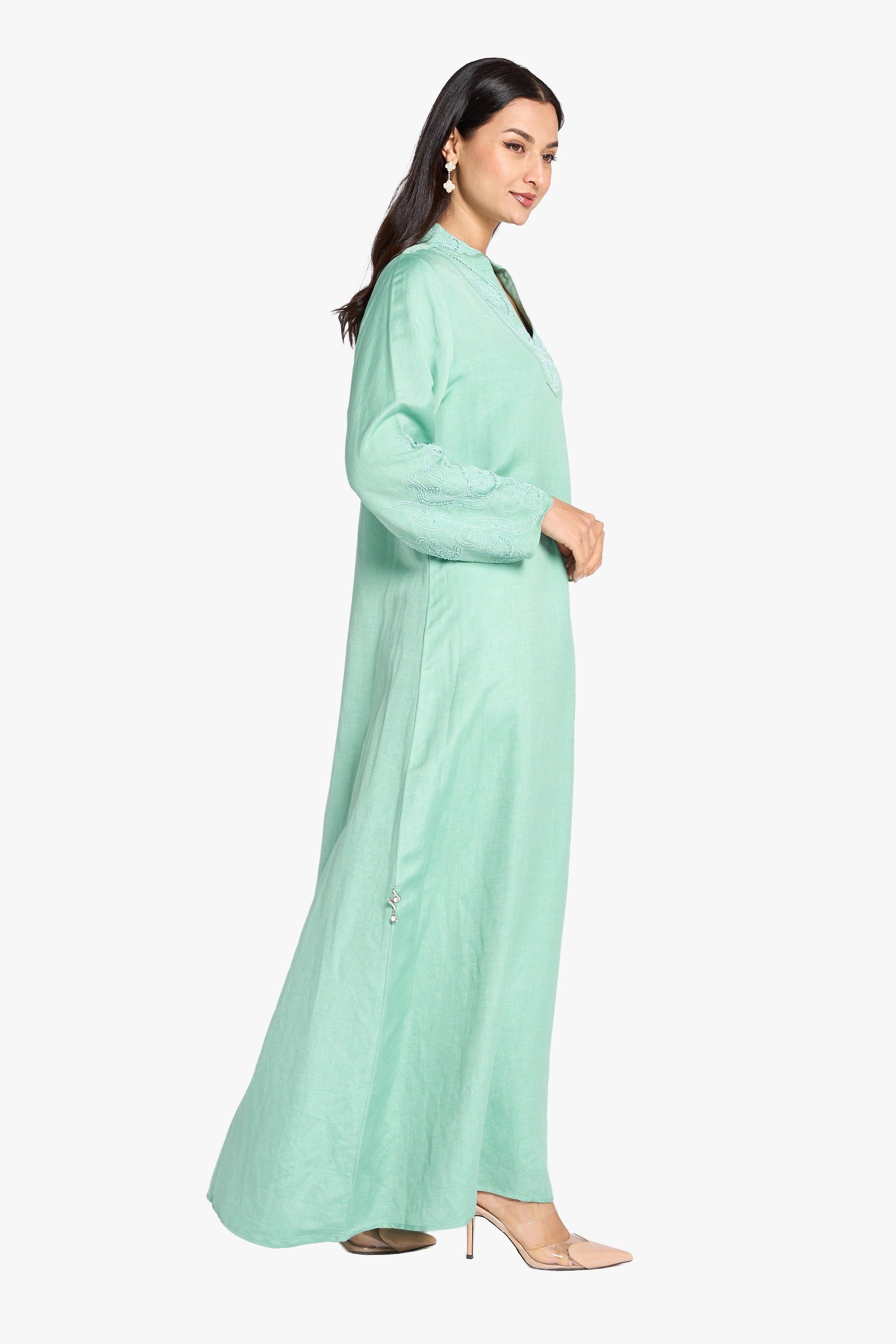 Louzan Jalabiya Linen Handwork Kaftan – Turquoise