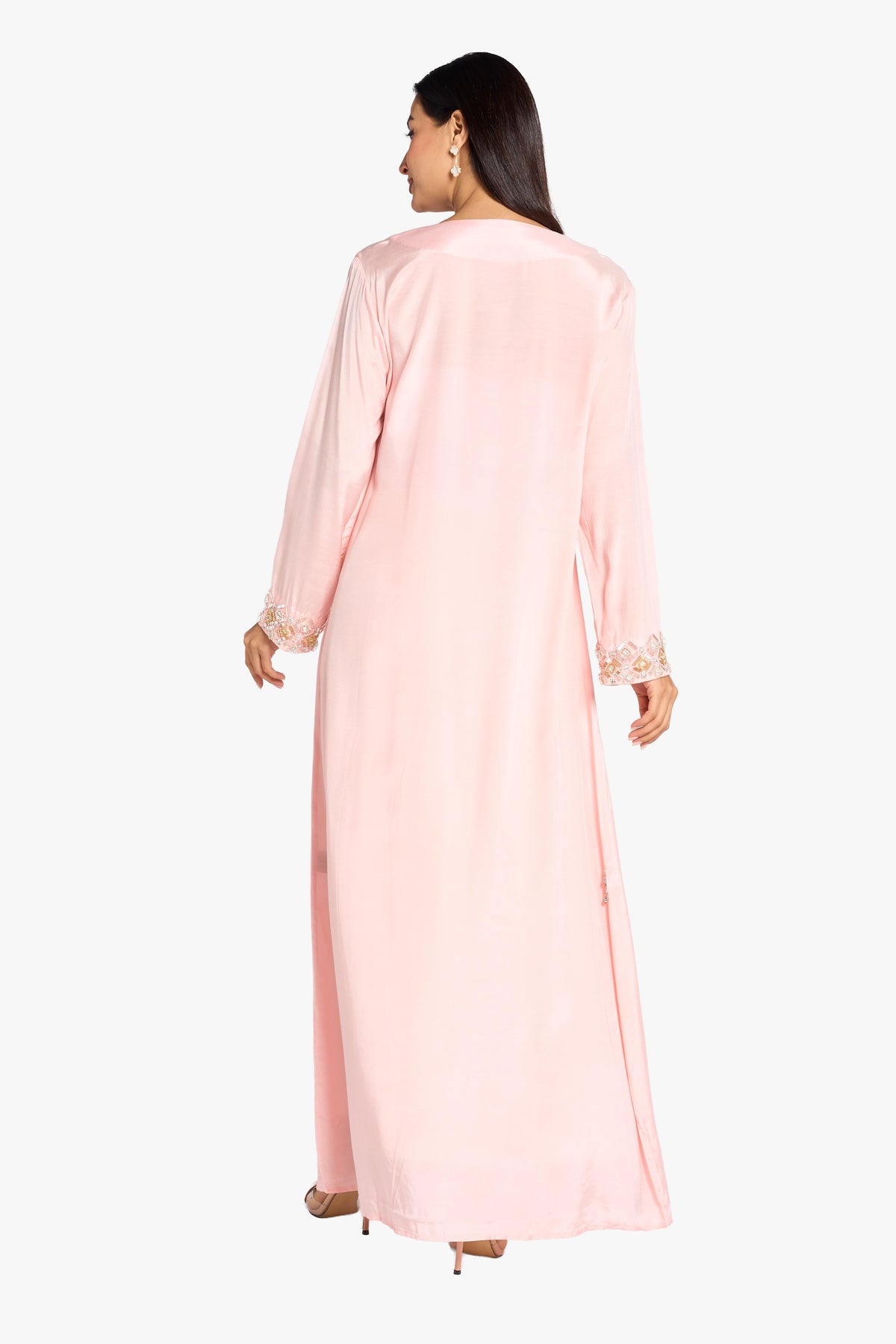 Louzan Jalabiya Silk Hand Beading Kaftan – Pink