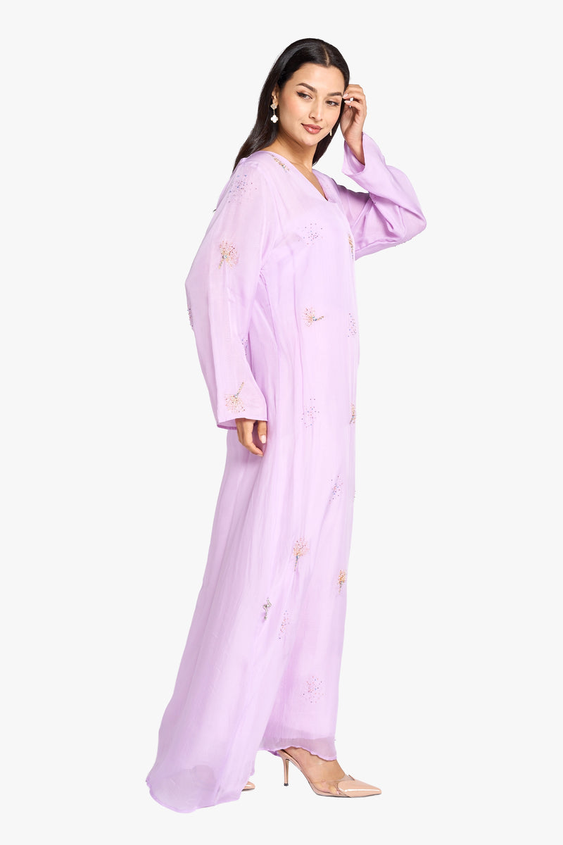 Louzan Jalabiya Organza Handwork Kaftan – Lavender