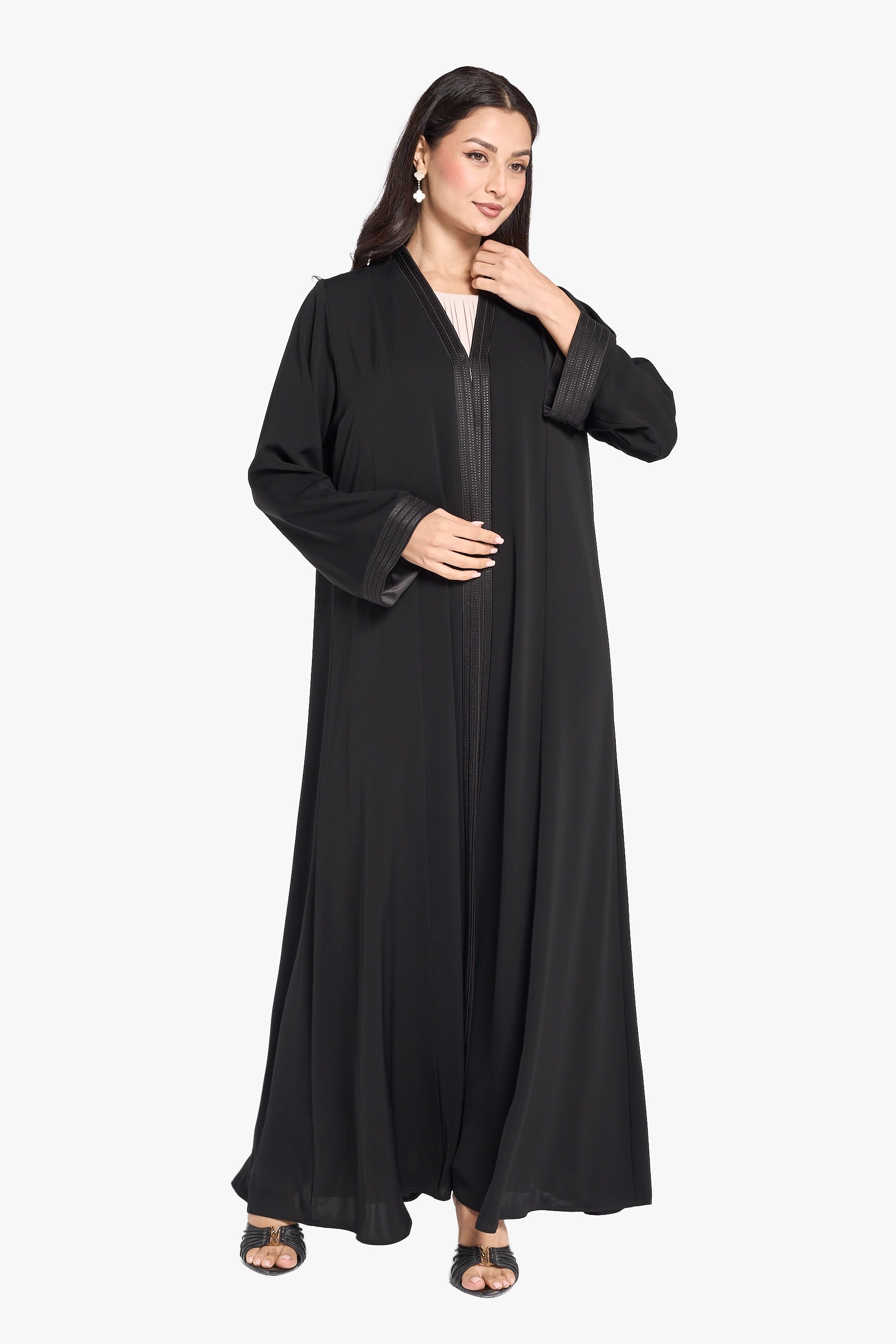 Louzan Abaya – Nida Fabric with Satin Front Placket