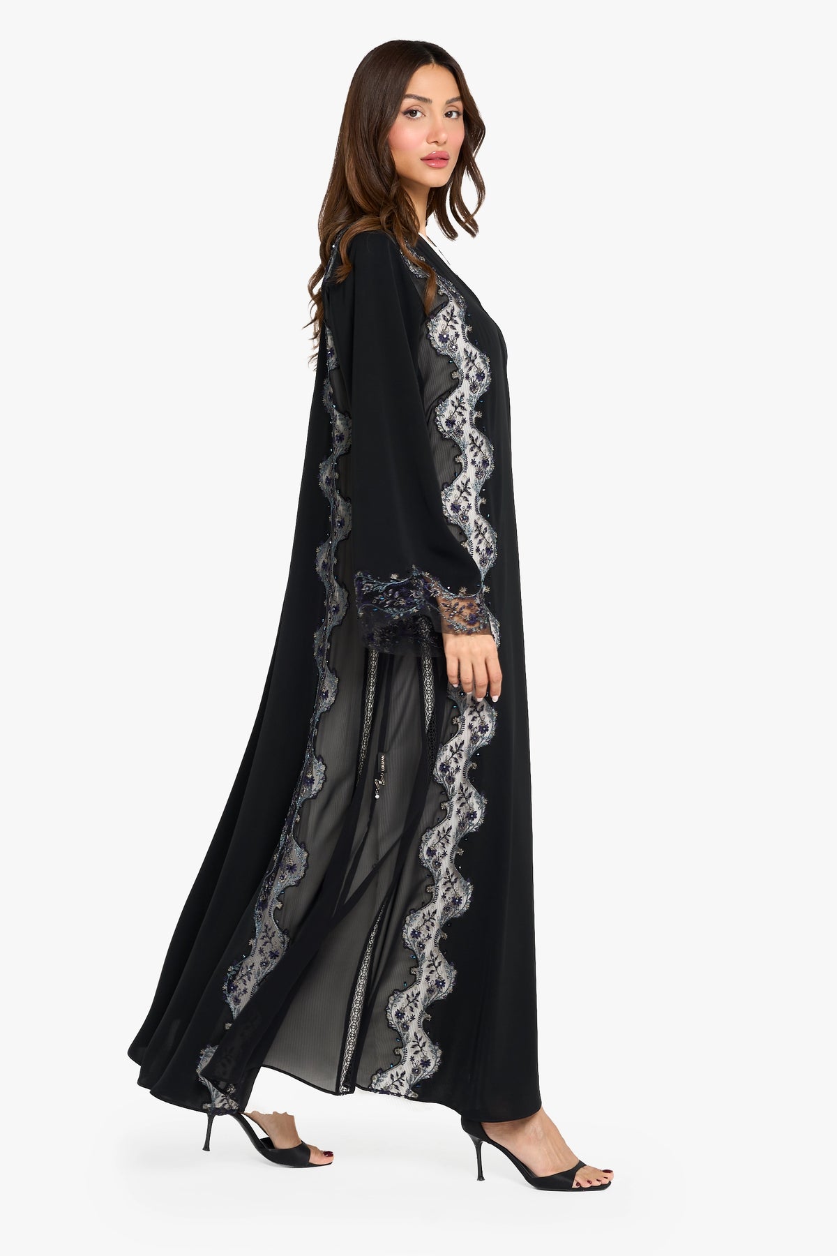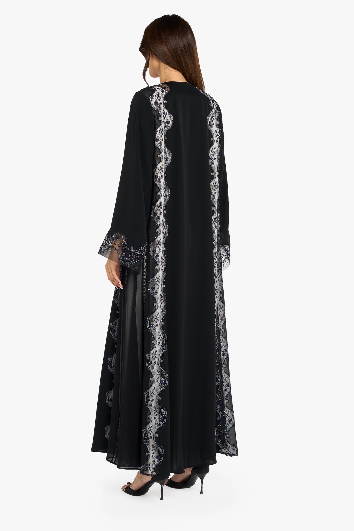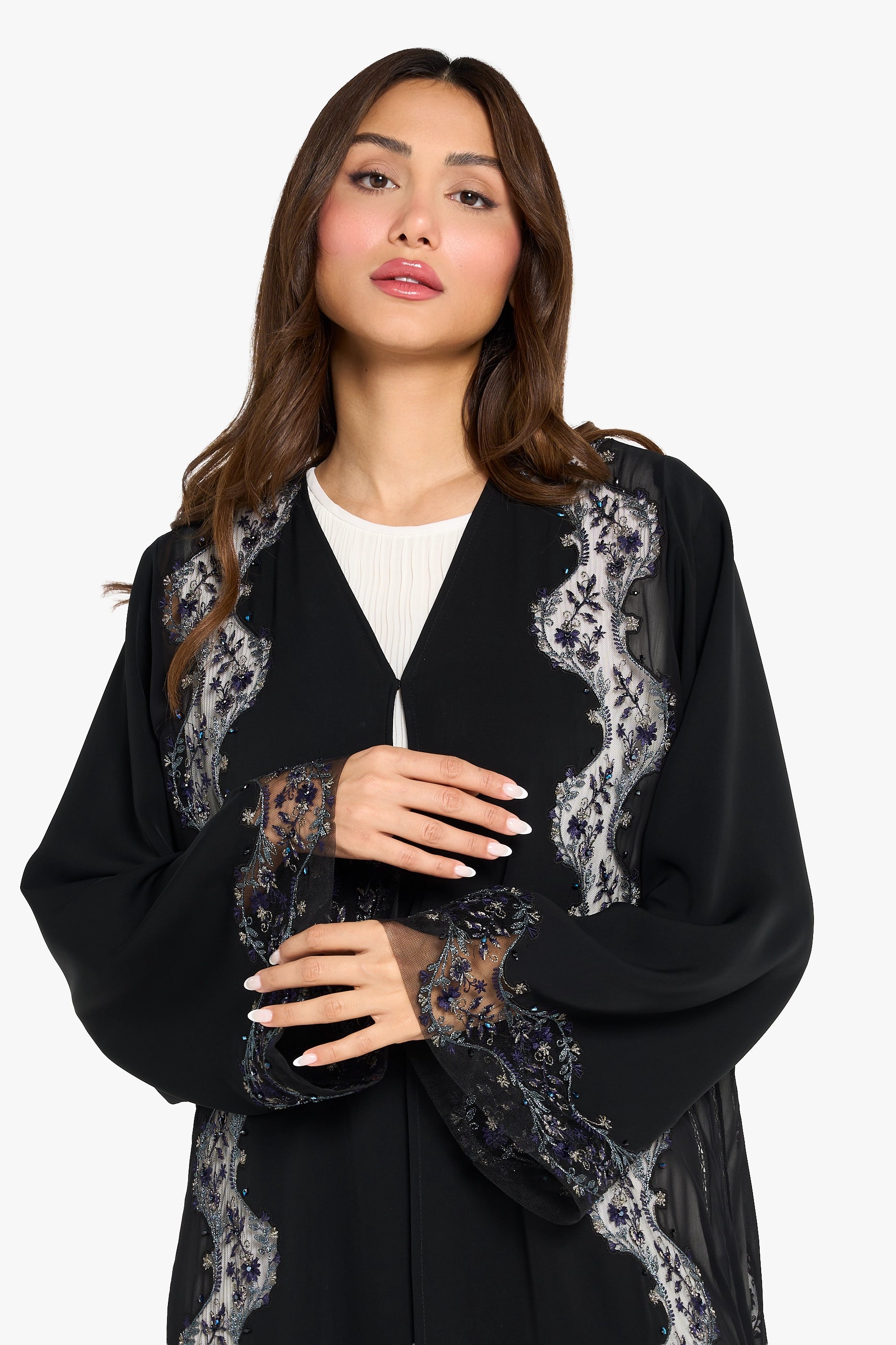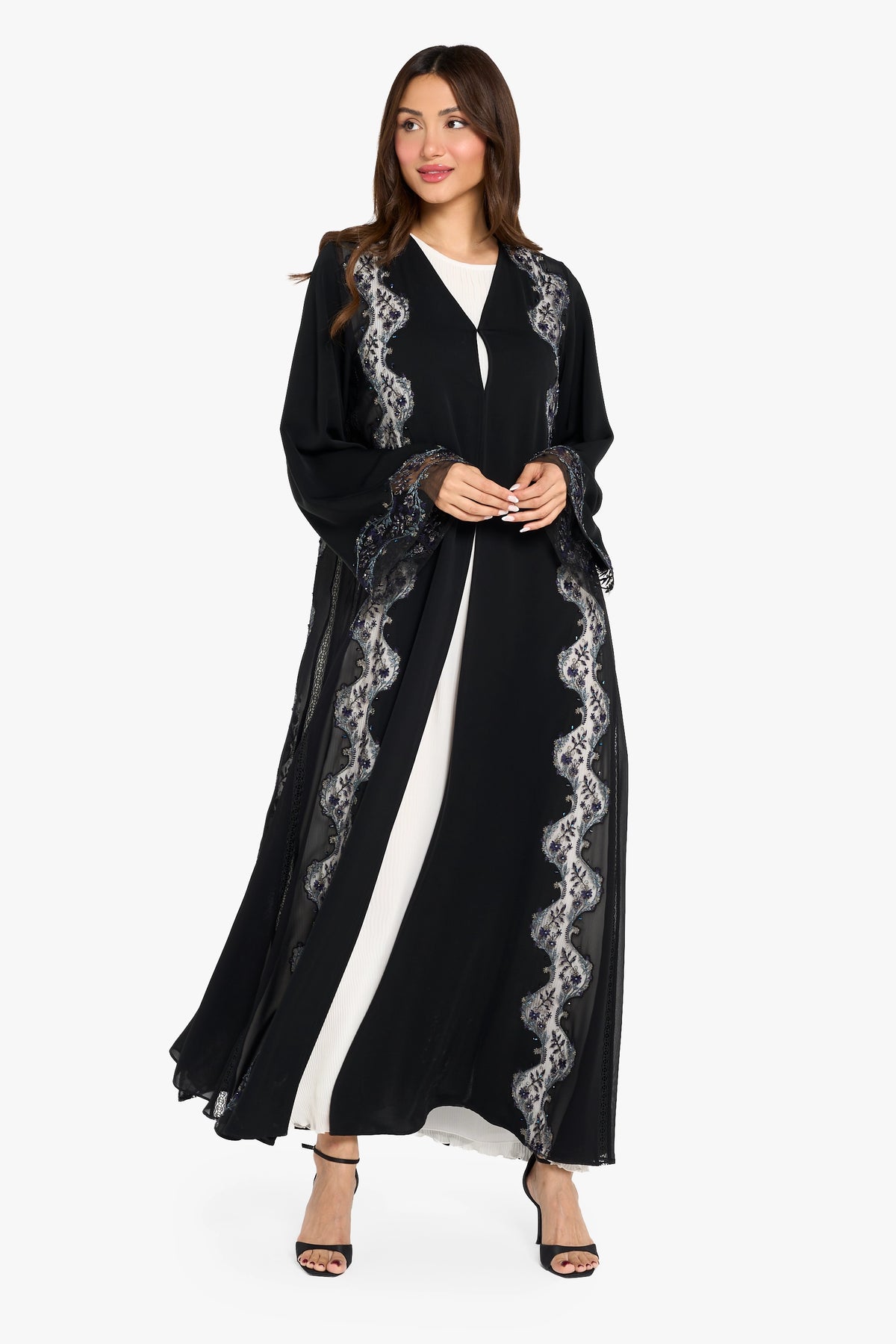 Louzan Abaya Computer Embroidery with Crystals – Black