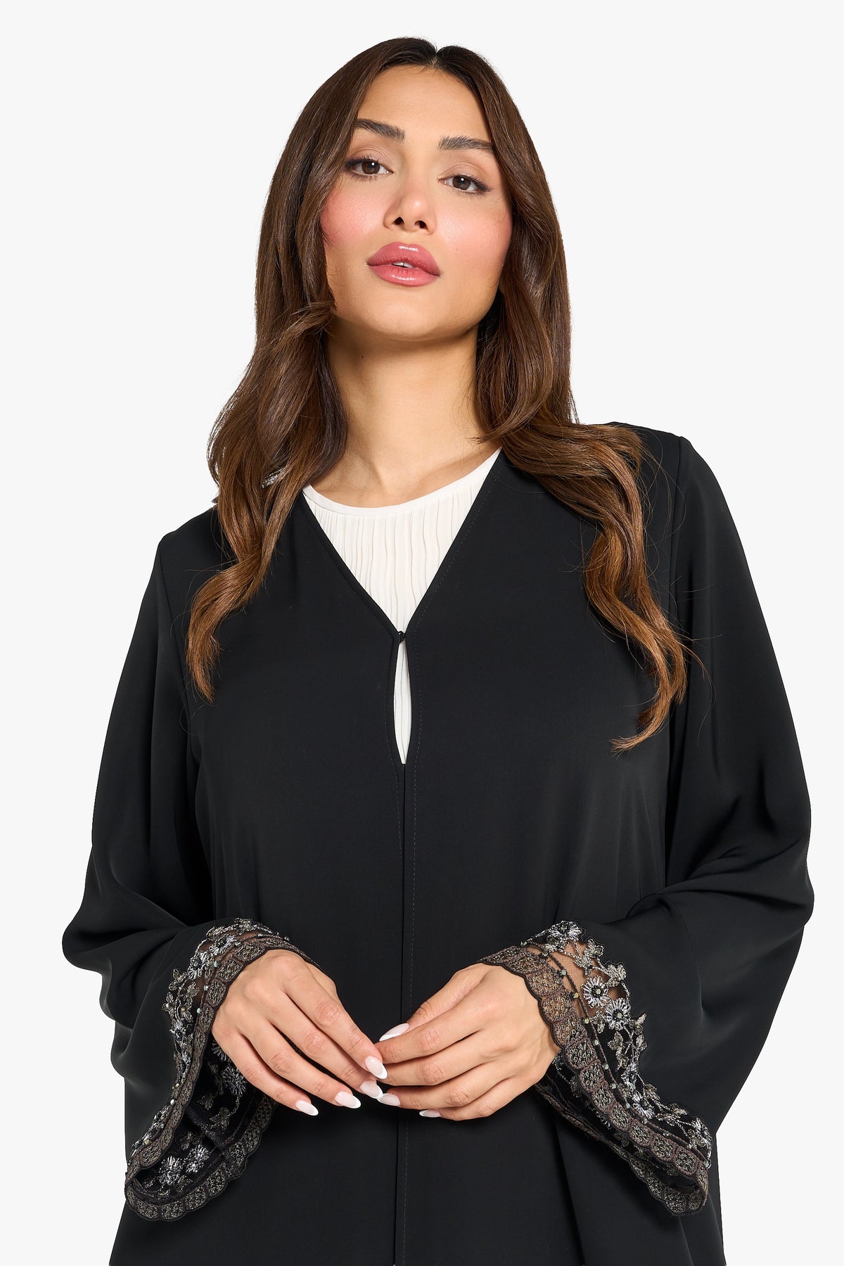 Louzan Abaya Geometric Floral Embroidery – Black