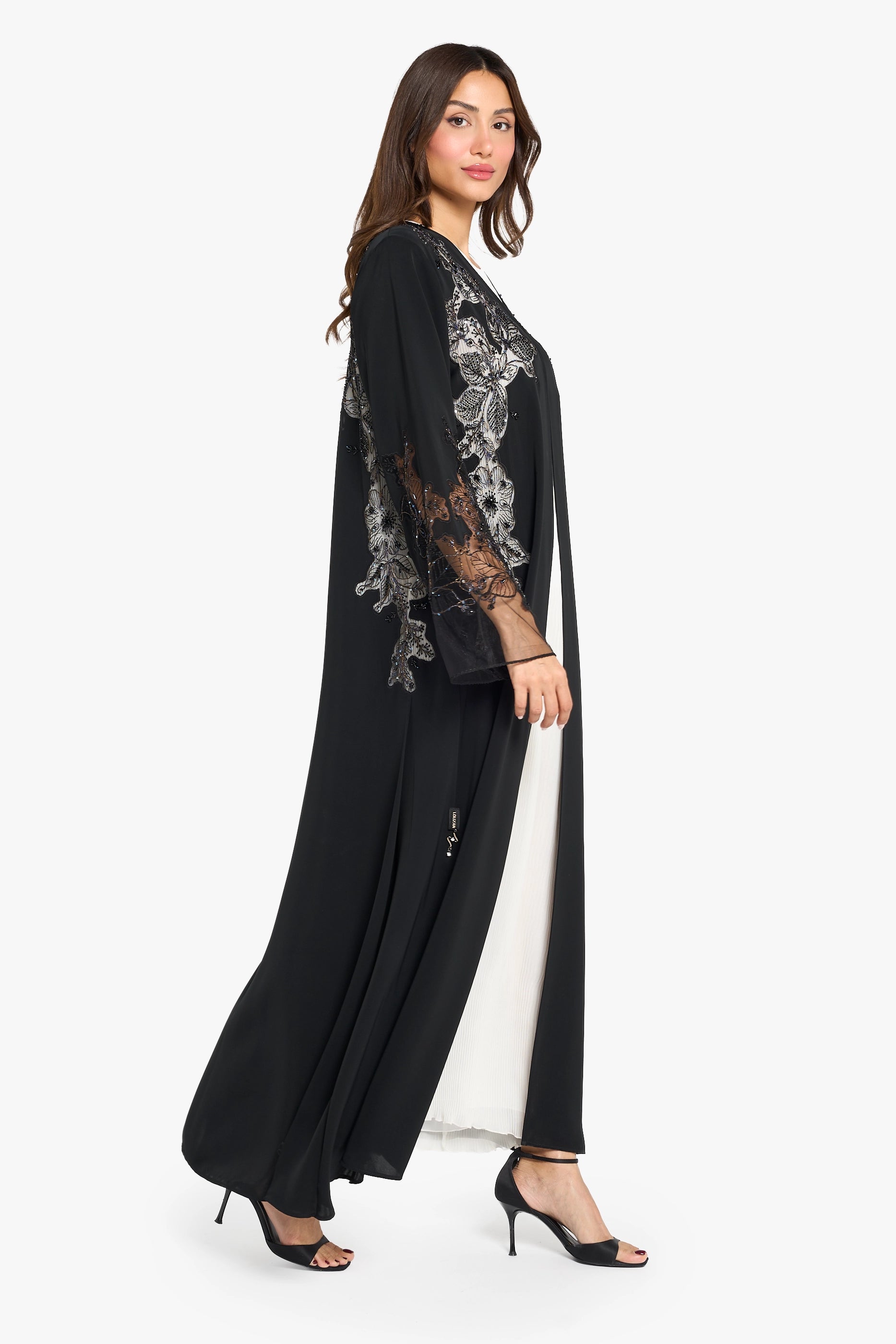 Louzan Abaya Floral Dori Embroidery – Black
