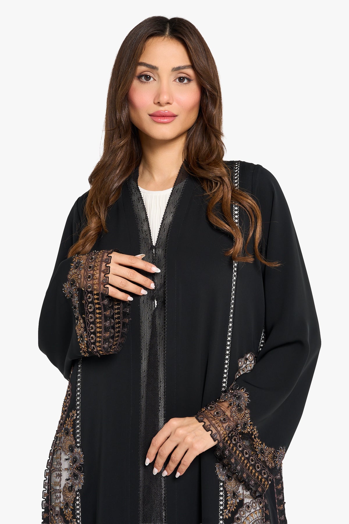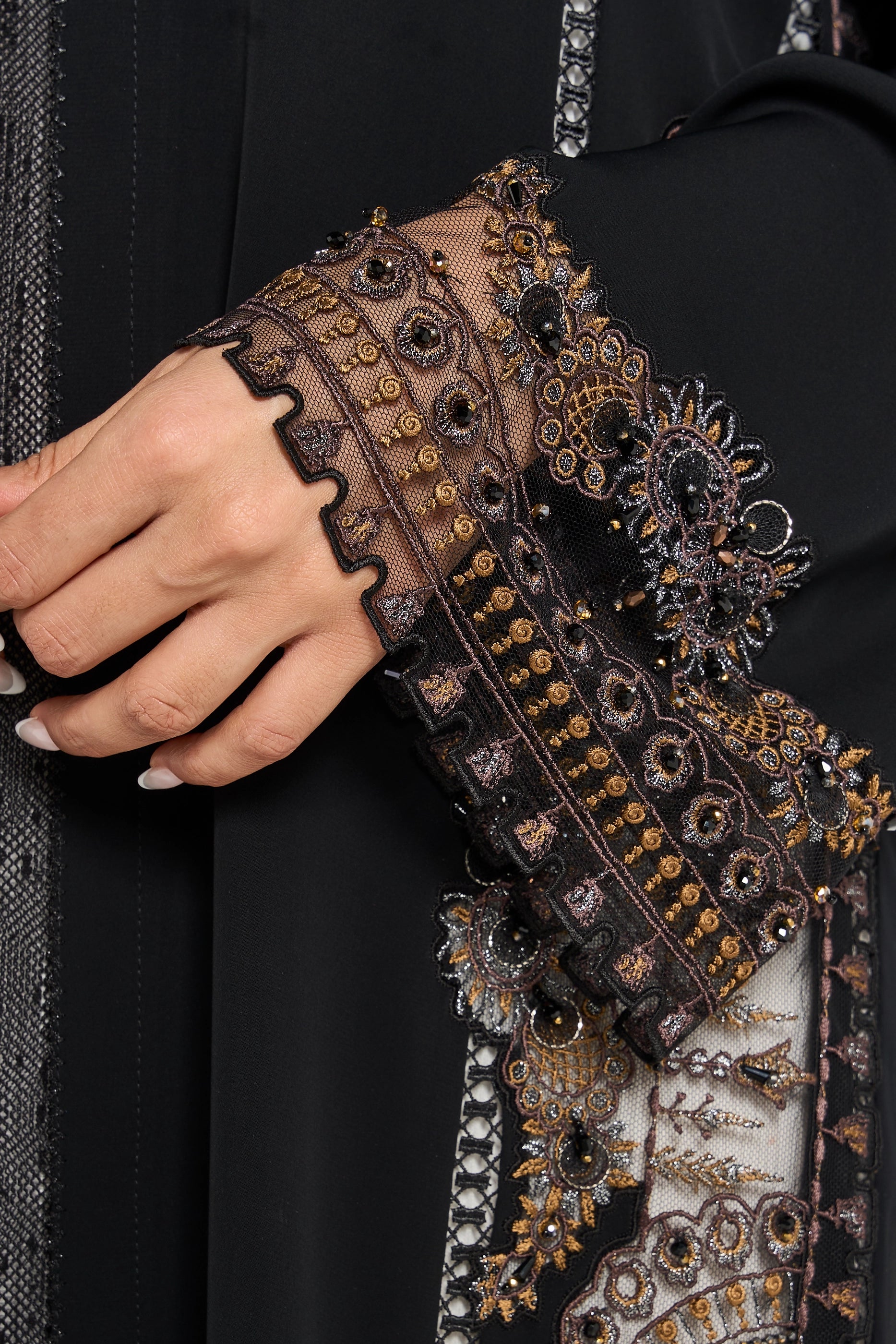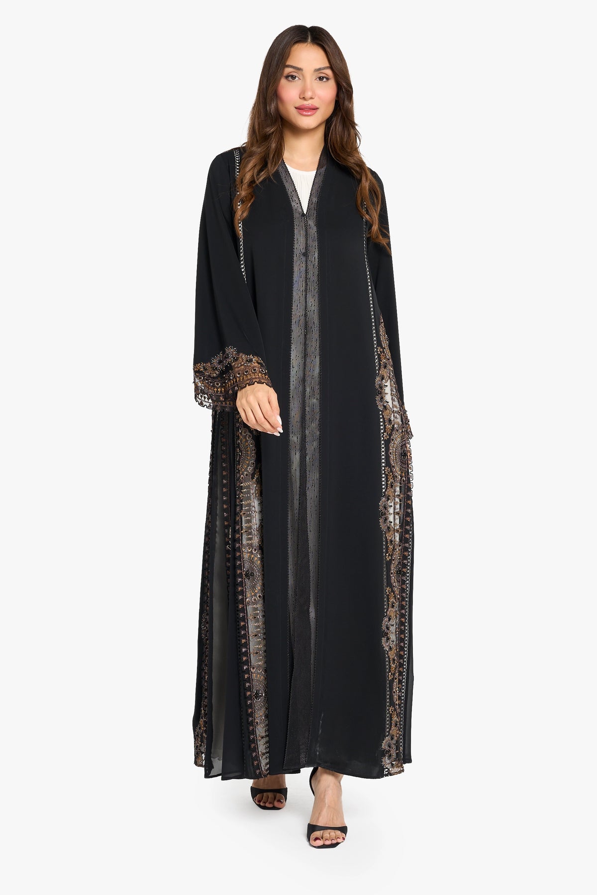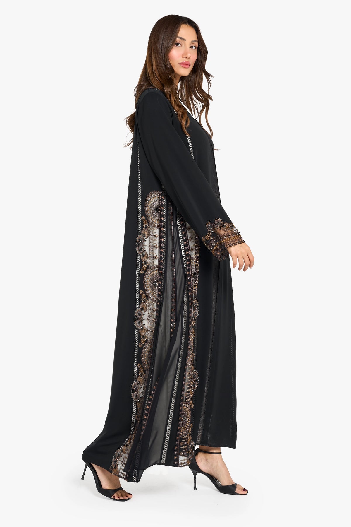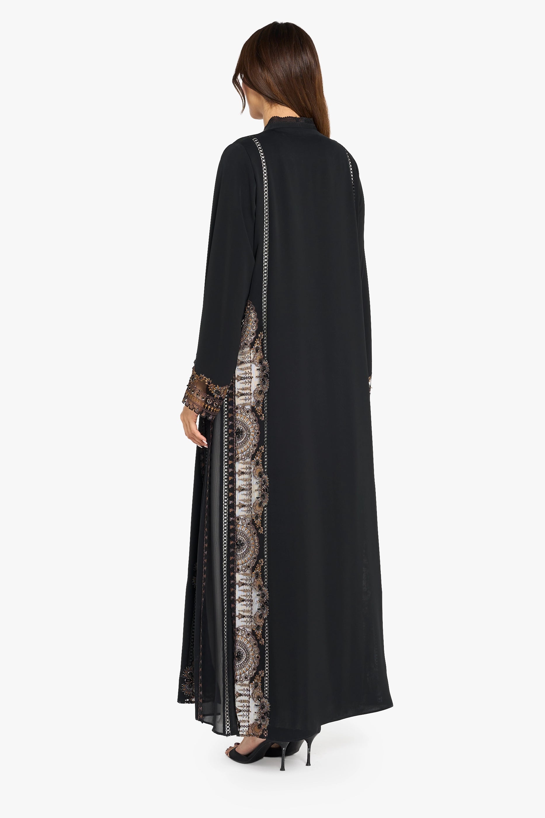 Black abaya with floral ethnic floral pattern embroidery highlighting with 3d crystal work