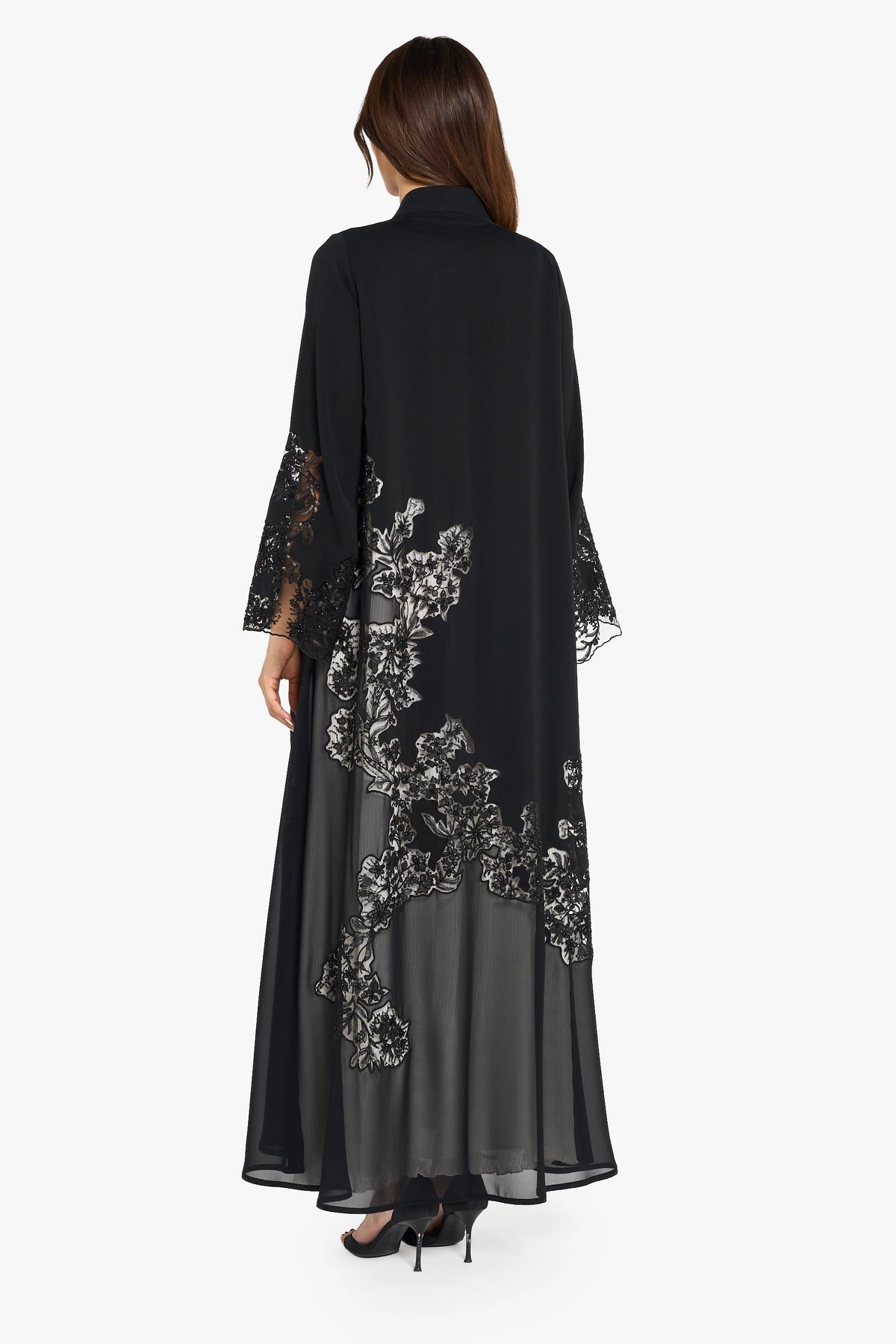 Louzan Abaya Floral Embroidery with Chiffon – Black