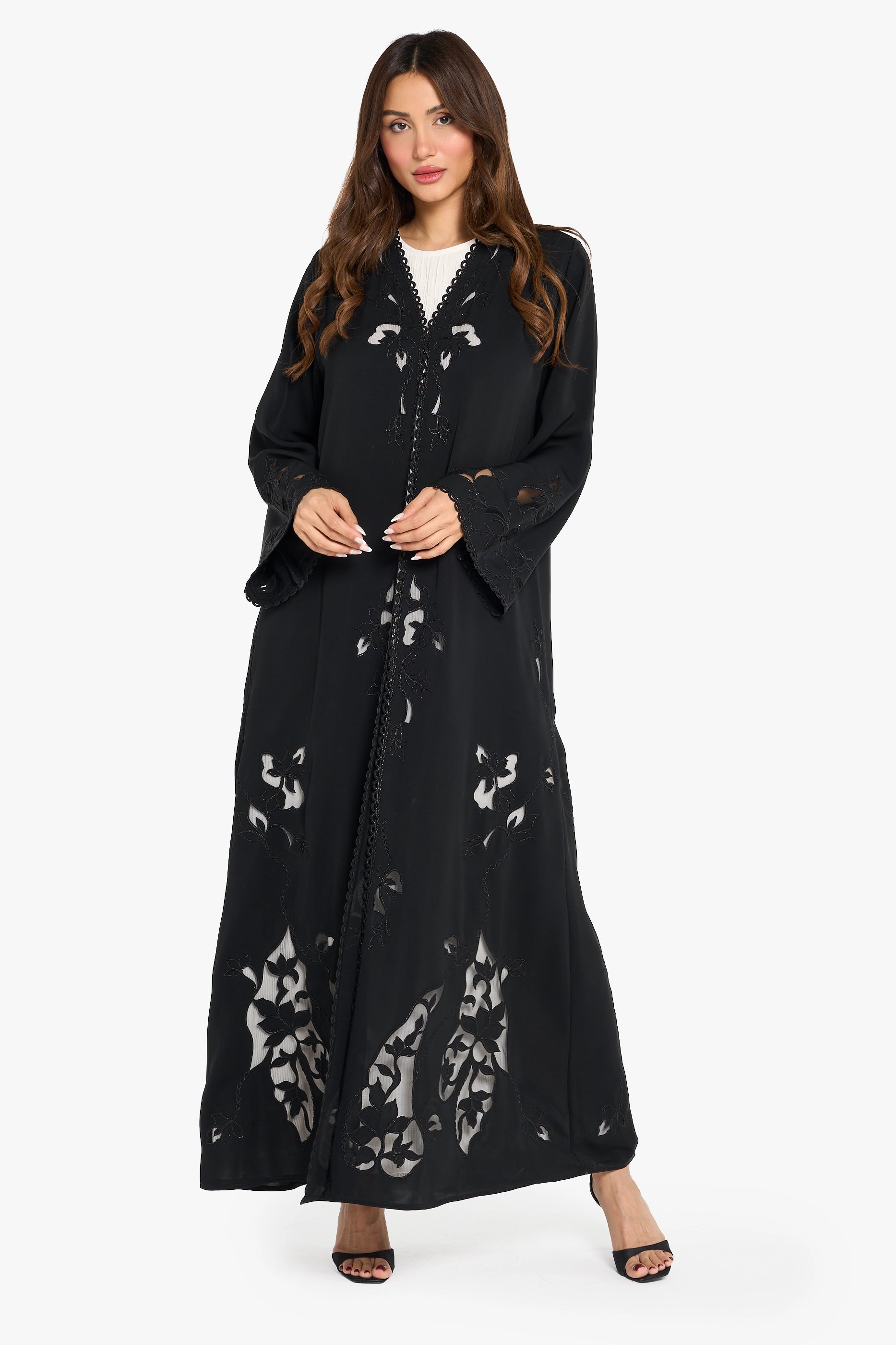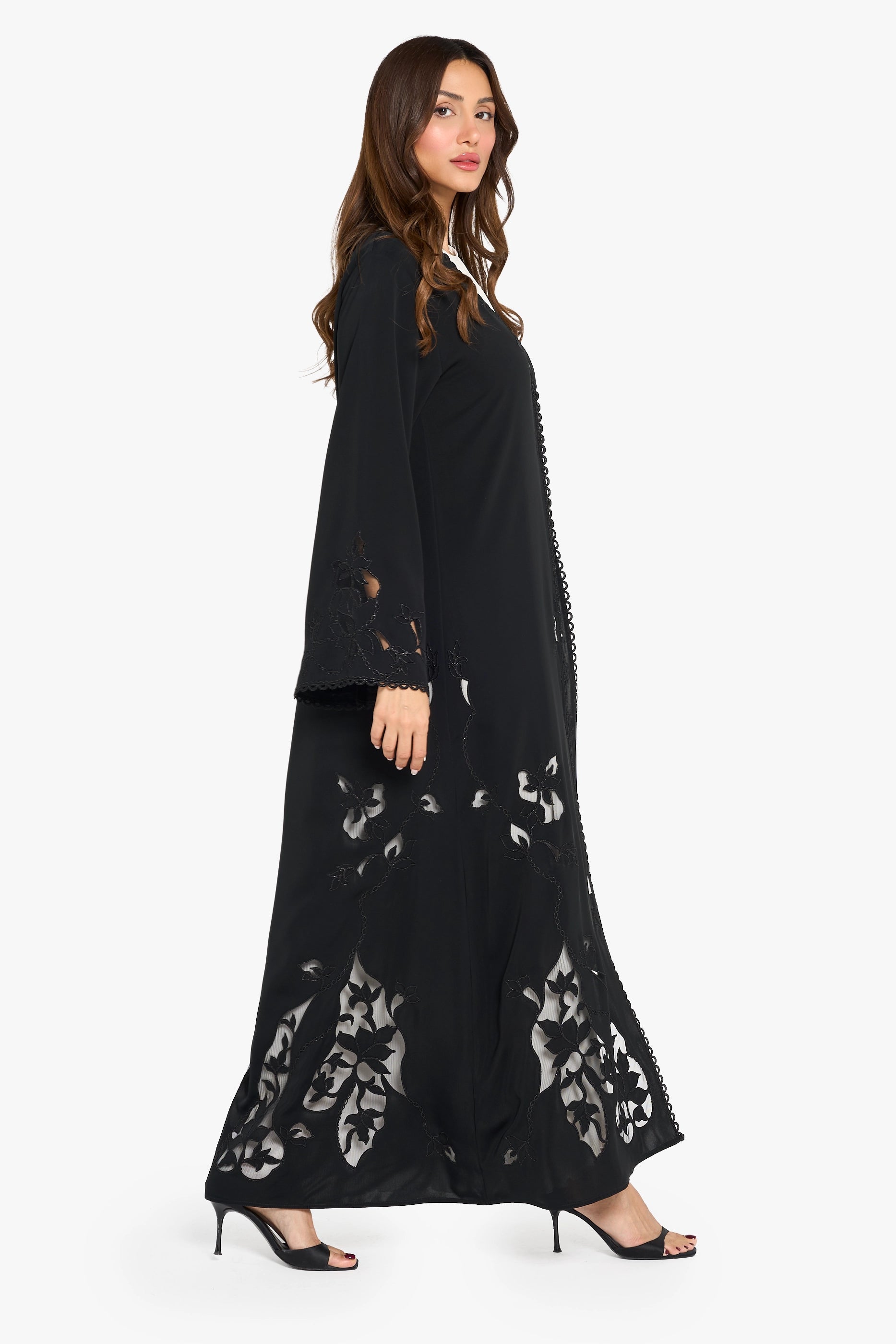 Louzan Abaya Laser Cut Floral Design – Colored