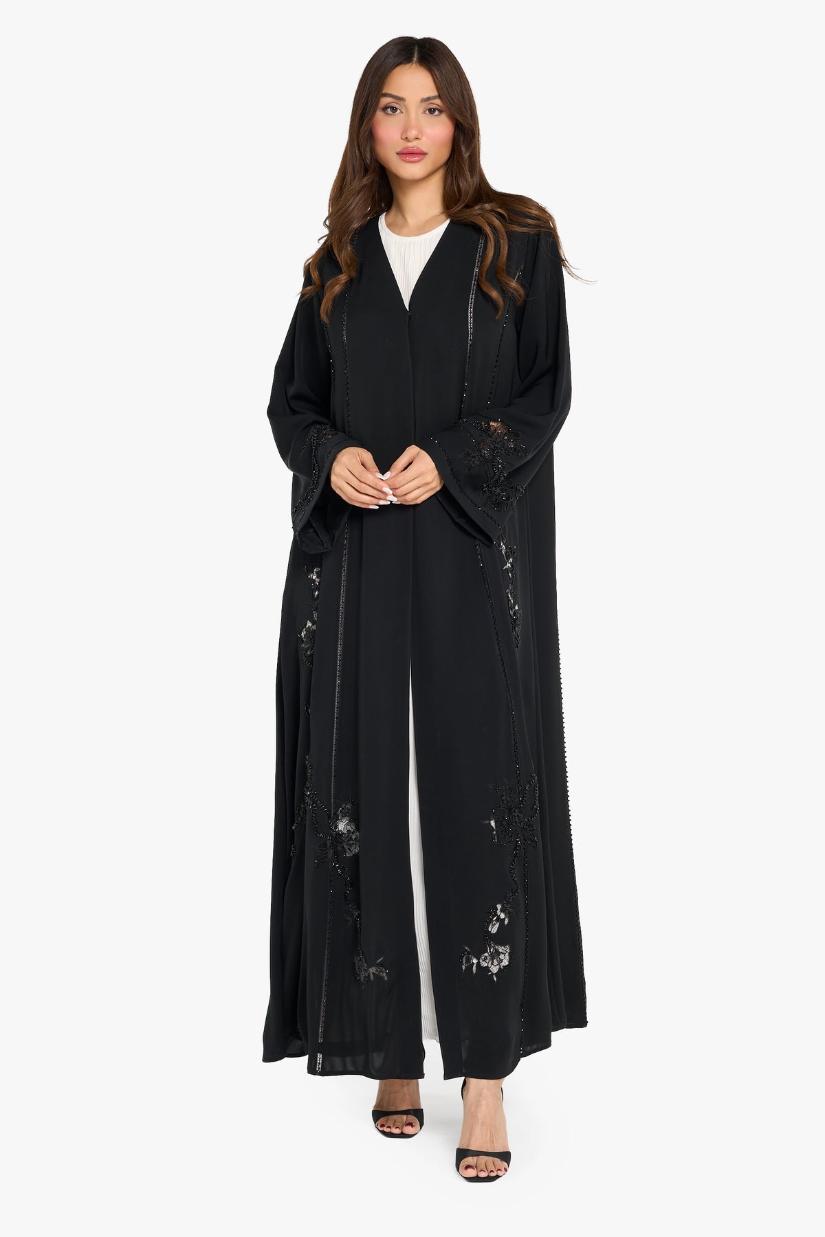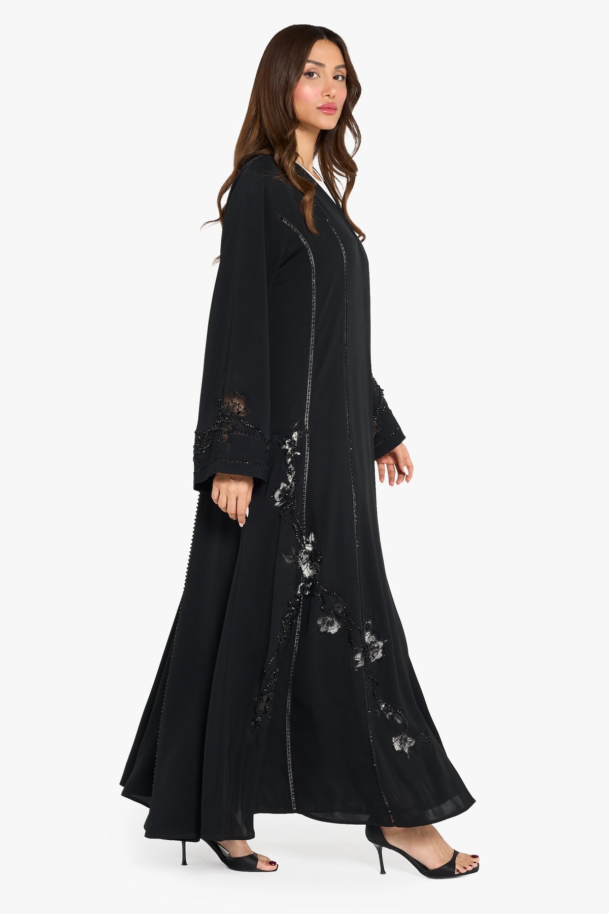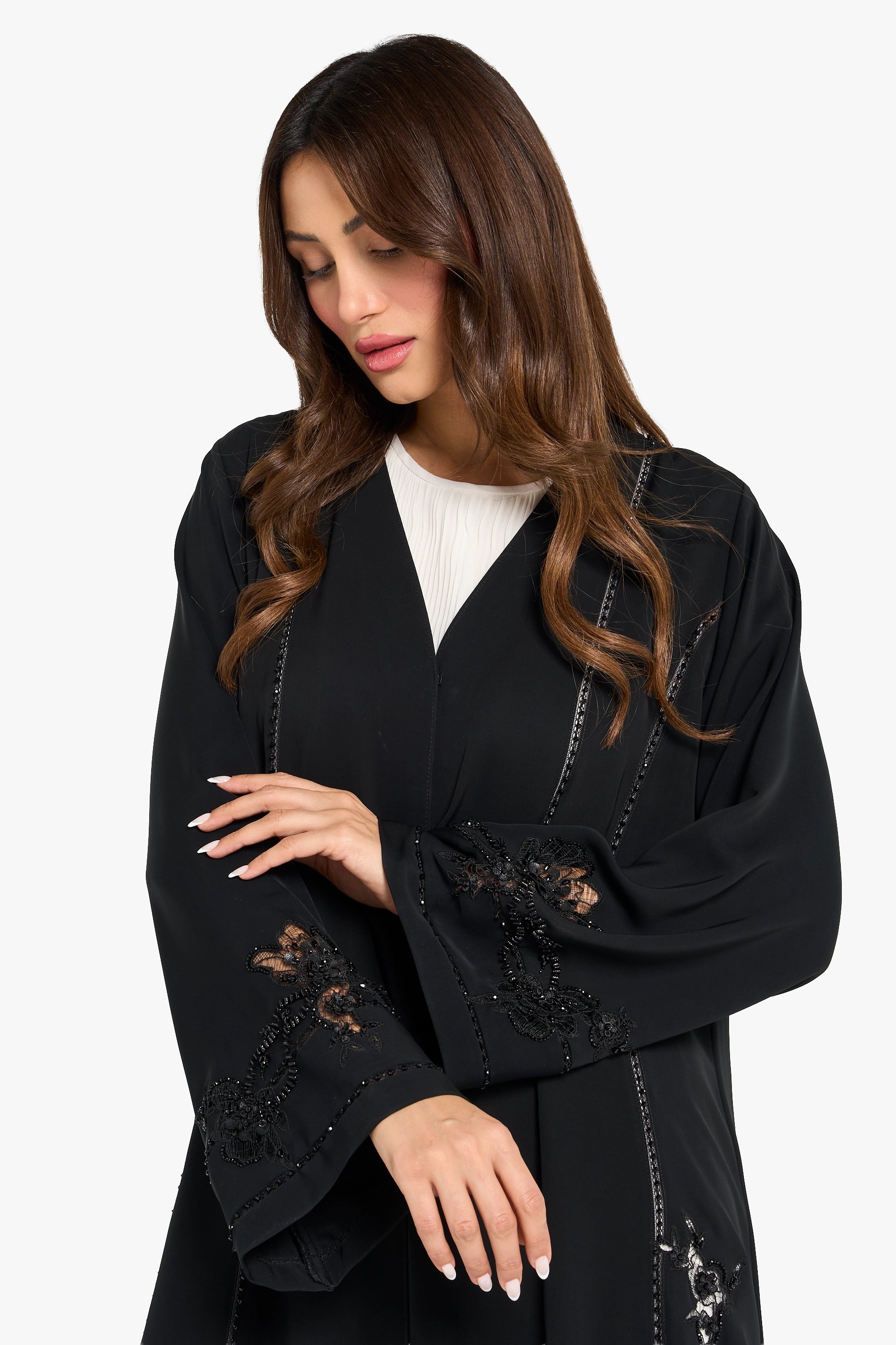 Louzan Abaya Lace Embellished Detail – Black