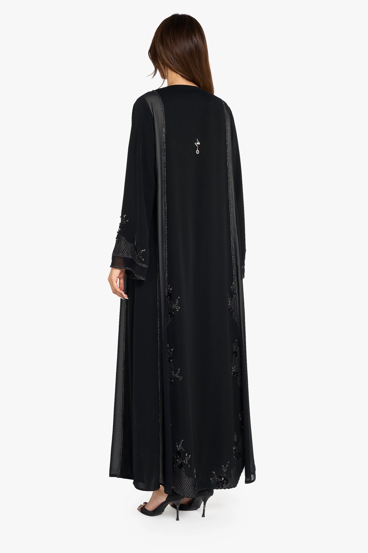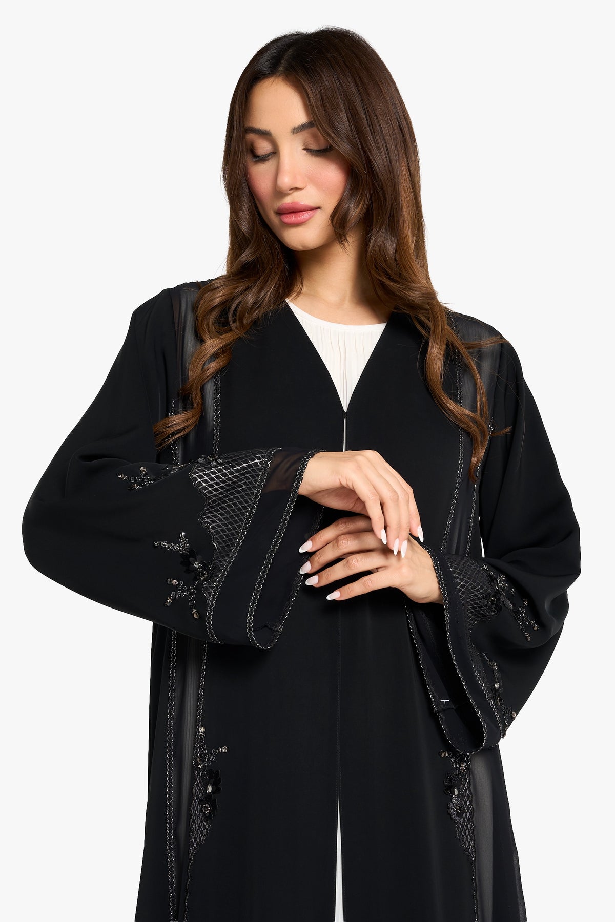Louzan Abaya Dori Embroidery with Chiffon – Black