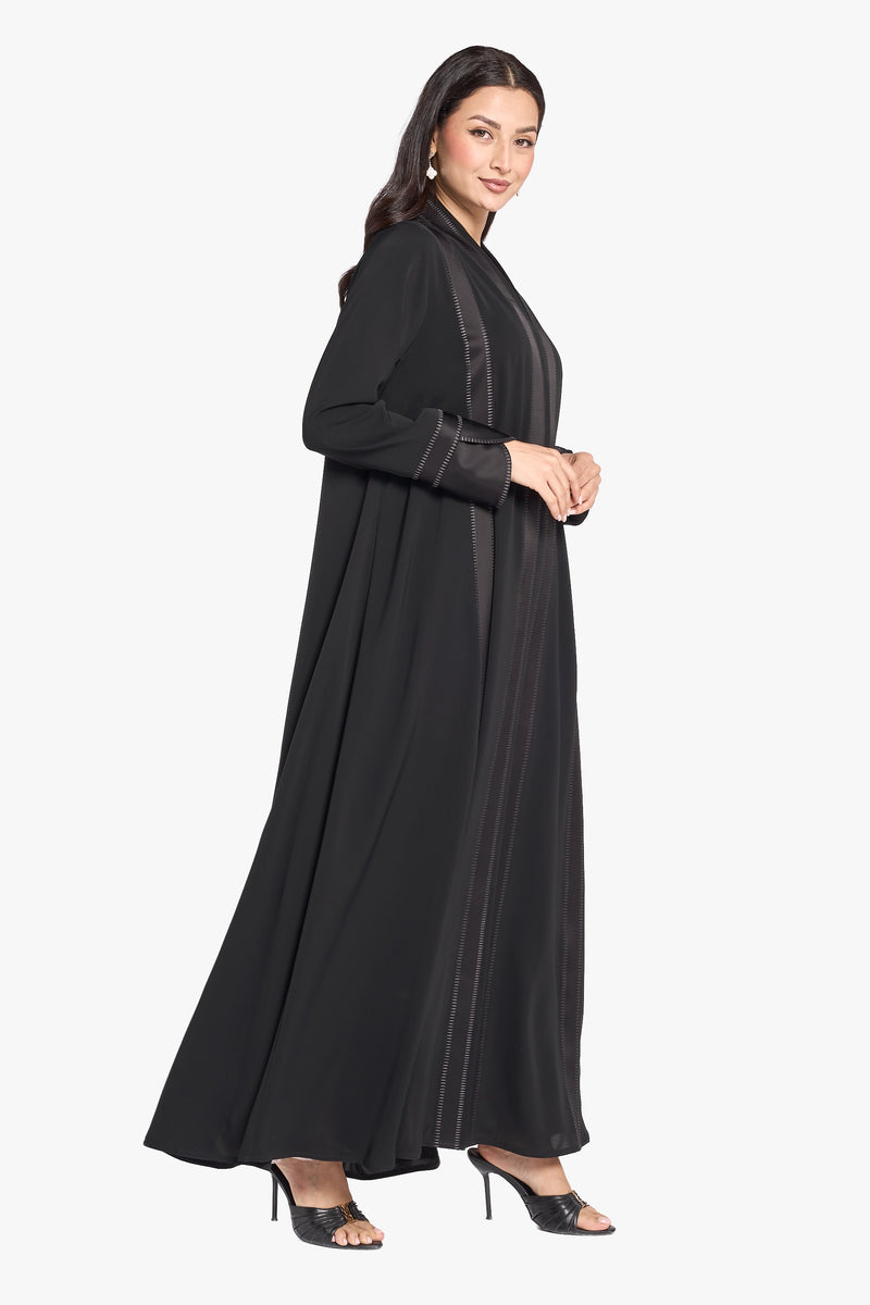 Louzan Abaya – Nida Fabric with Satin Piping Detail