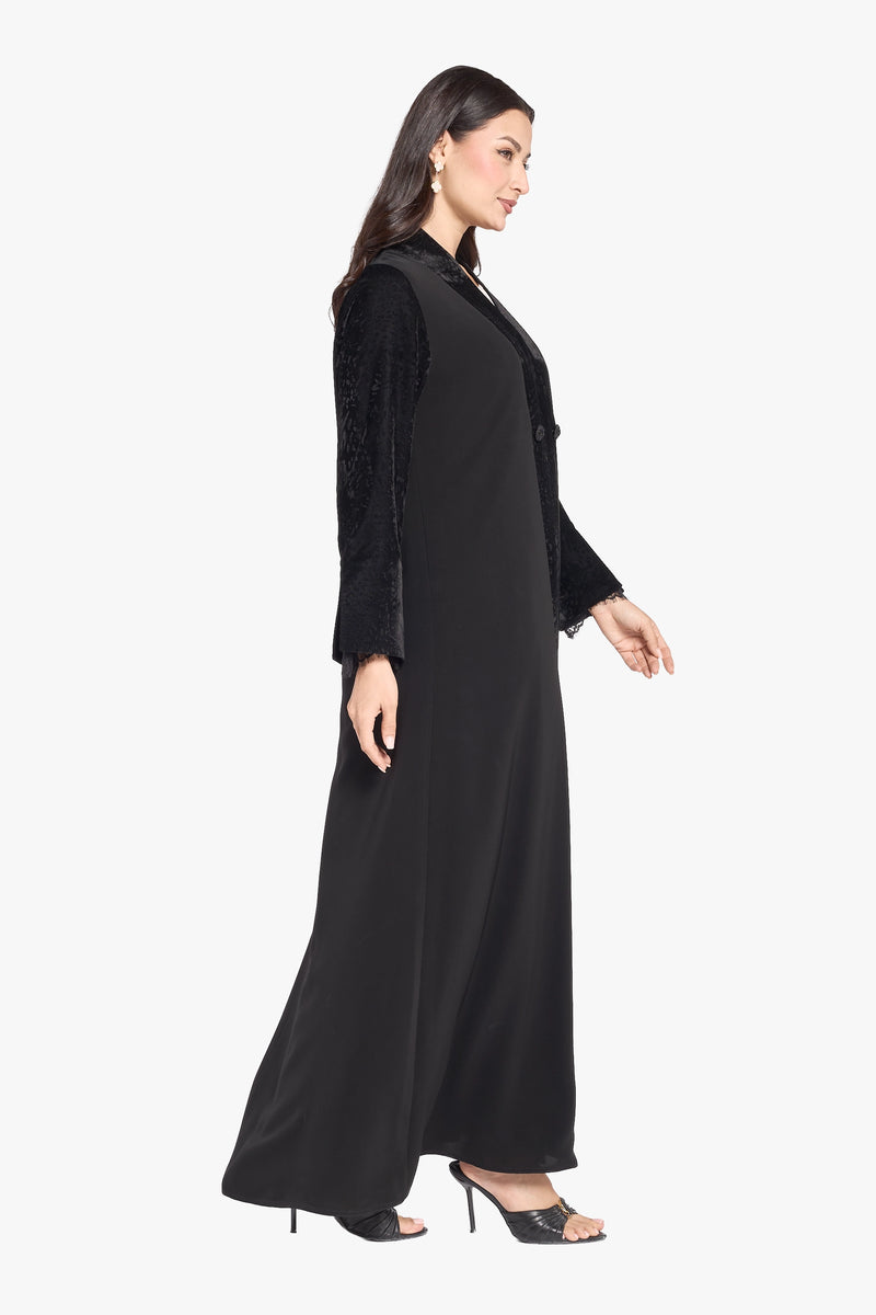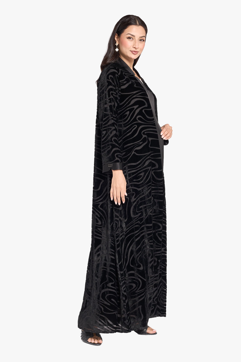 Louzan Abaya – Soft Crepe with Velvet Jacquard Design