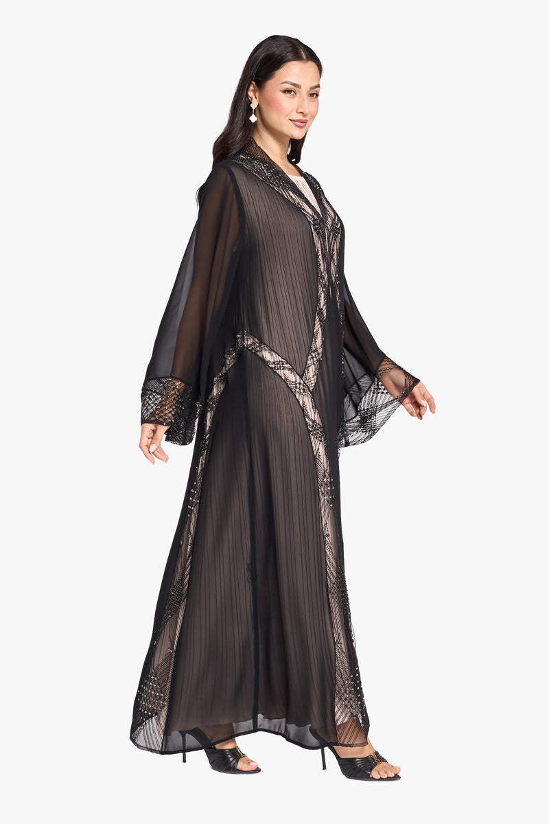 Louzan Abaya – Nida Fabric with Dantel Lace Inserts