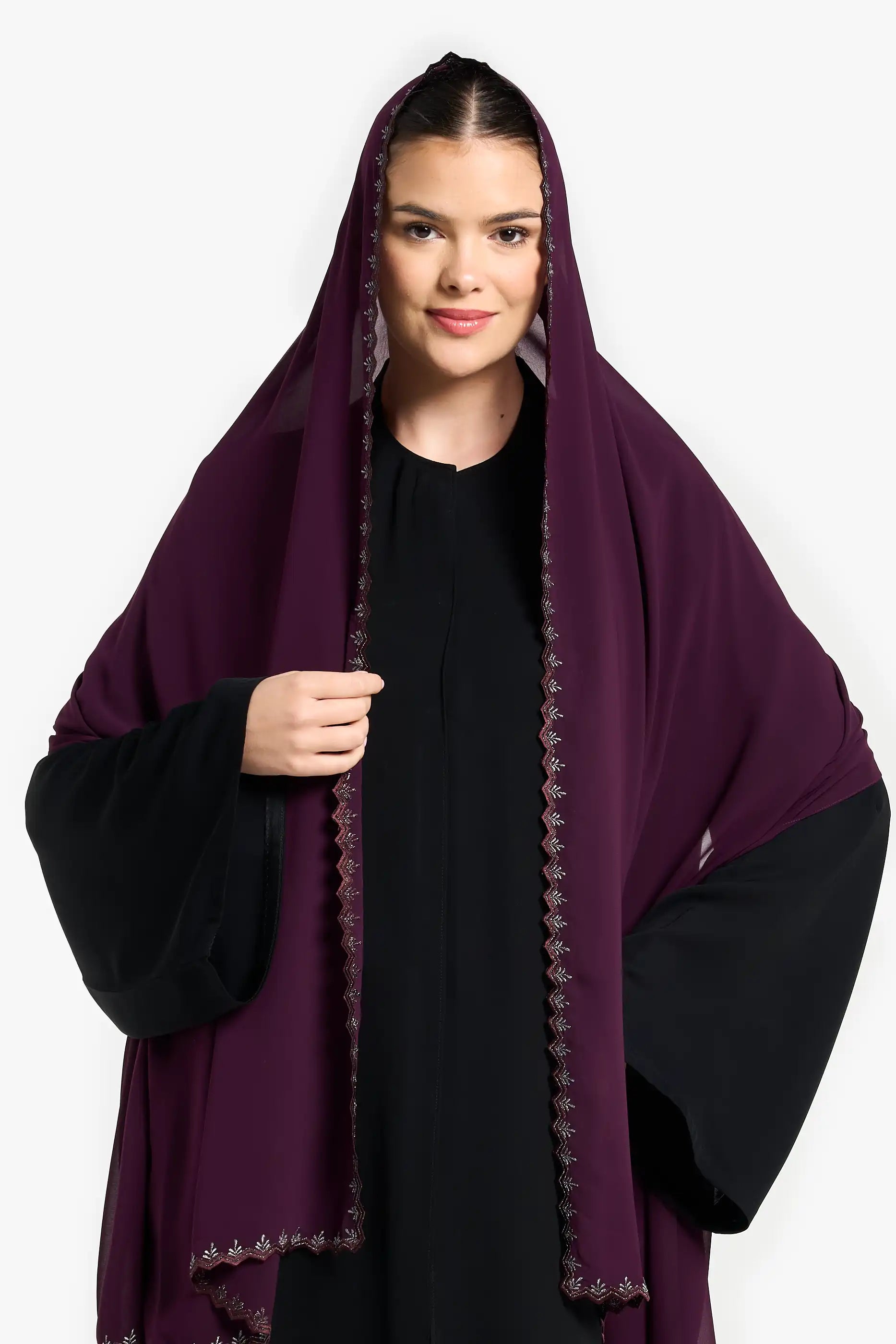 Elevate your look with the LOUZAN ABAYA. Featuring a unique DUJA LAIL hand-made design and a colorful SHEILA, this stunning abaya adds a personal touch to your outfit and creates a bold and elegant look. Hand-crafted for you, make a statement with this exclusive piece.