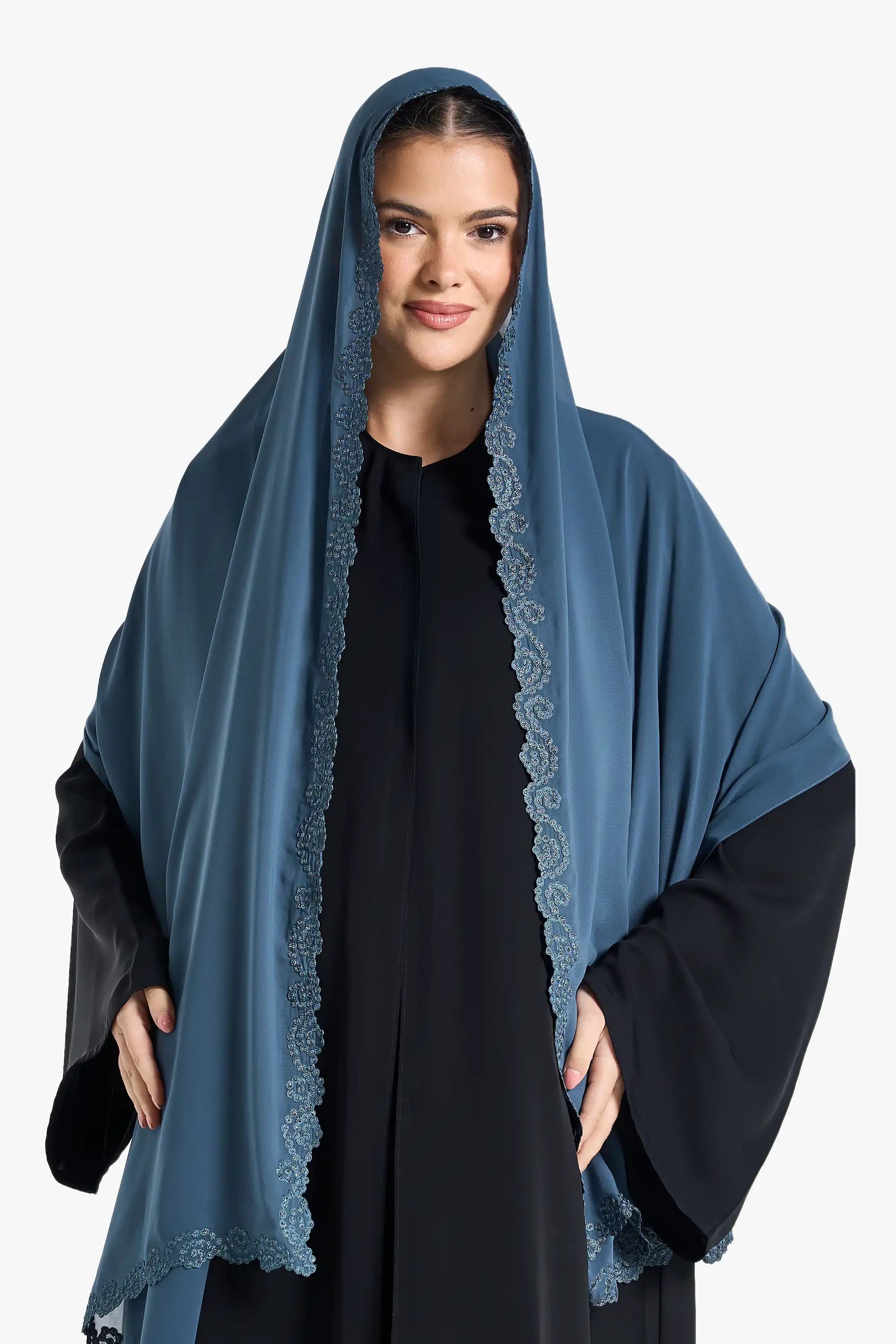 Elevate your look with the LOUZAN ABAYA. Featuring a unique DUJA LAIL hand-made design and a colorful SHEILA, this stunning abaya adds a personal touch to your outfit and creates a bold and elegant look. Hand-crafted for you, make a statement with this exclusive piece.
