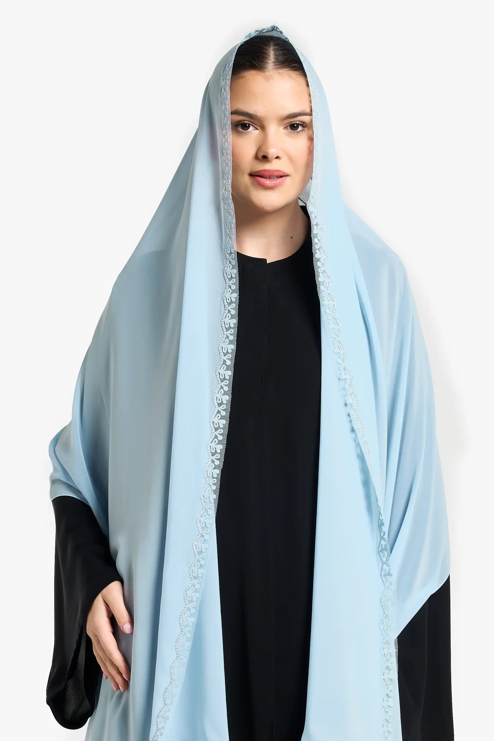 Elevate your look with the LOUZAN ABAYA. Featuring a unique DUJA LAIL hand-made design and a colorful SHEILA, this stunning abaya adds a personal touch to your outfit and creates a bold and elegant look. Hand-crafted for you, make a statement with this exclusive piece.