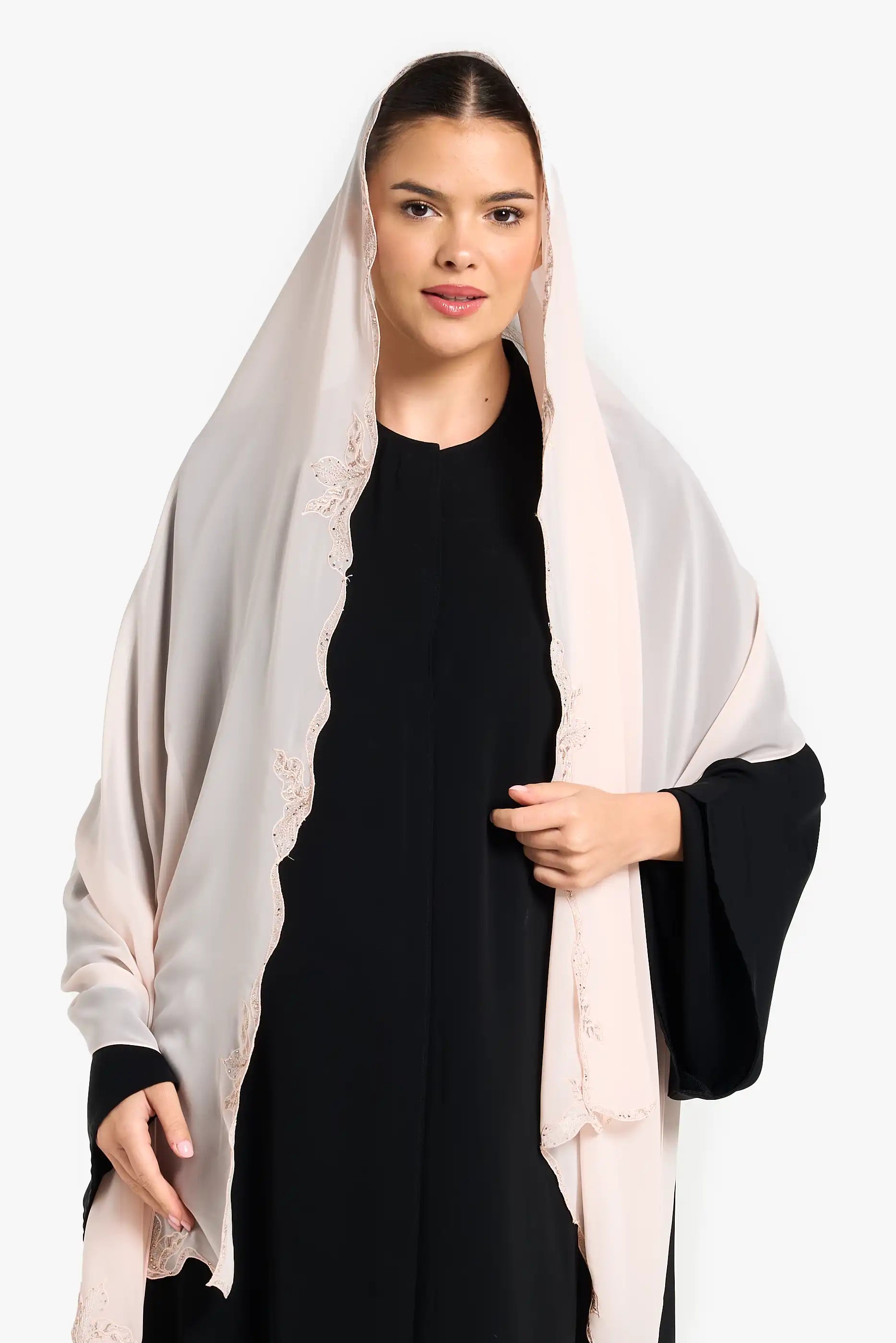 Elevate your look with the LOUZAN ABAYA. Featuring a unique DUJA LAIL hand-made design , this stunning abaya adds a personal touch to your outfit and creates a bold and elegant look. Hand-crafted for you, make a statement with this exclusive piece.