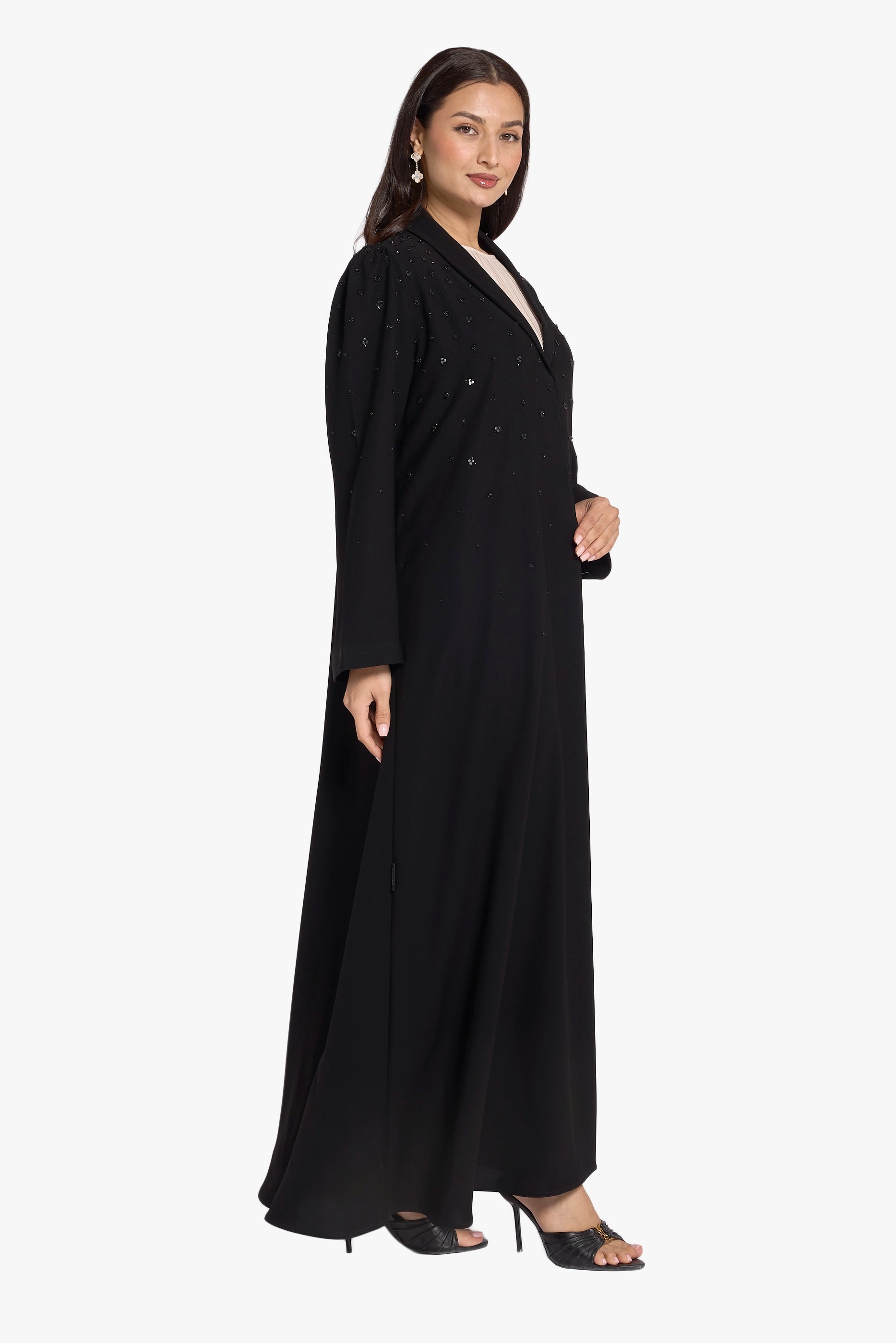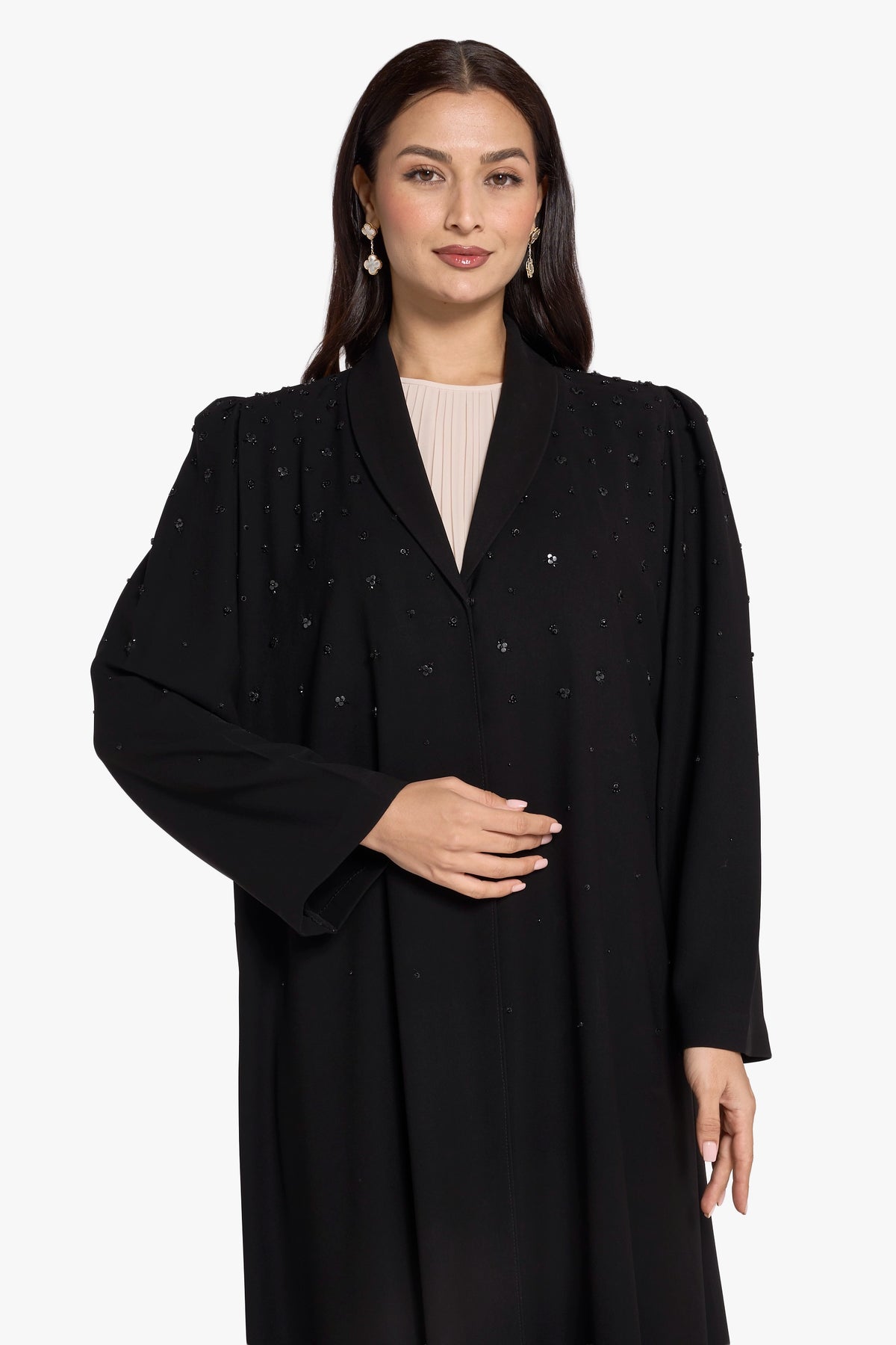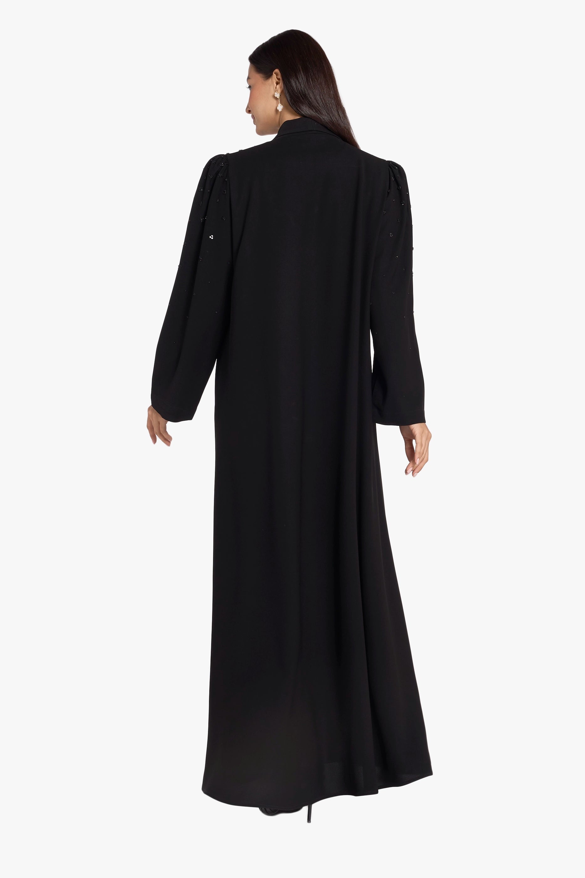 The Ousha Abaya is designed for daily wear, featuring elegant handwork on the front that adds a refined and tasteful detail. Combining comfort with subtle sophistication, this abaya is ideal for those seeking modesty with a stylish touch in everyday attire.