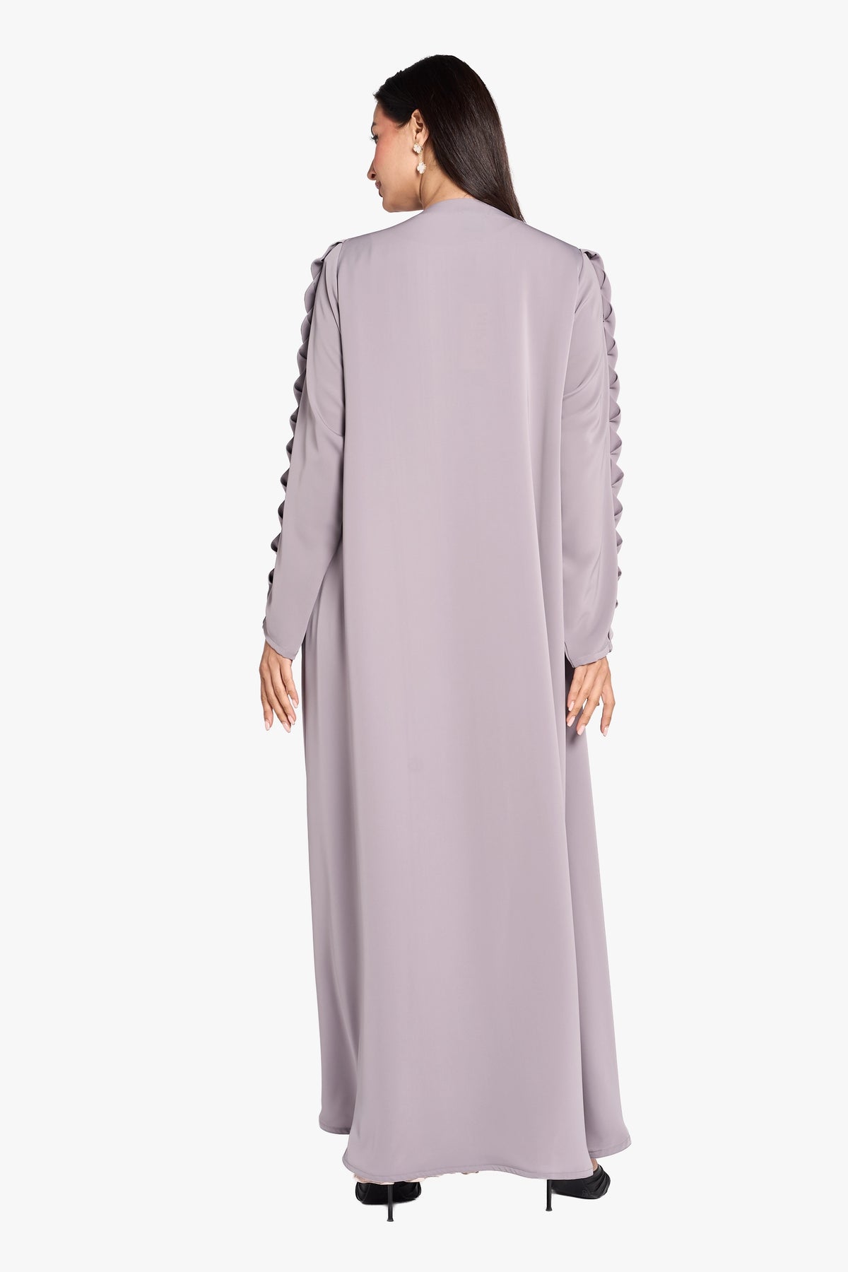 The OUSHA ABAYA features a refined design with a symmetrical cut that enhances its graceful silhouette. Crafted with attention to detail, this elegant abaya provides a balanced and harmonious look, making it perfect for those seeking both comfort and sophistication in their traditional wear. Its clean lines and structured shape emphasize poise and style.