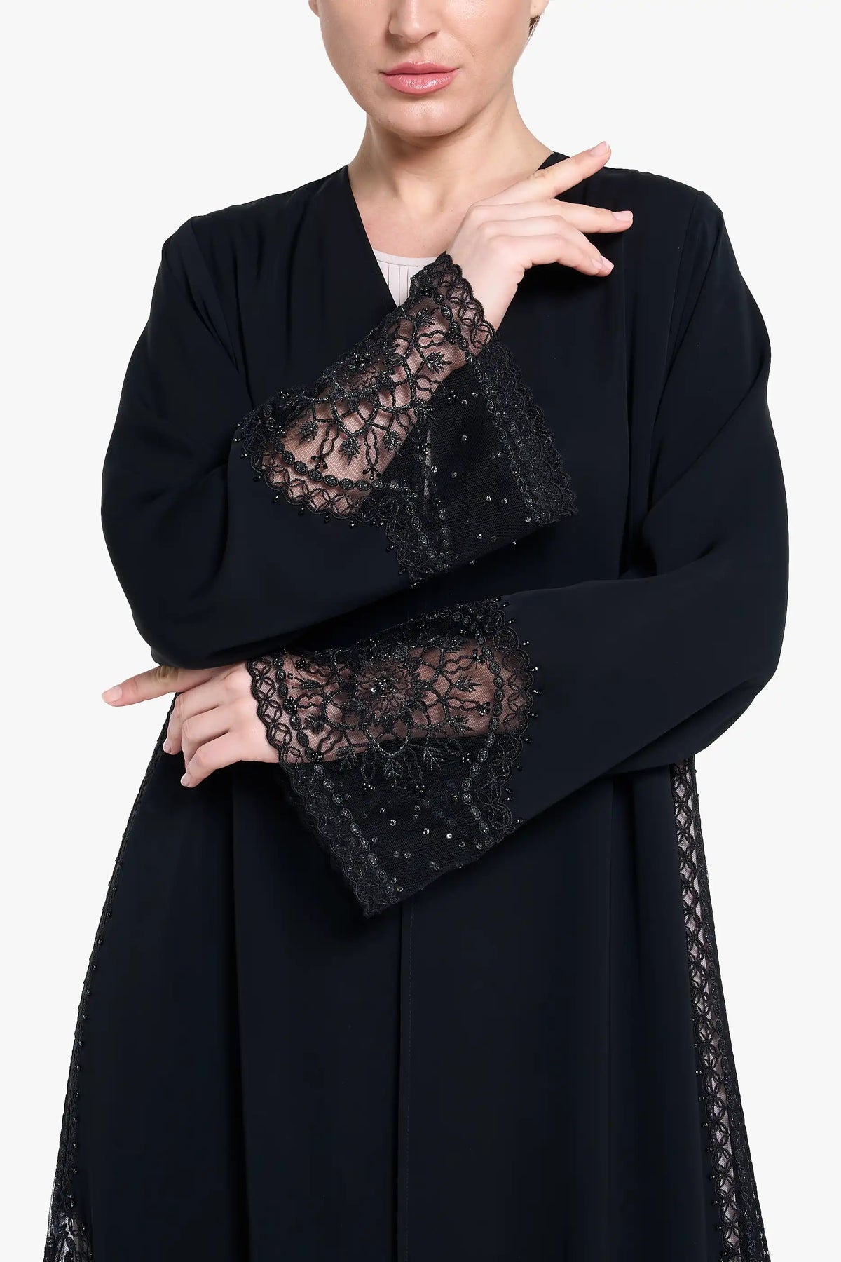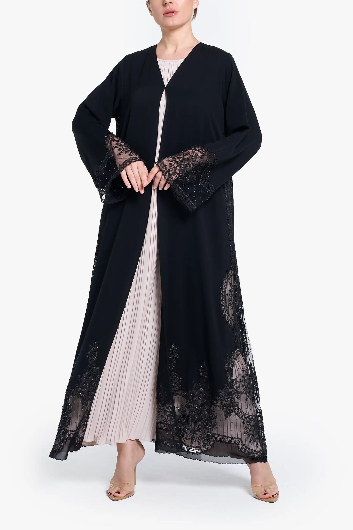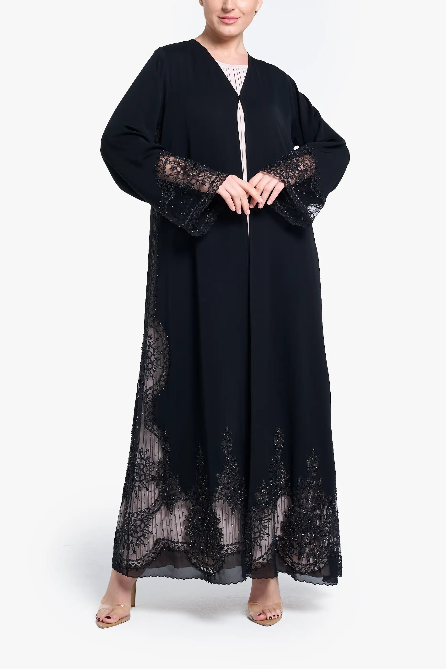 Embrace refined elegance with our LOUZAN ABAYA LN2193, a stunning black abaya featuring sophisticated computer embroidery work. The modern design is beautifully enhanced with sparkling sequins and crystal embellishments that catch the light with every movement. Meticulously crafted for the fashion-forward woman, this abaya combines traditional modesty with contemporary style, perfect for both special occasions and elevated everyday wear.