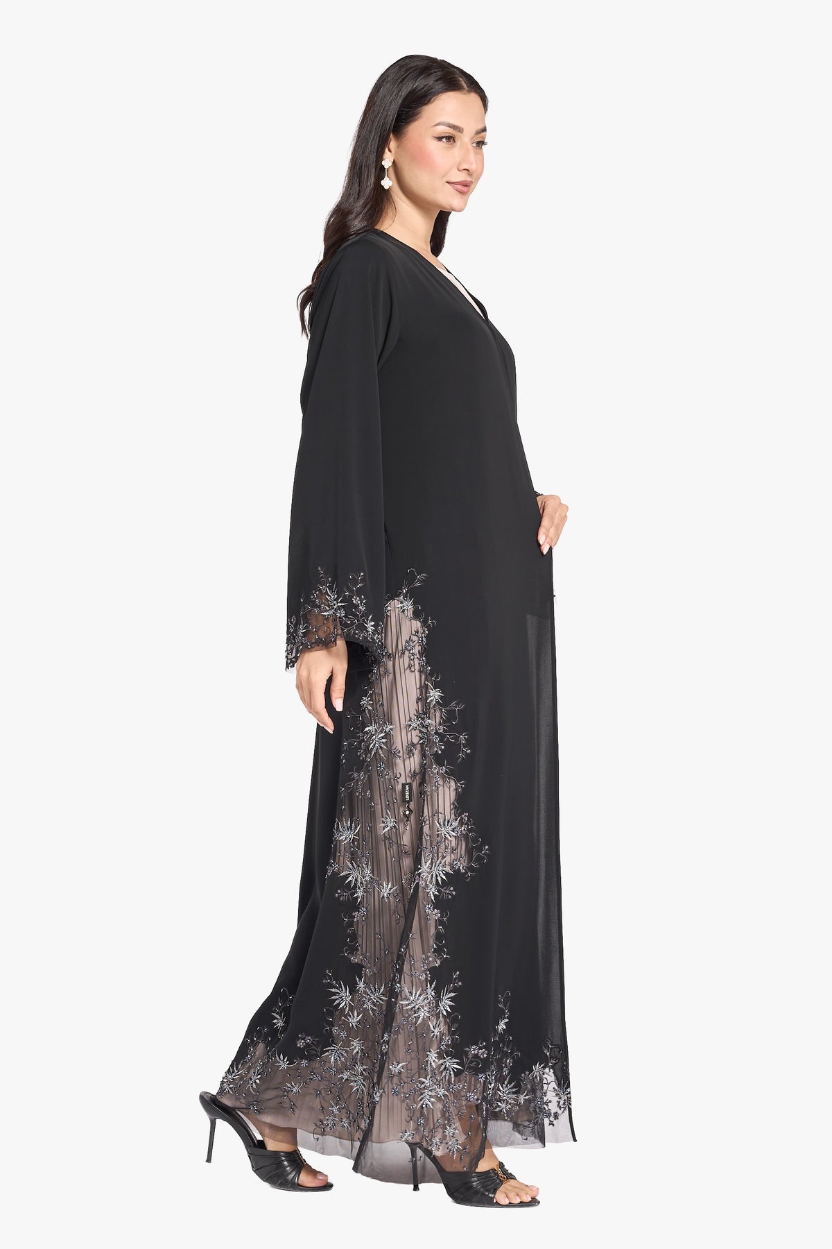 Louzan VIP Abaya – Embroidered Floral Motif with Handcrafted Details