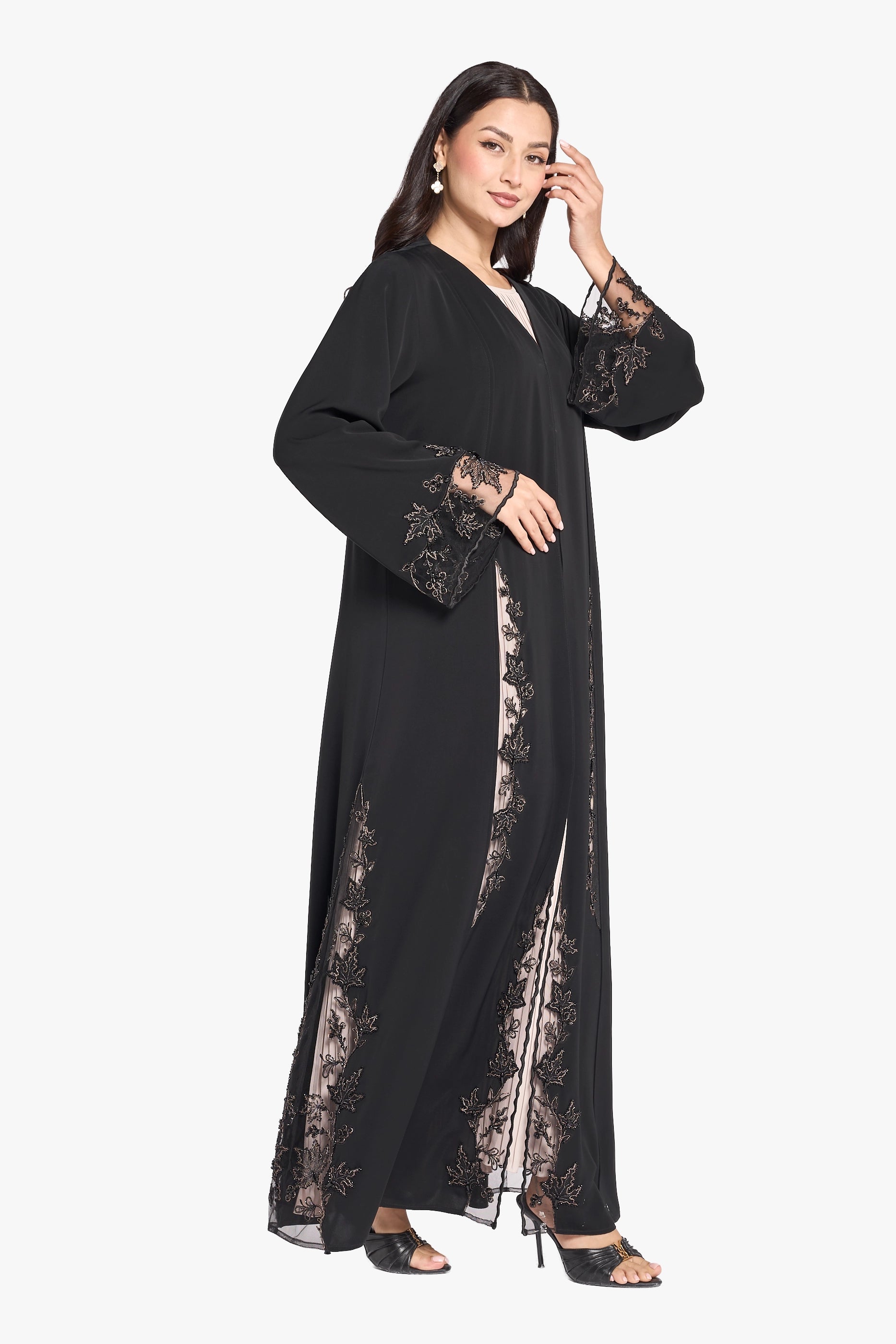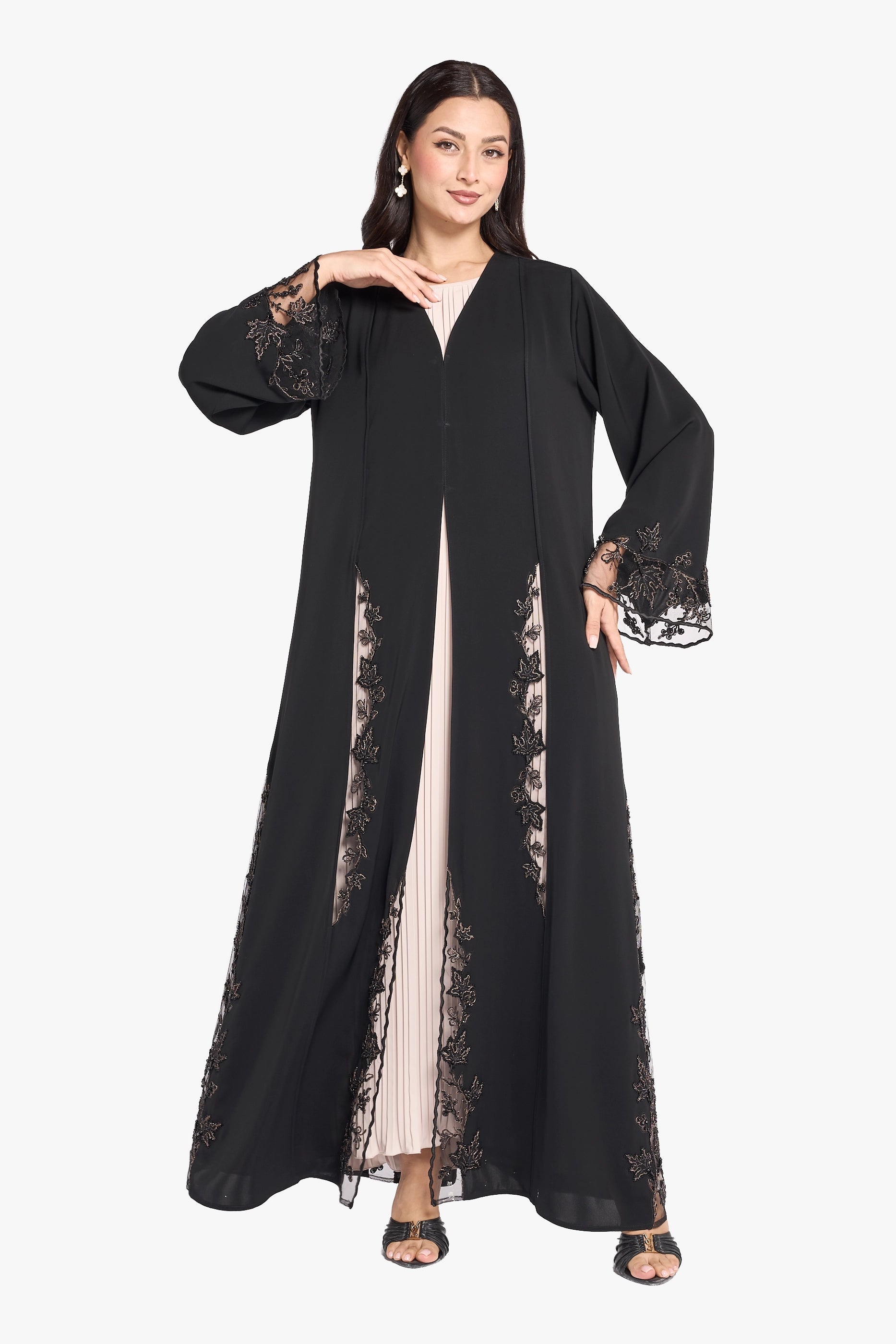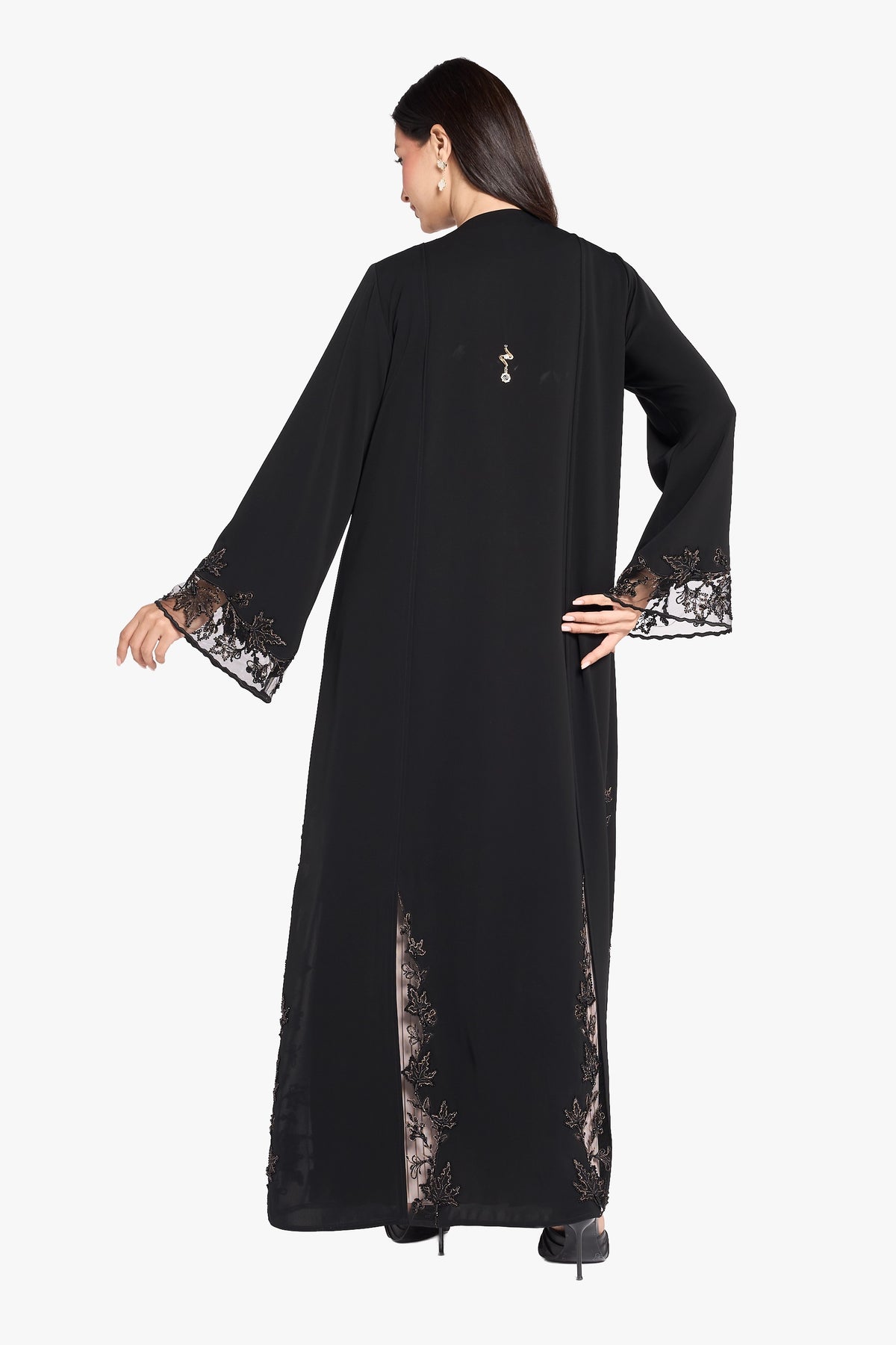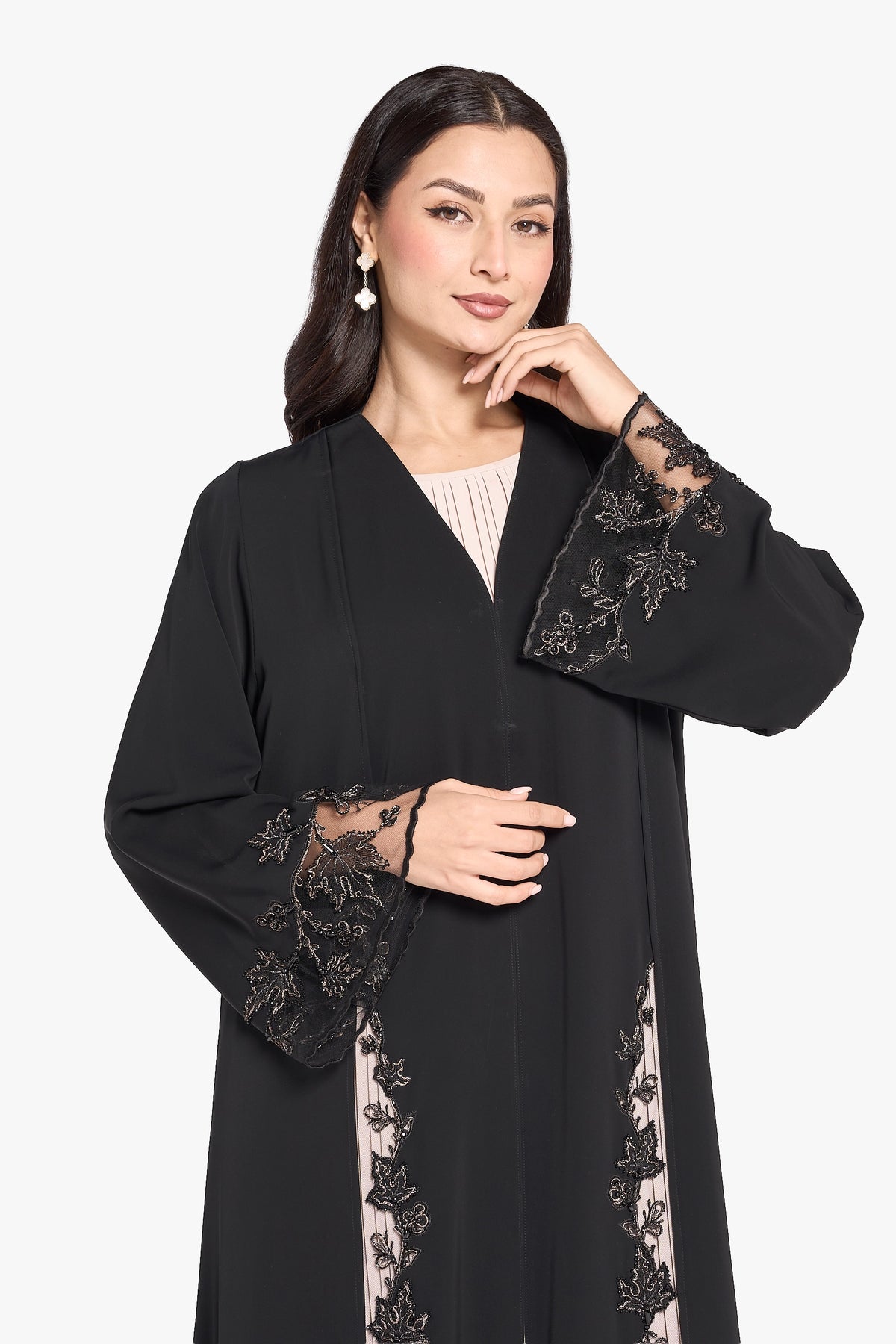 Louzan VIP Abaya – Nida Fabric with Floral Dori Embroidery LN2363