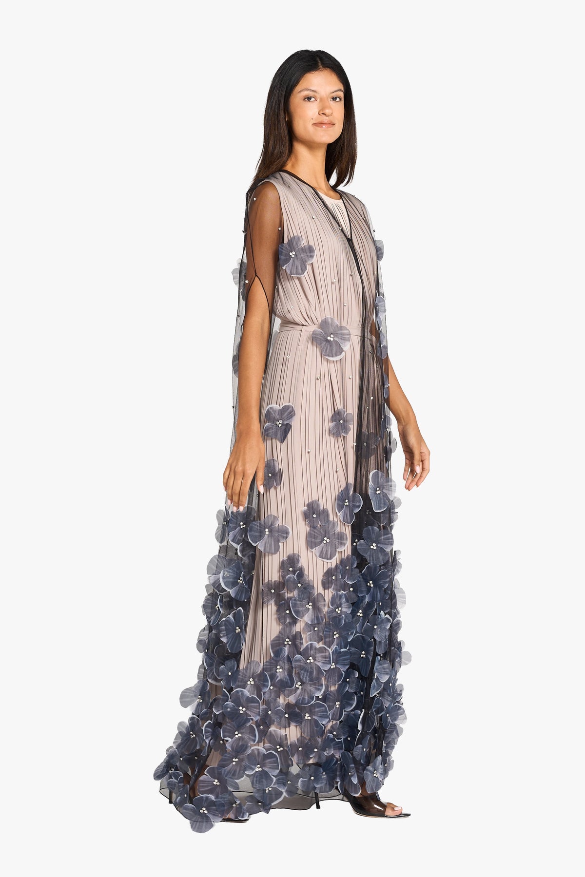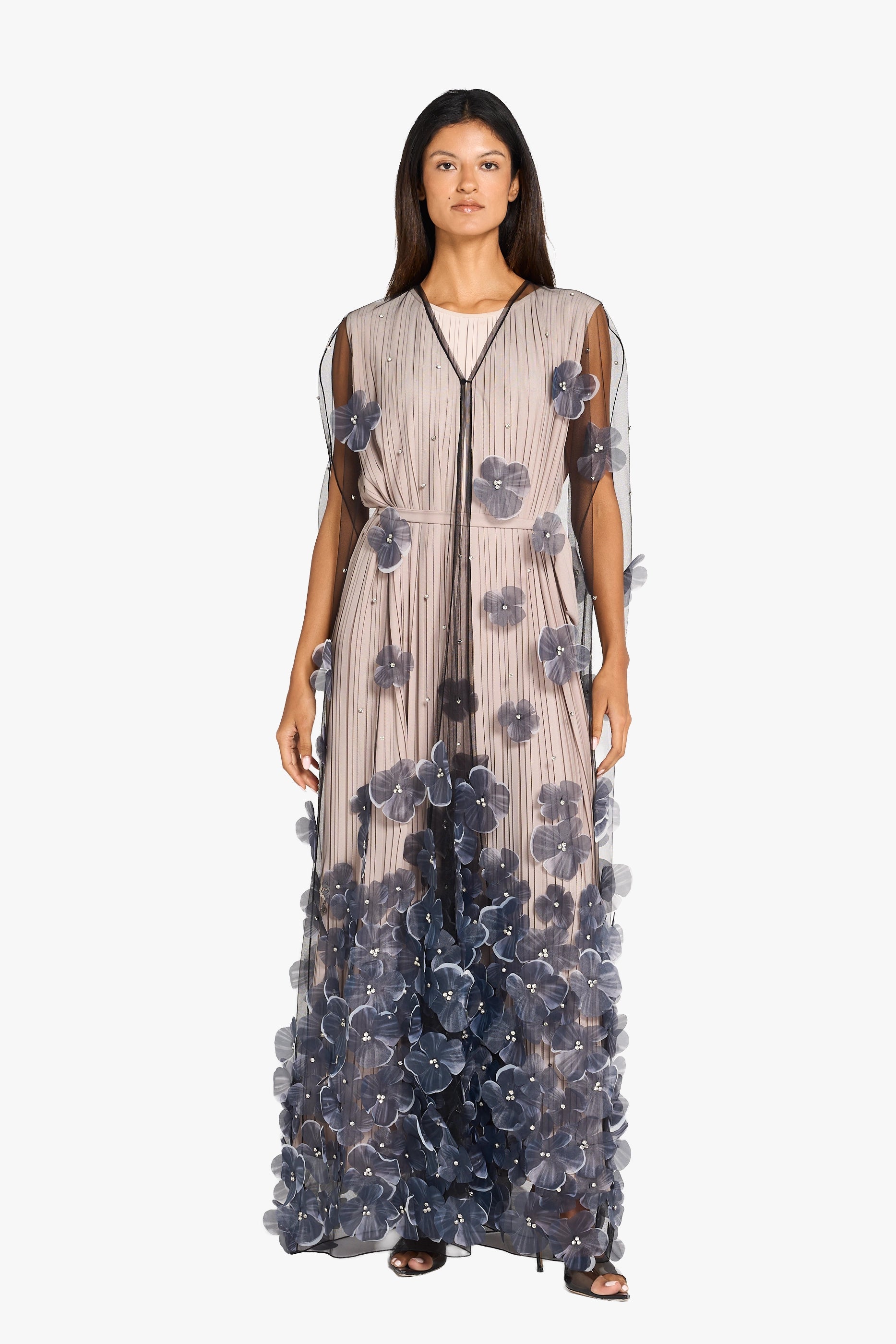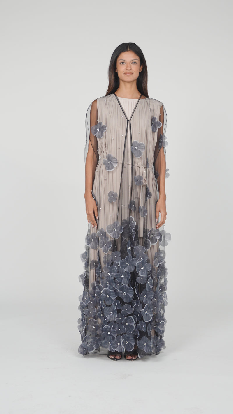 Elevate your wedding day with this stunning Louzan abaya, where contemporary design meets traditional refinement. Crafted from luxurious tulle adorned with intricate 3D floral embellishments, this piece captures attention through its sophisticated layering and dimensional detailing. The expertly constructed silhouette drapes with graceful movement, creating an ethereal yet commanding presence. Perfect for brides seeking a modern interpretation of classic elegance, this abaya combines meticulous craftsmanship with timeless appeal. Each floral element is thoughtfully positioned to enhance your natural beauty while maintaining the modest sophistication that defines Louzan's signature aesthetic. An investment in a garment that transcends trends and celebrates your most cherished moments.