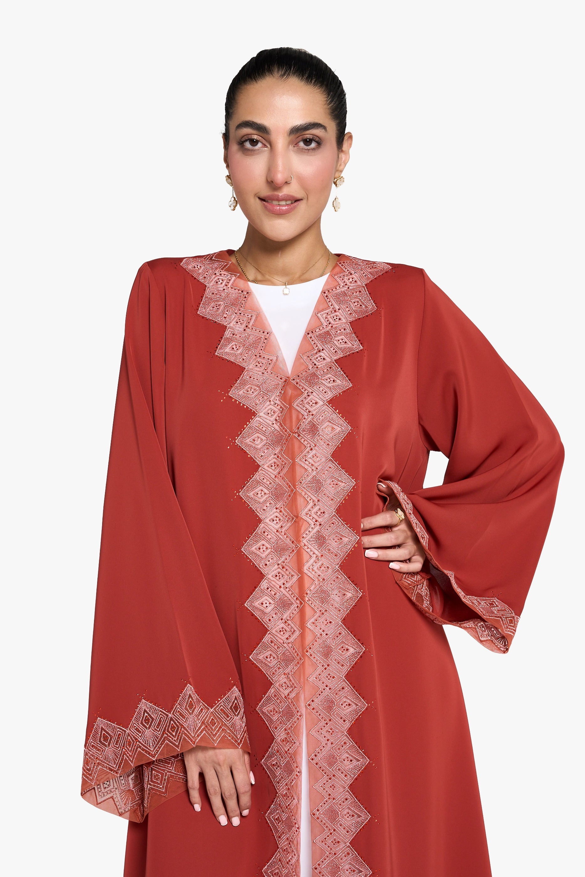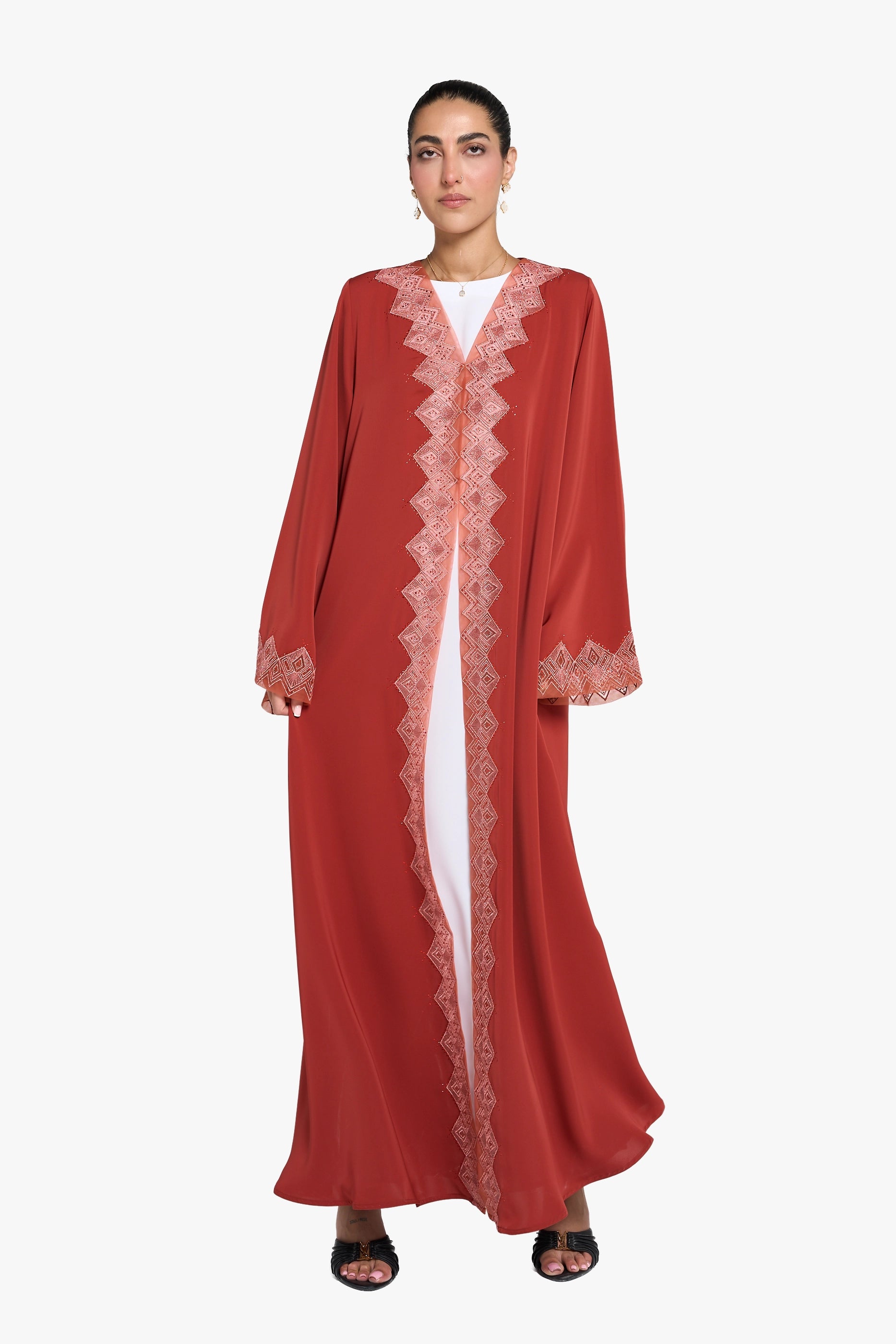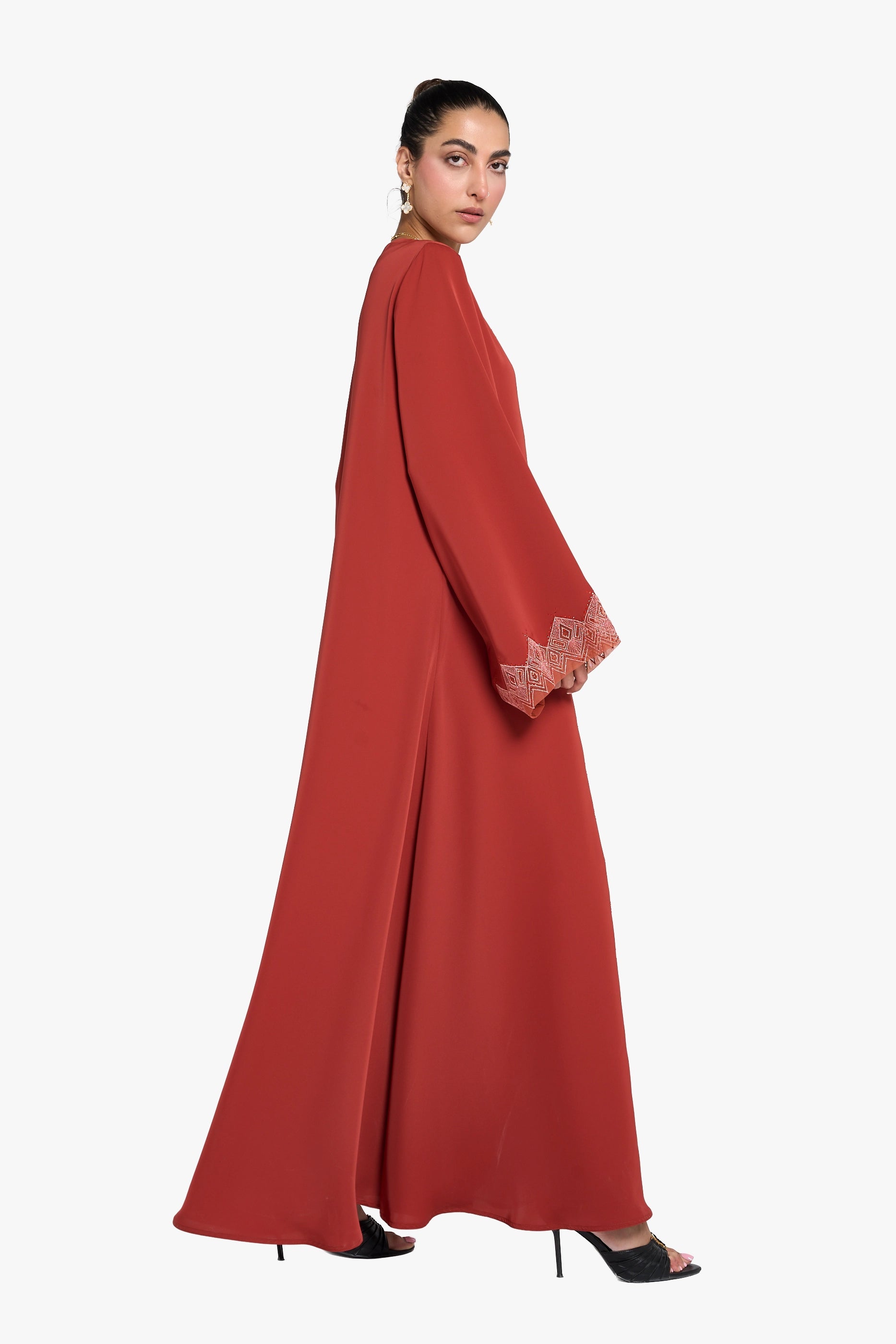 The Louzan Abaya is expertly crafted from premium nida color fabric, featuring a graceful flowing silhouette that provides both elegance and comfort. Its subtle crystal embellishments add a refined touch of sophistication, making it suitable for special occasions or everyday wear with a distinctive style. Designed for those who appreciate quality and timeless fashion.